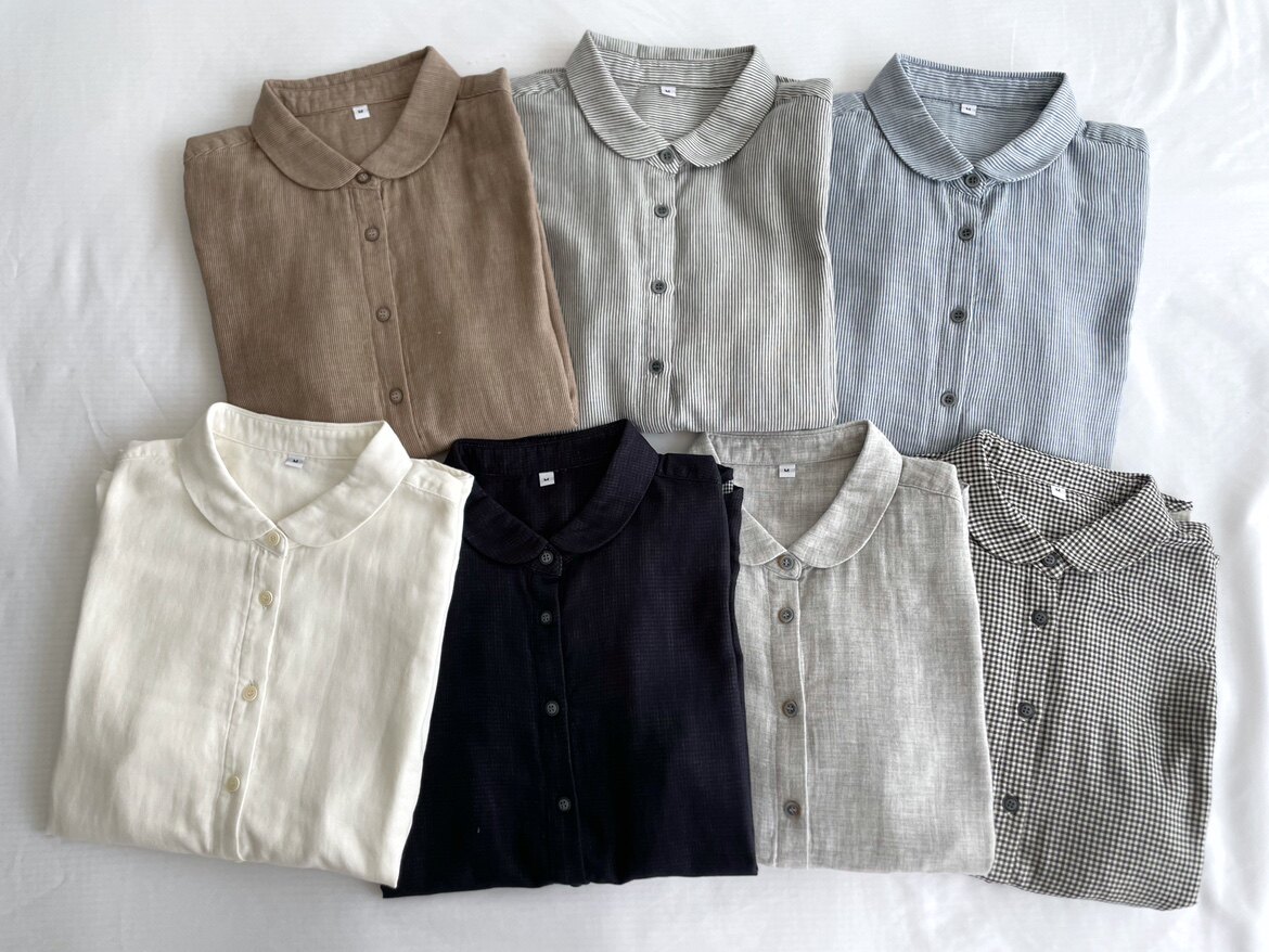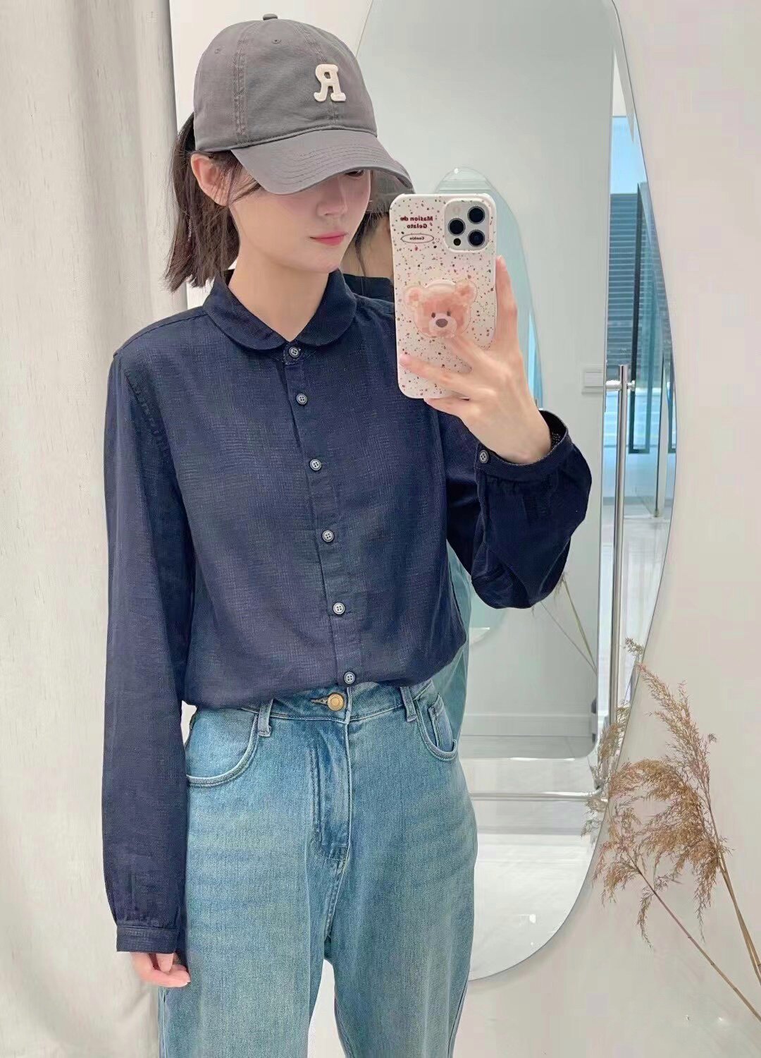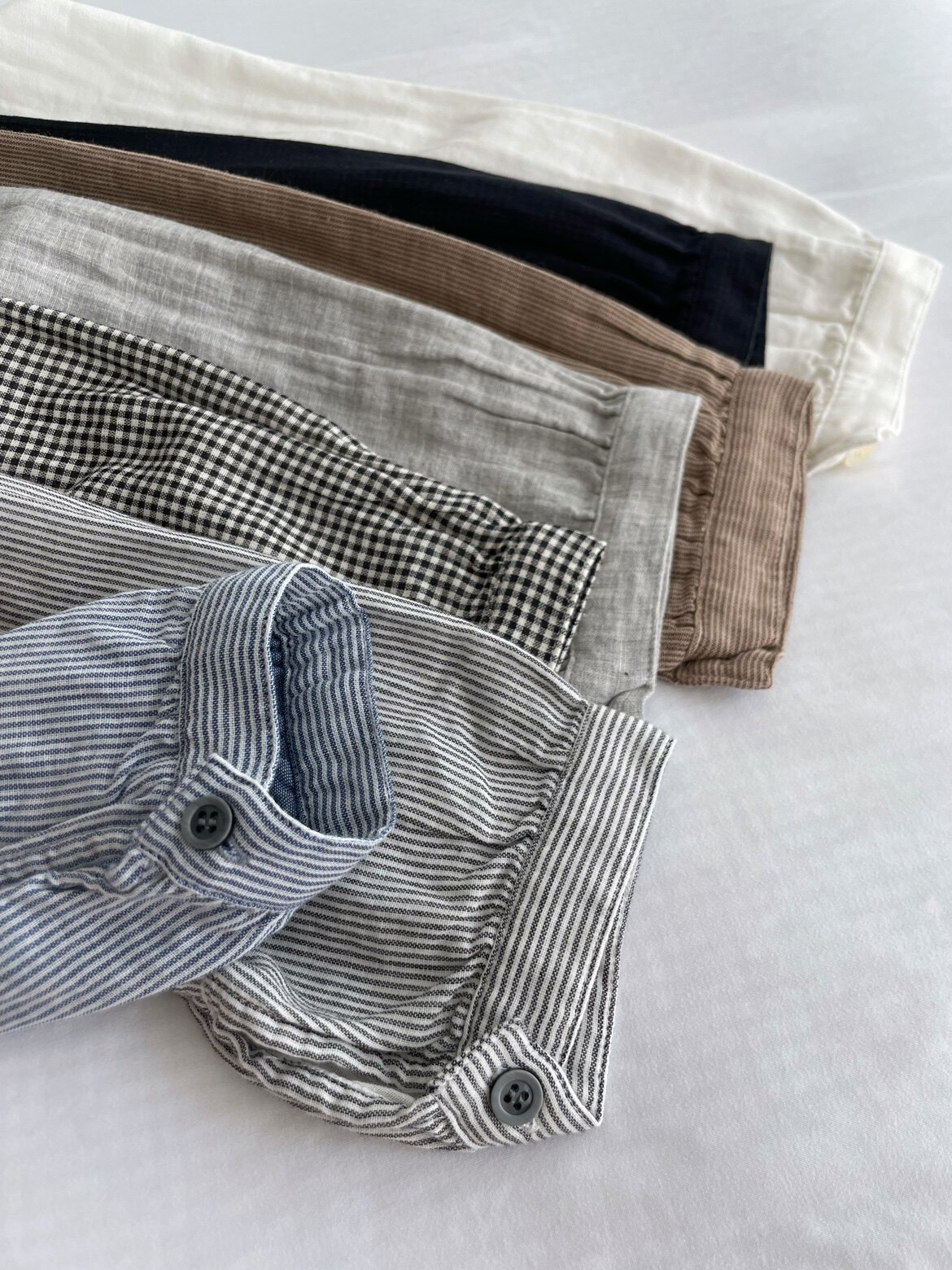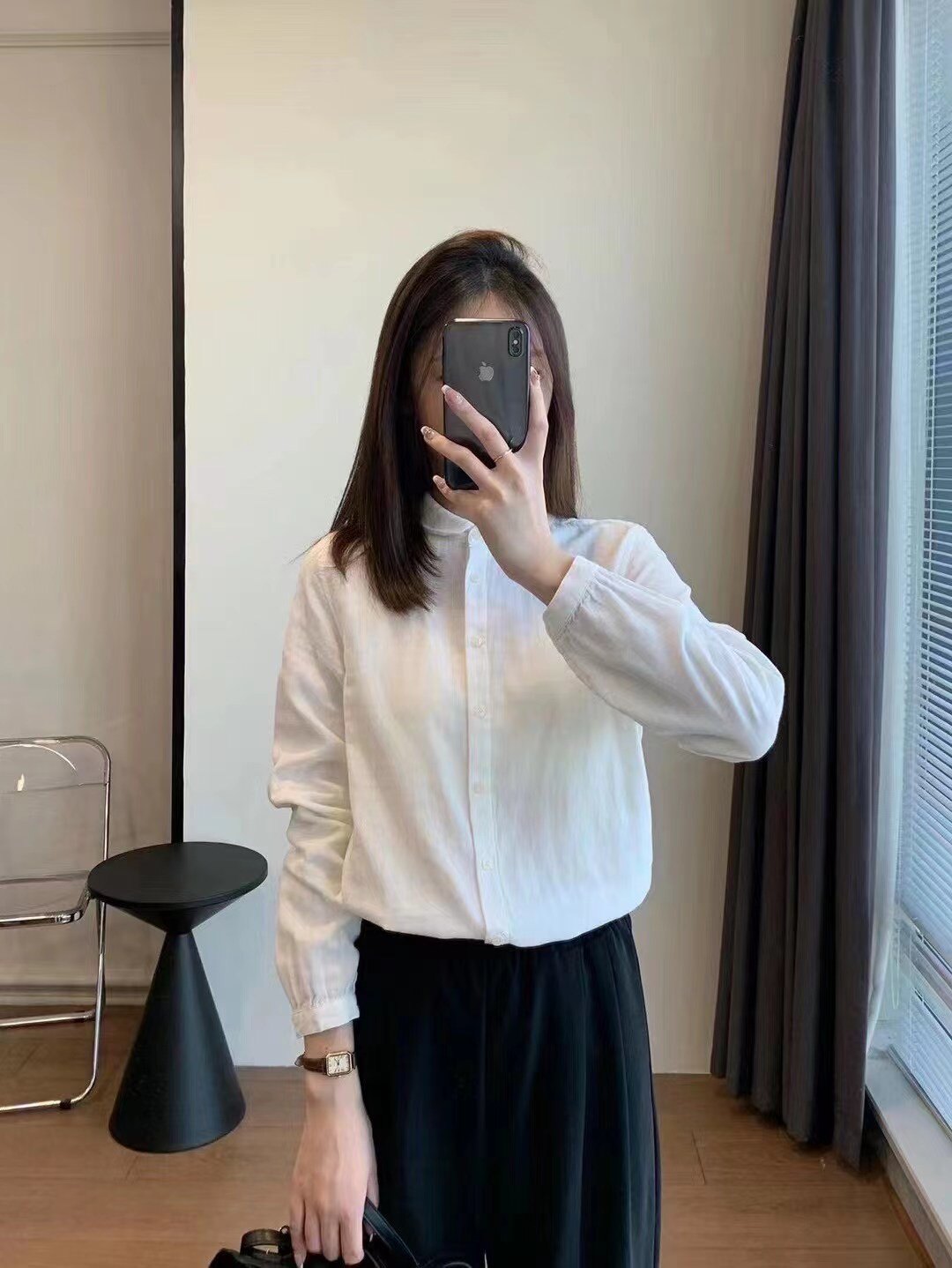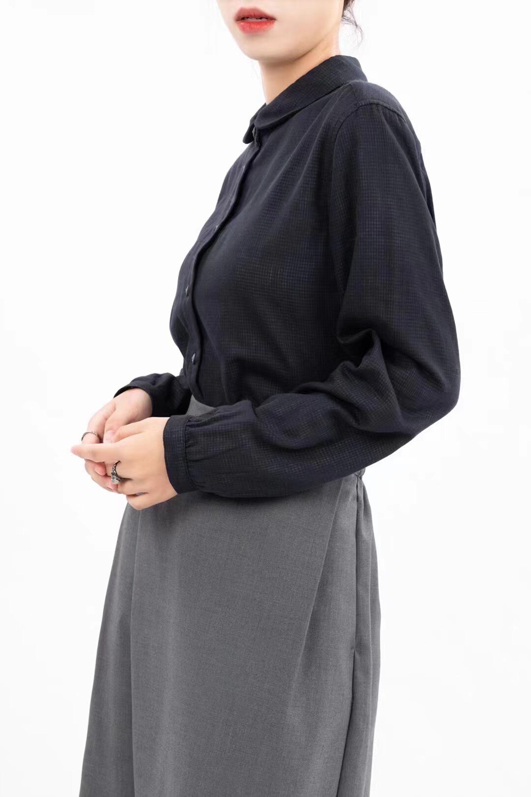 Japanese Order Autumn and Winter Simple Retro Mandarin Collar Doll Stripe Double-Layer Gauze Solid Color Women's Shirt Long-Sleeved Blouse