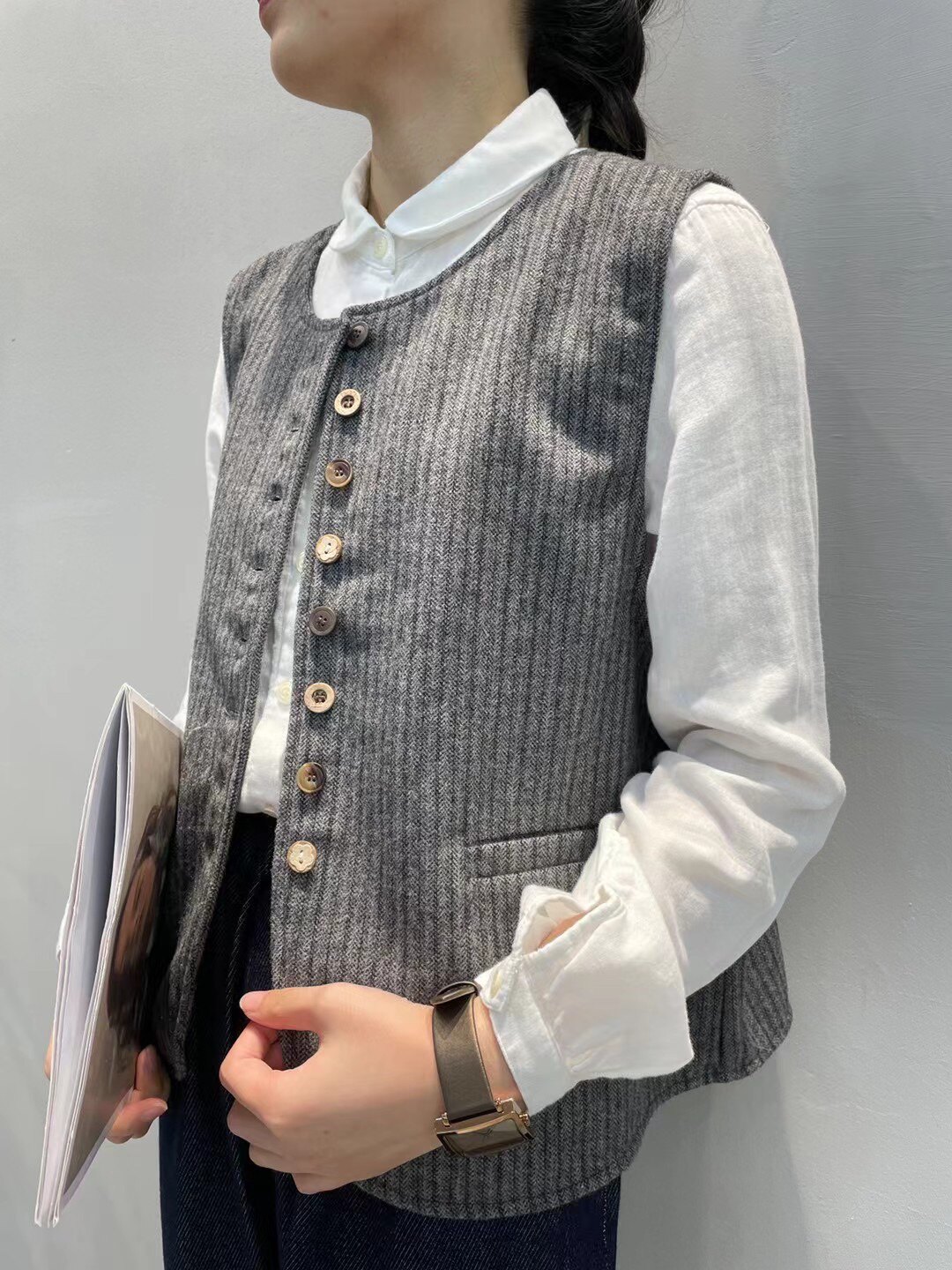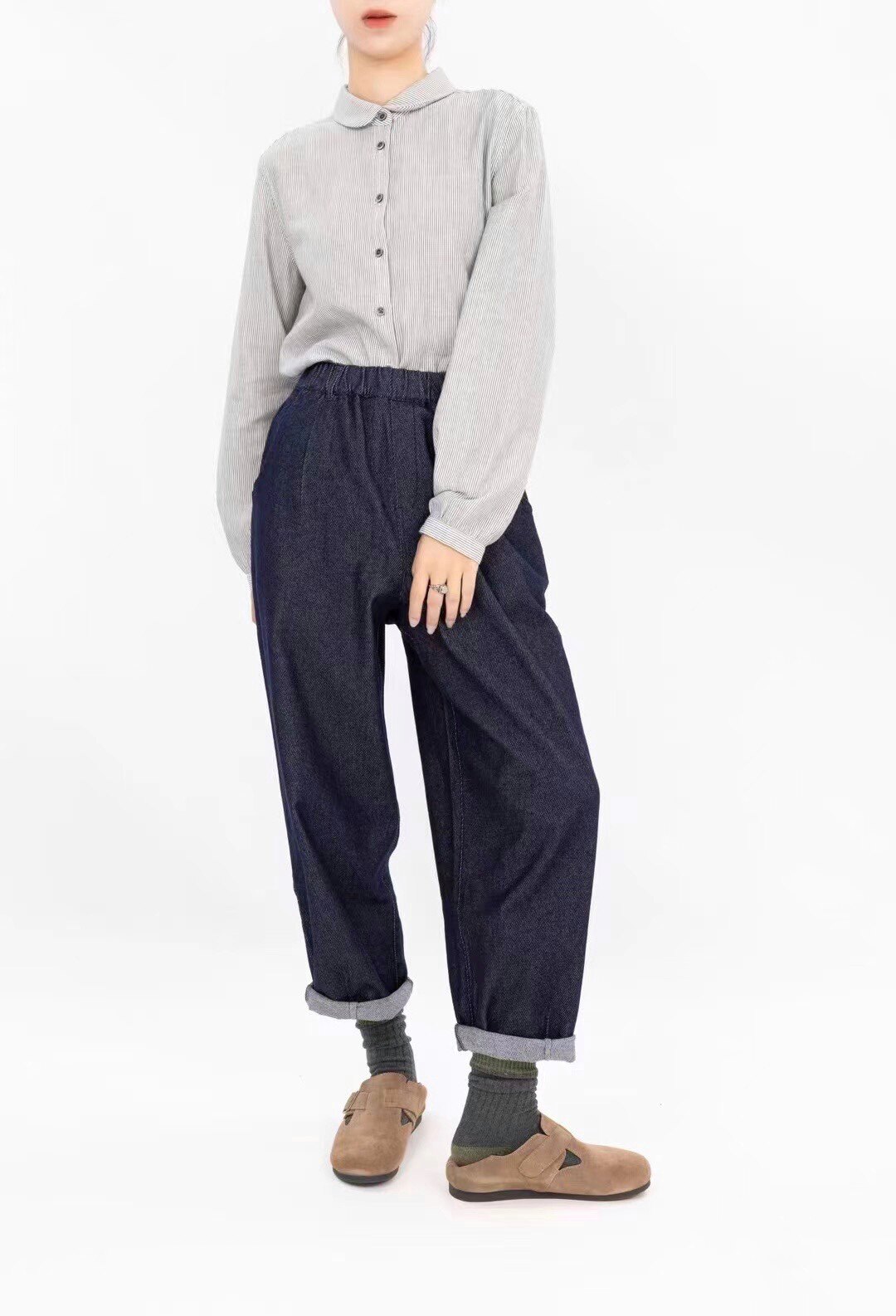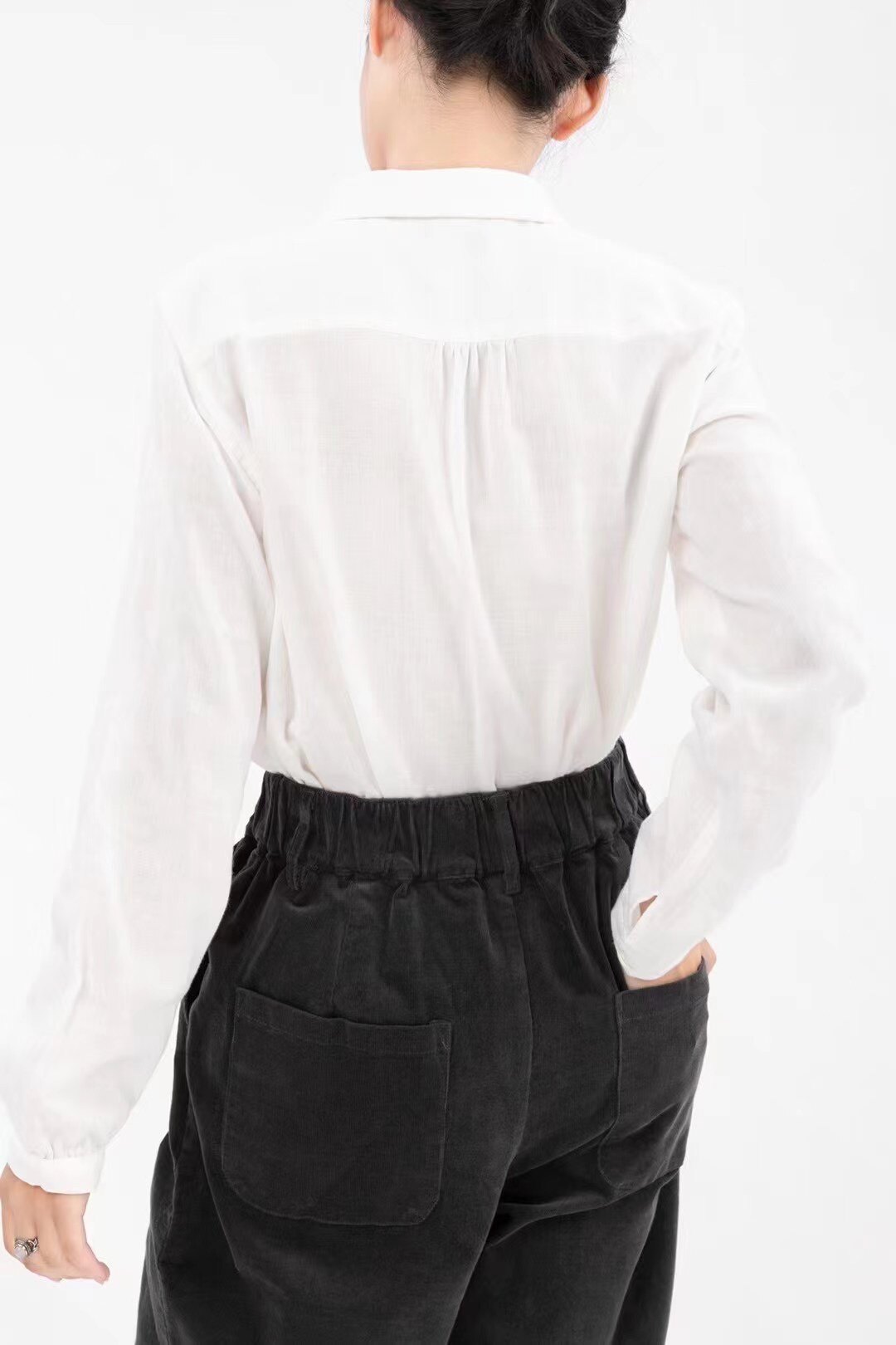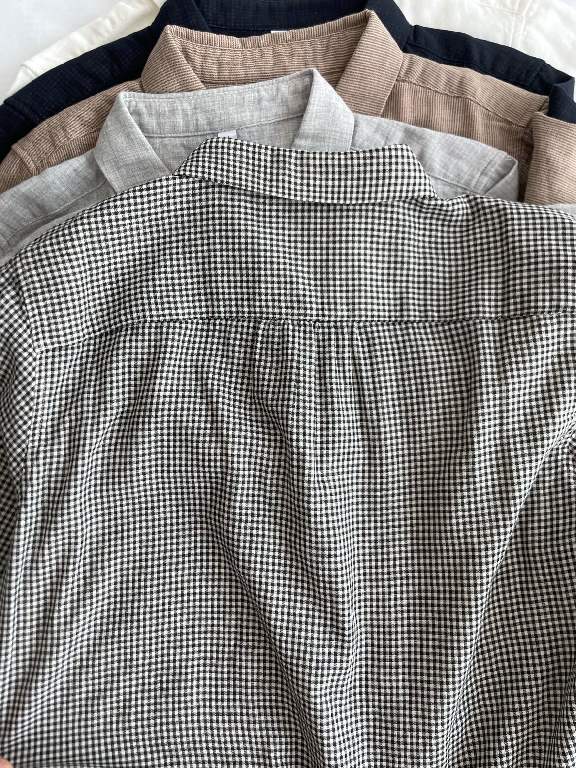 Japanese Order Autumn and Winter Simple Retro Mandarin Collar Doll Stripe Double-Layer Gauze Solid Color Women's Shirt Long-Sleeved Blouse