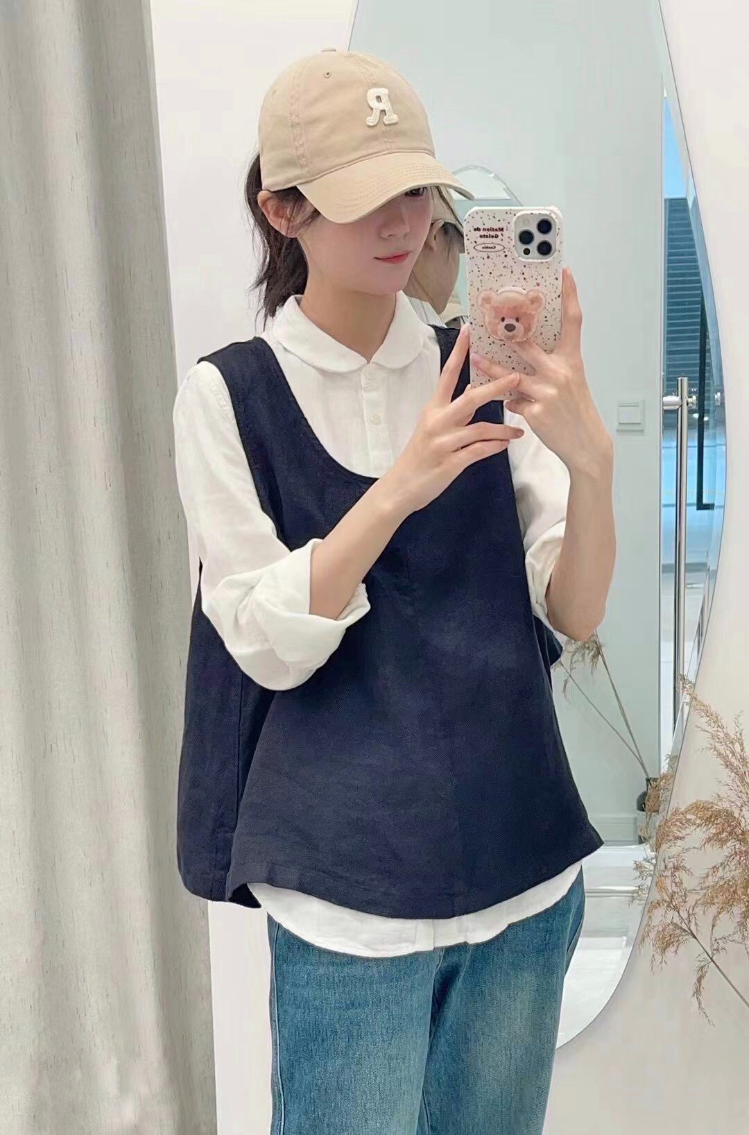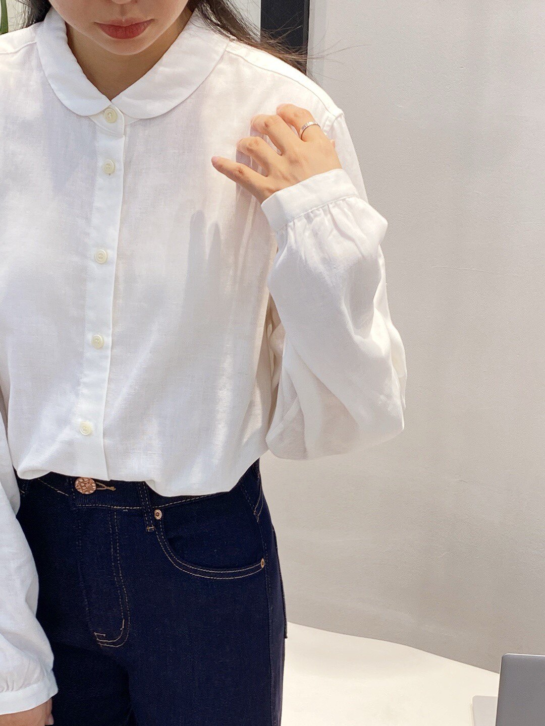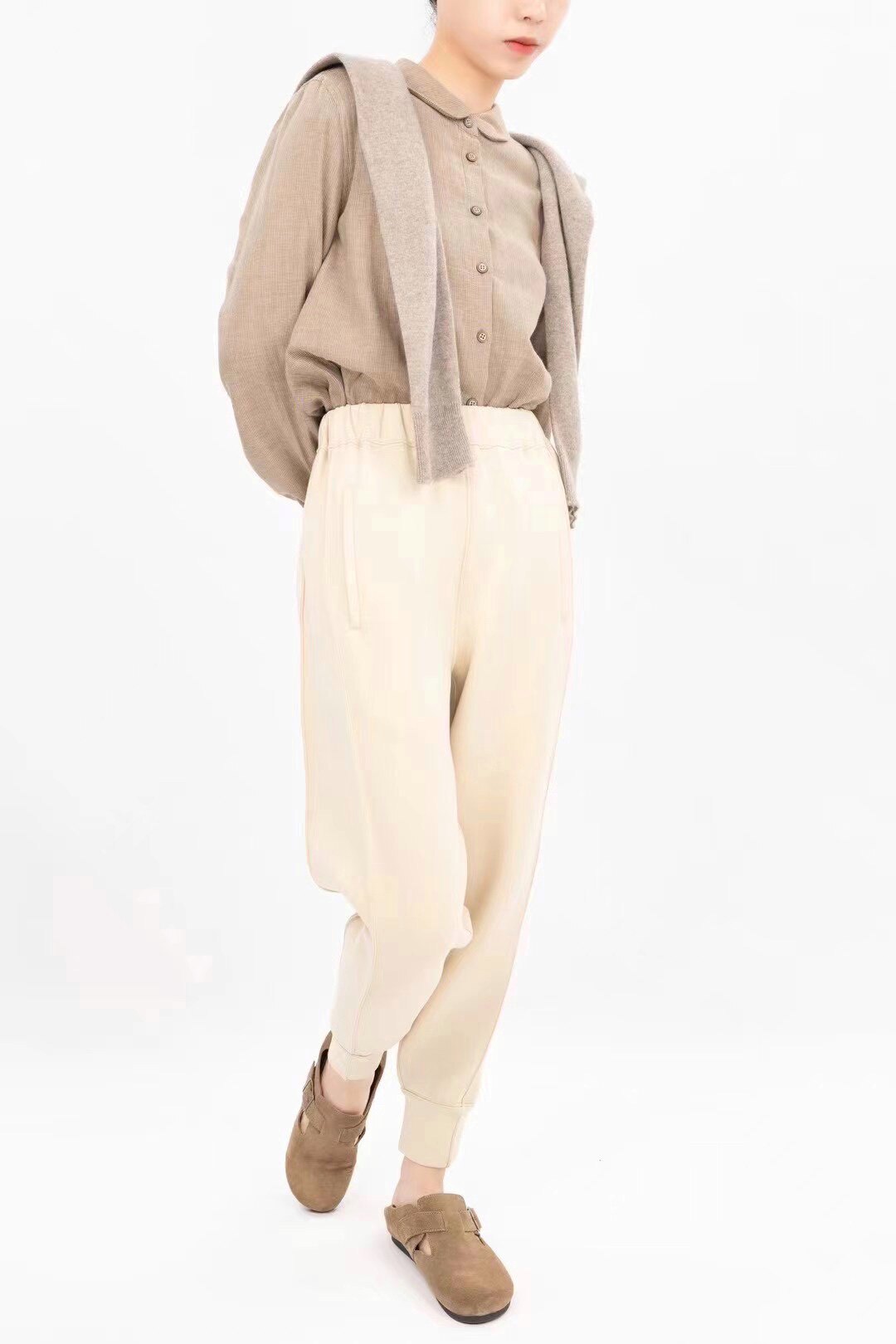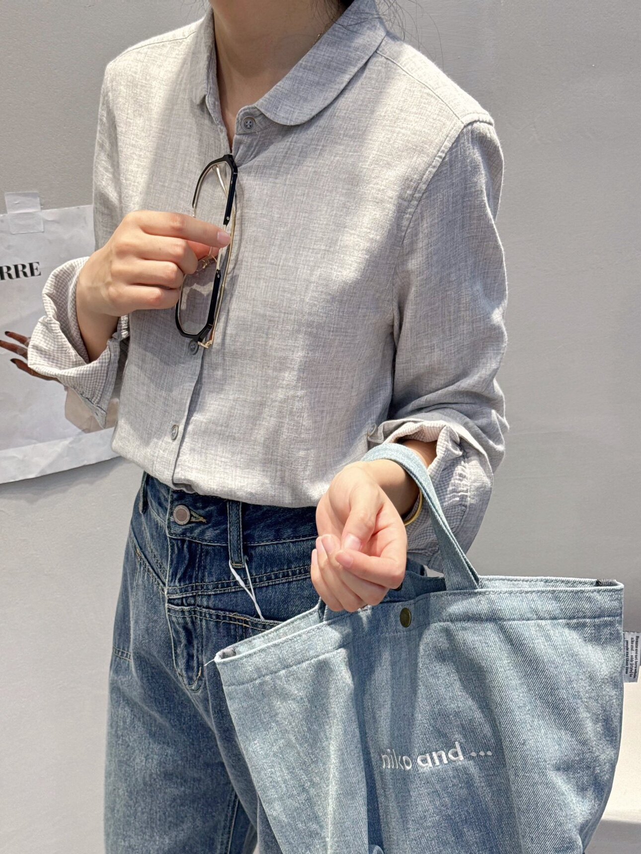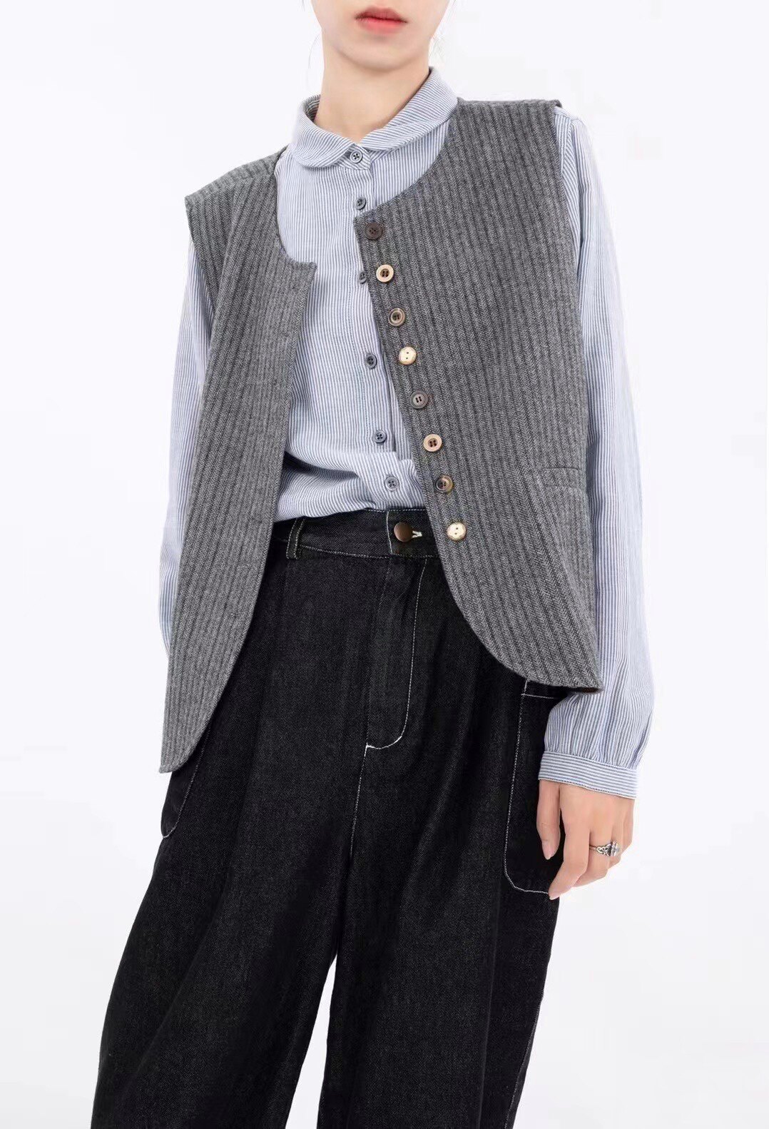 Japanese Order Autumn and Winter Simple Retro Mandarin Collar Doll Stripe Double-Layer Gauze Solid Color Women's Shirt Long-Sleeved Blouse