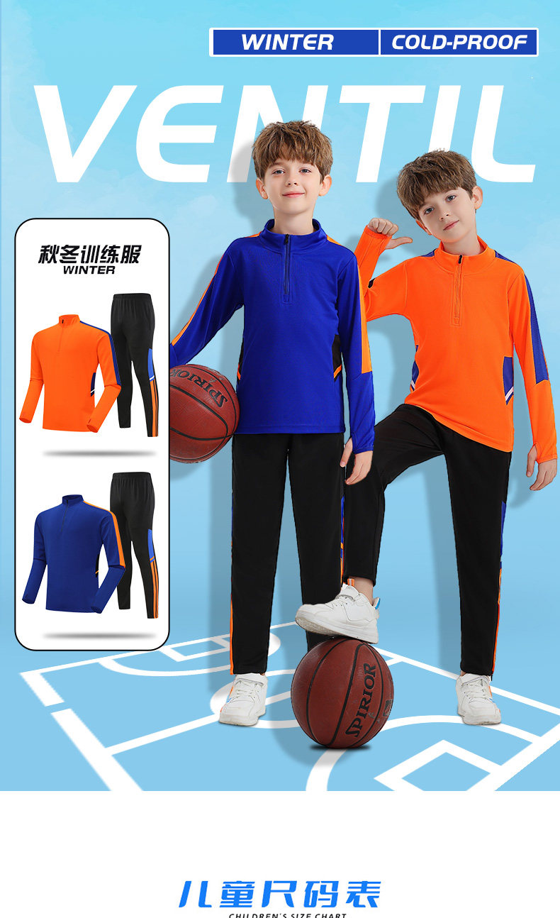 Children's long-sleeved basketball uniforms sports suits boys and girls warm running football training uniforms long pants sweatshirts autumn and winter