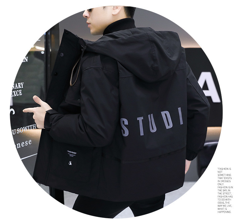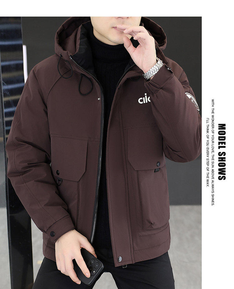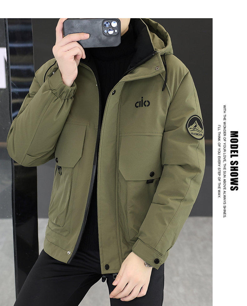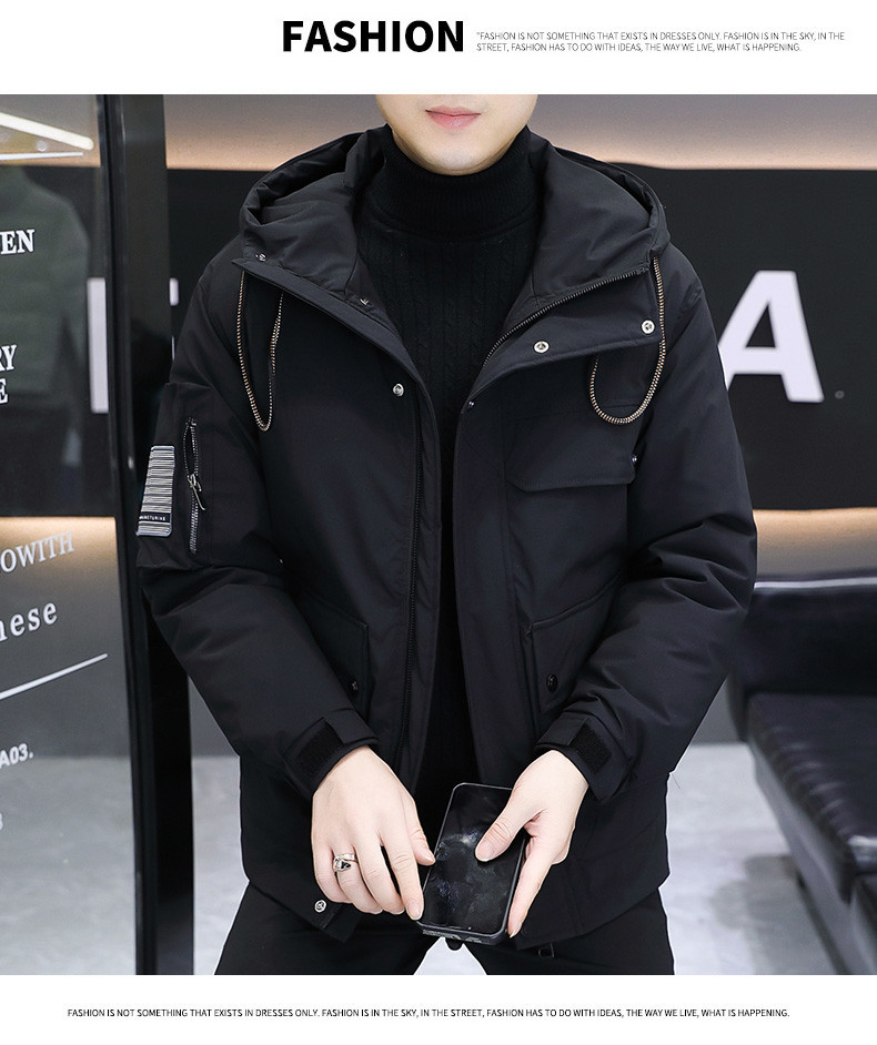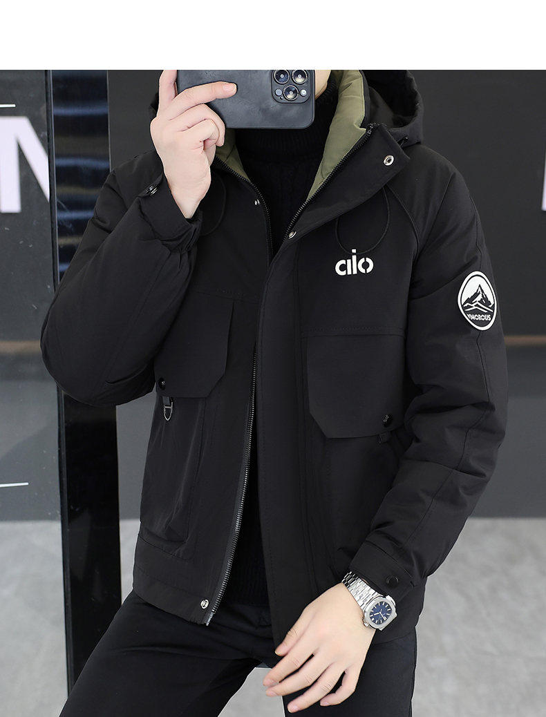 2025 Winter Hooded Personalized Workwear Cotton Jacket for Men, Short Style, Youth Loose Fit, Korean Version, Thickened and Warm Cotton Coat