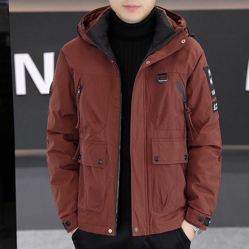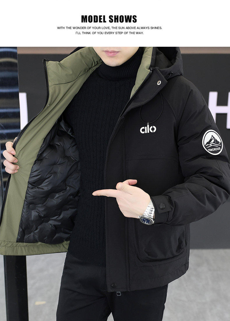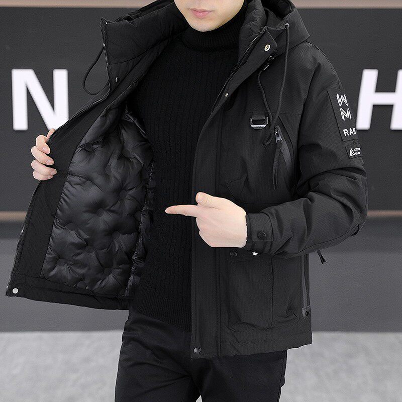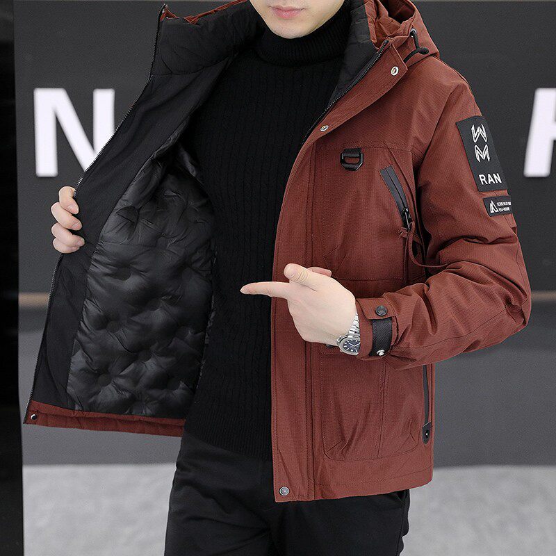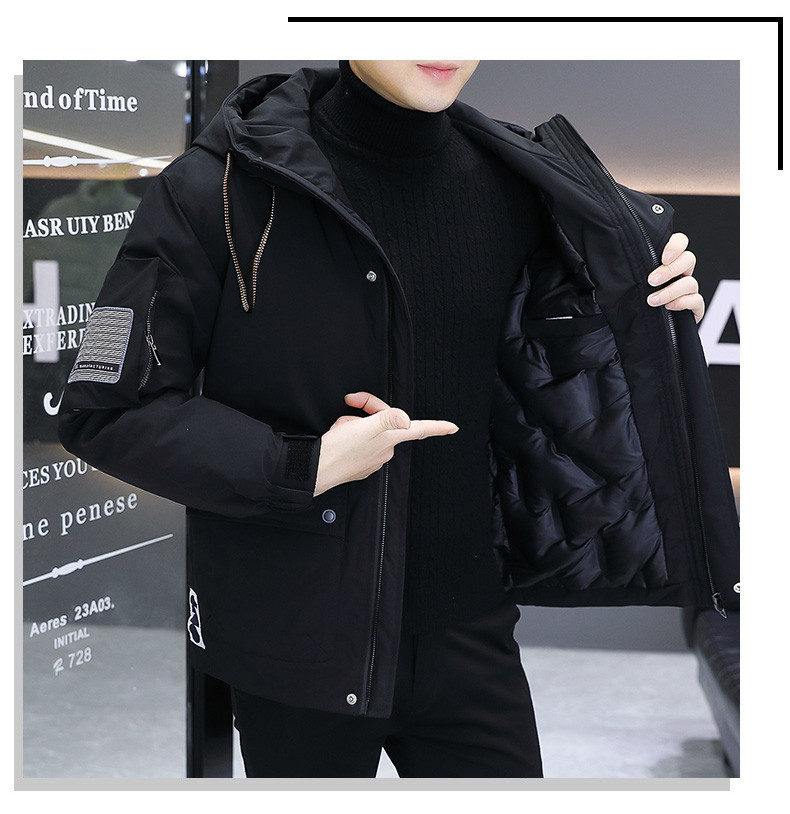 2025 Winter Hooded Personalized Workwear Cotton Jacket for Men, Short Style, Youth Loose Fit, Korean Version, Thickened and Warm Cotton Coat