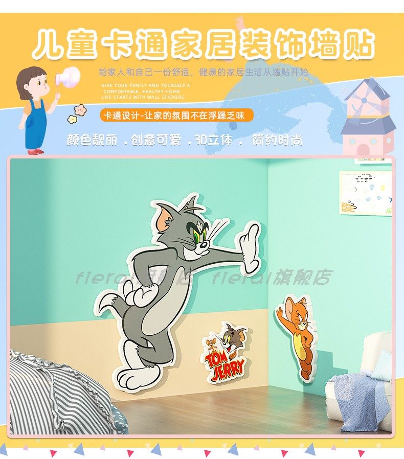 Tom and Jerry wall stickers for boys and girls room layout wall decoration corner wall modification hole patching artifact