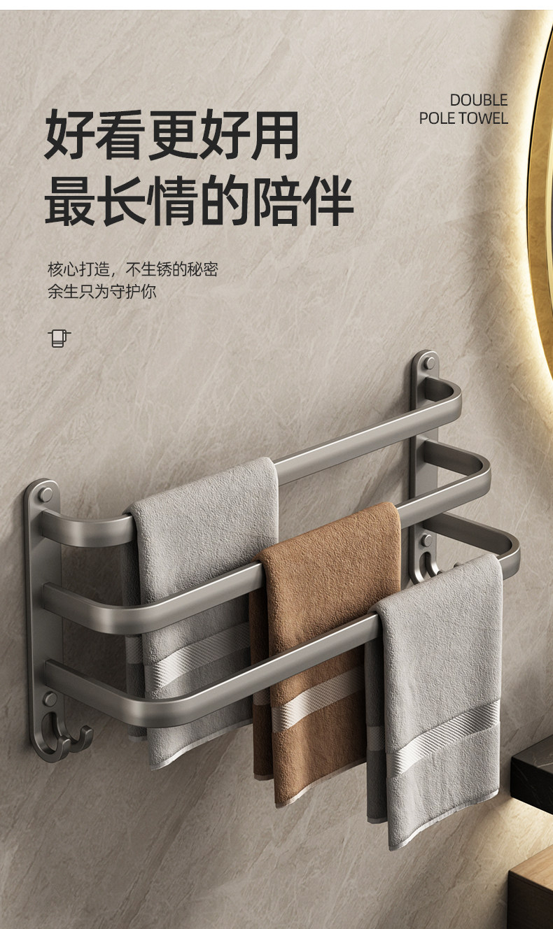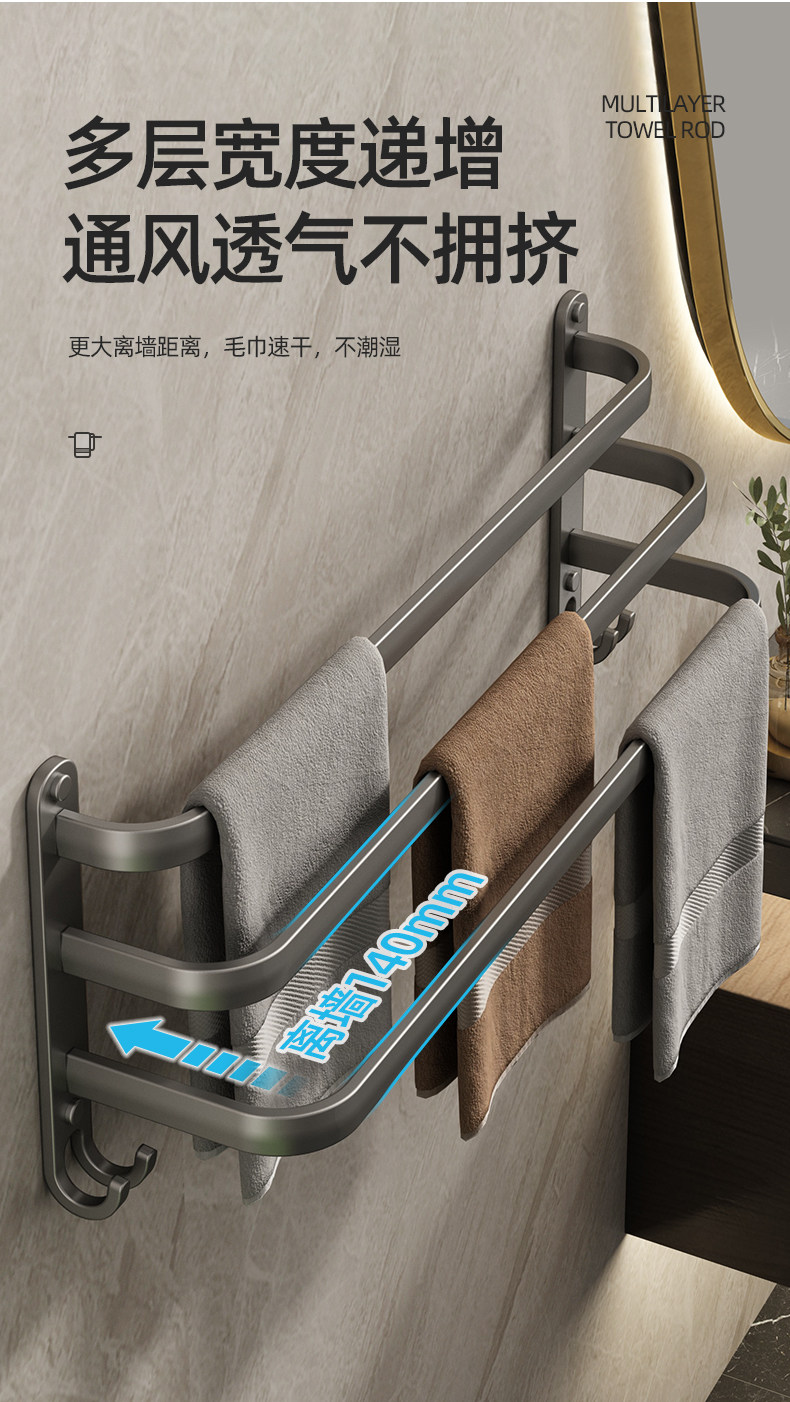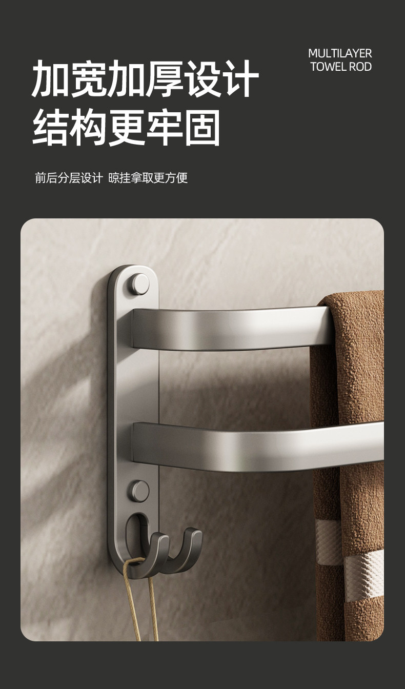 Italian Aisino Towel Rack, No-Drill Wall-Mounted Bathroom Towel Bar Storage Rack