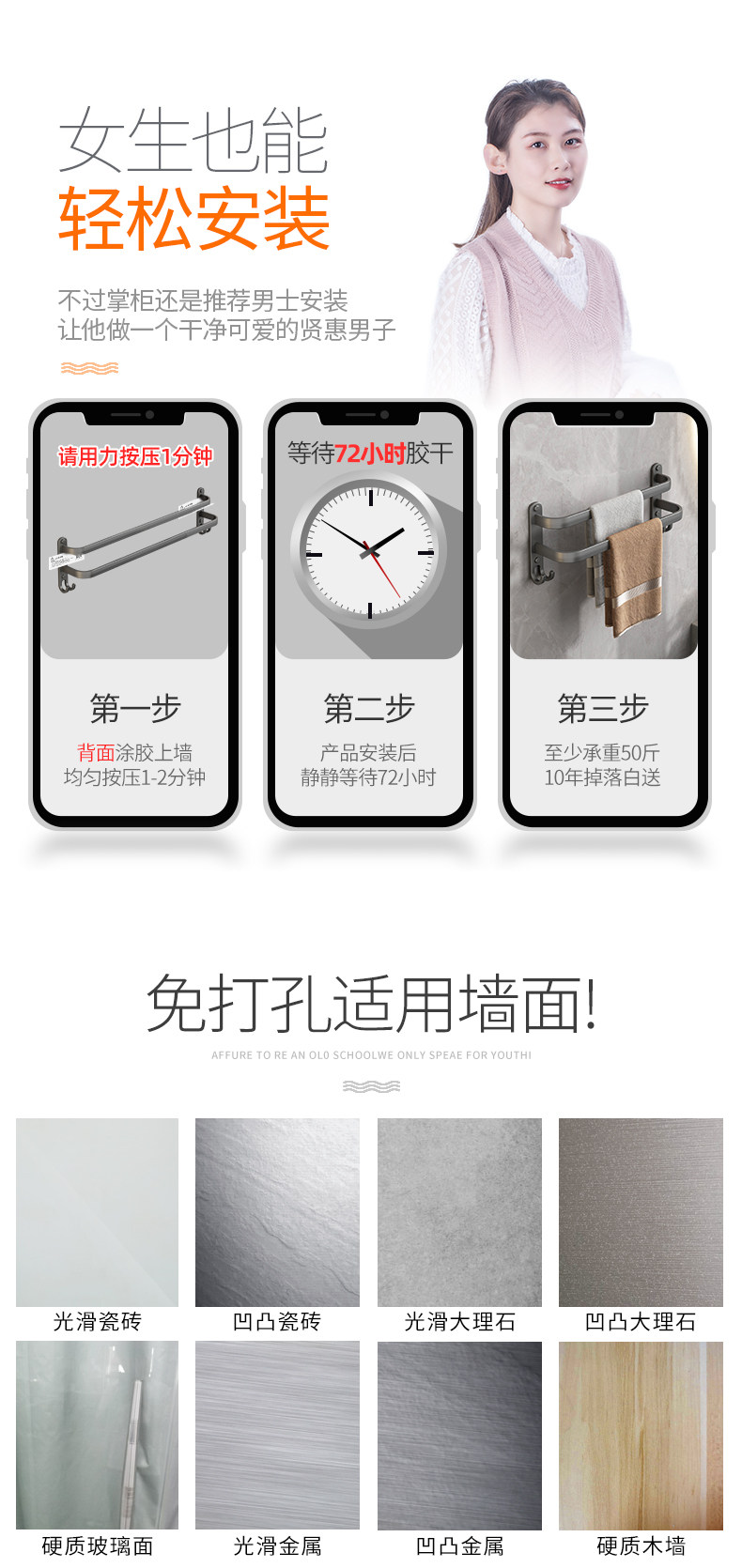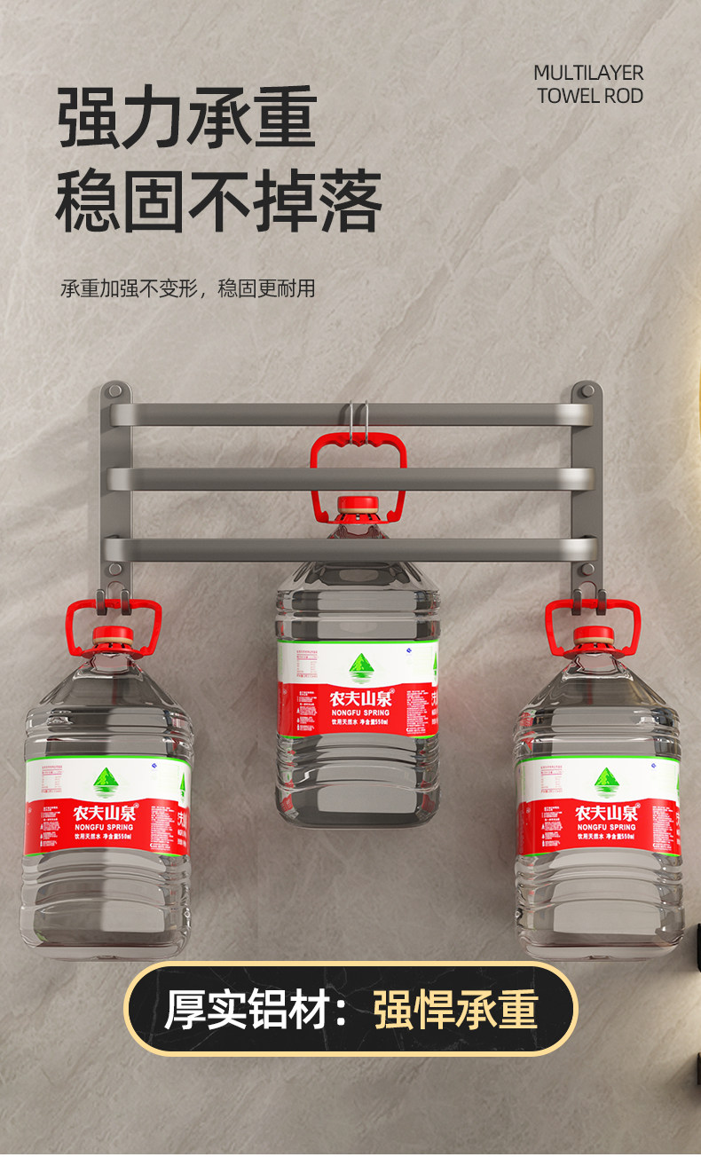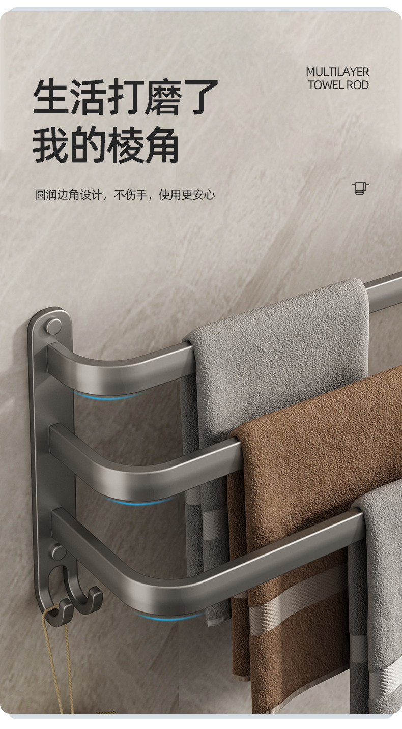 Italian Aisino Towel Rack, No-Drill Wall-Mounted Bathroom Towel Bar Storage Rack
