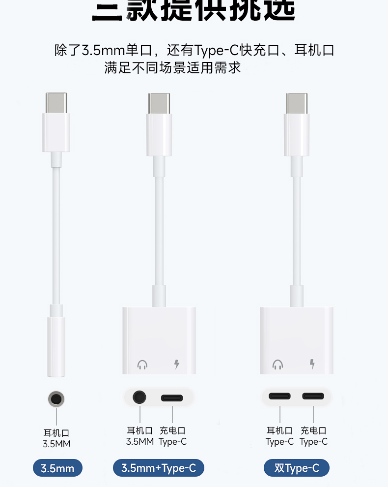 Color Classification Applicable to Apple 15 Series[Type-C to 3.5mm Headphone Adapter]●Plug and Play,Applicable to Apple 15 Series[Type-C to 3.5mm+Type-c]2-in-1 Adapter●Plug and Play,Applicable to Apple 15 Series[Type-C to Dual Type-C]2-in-1 Adapter●Plug and Play