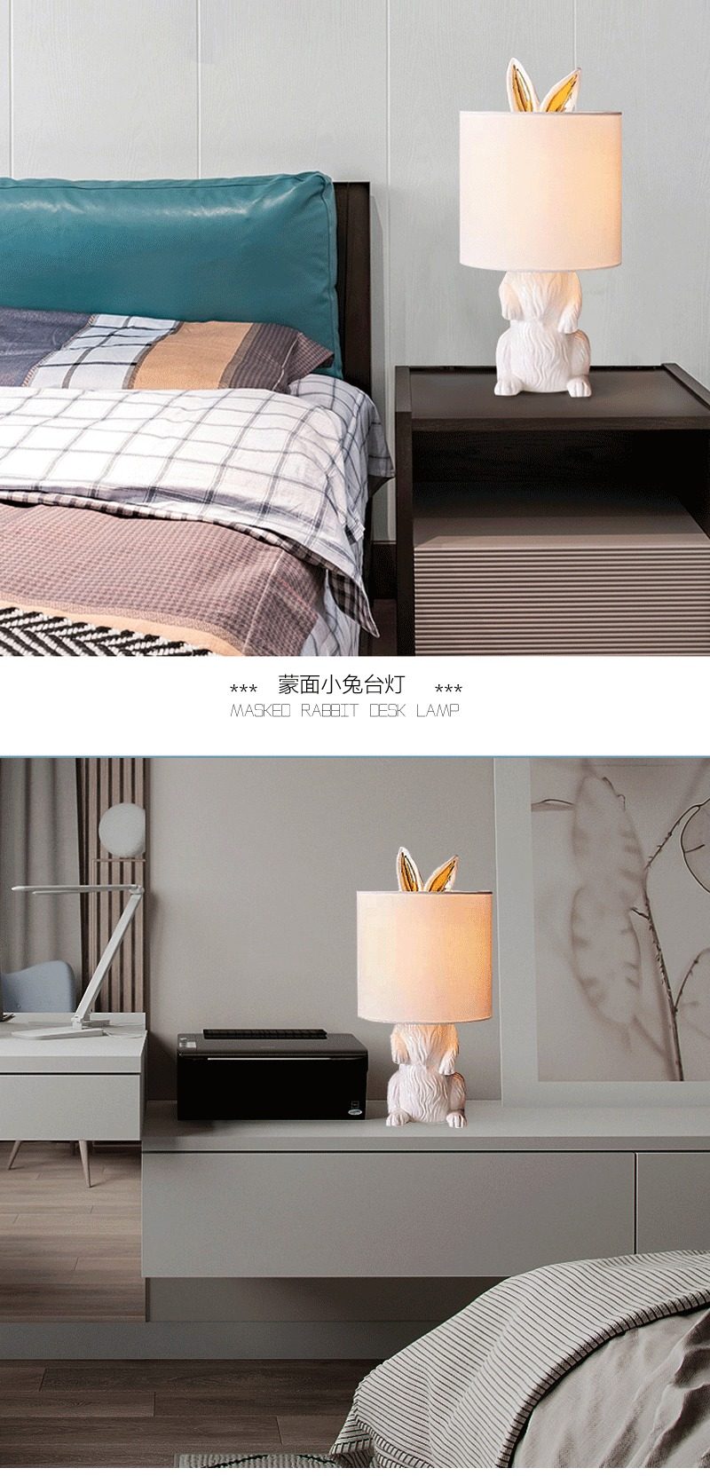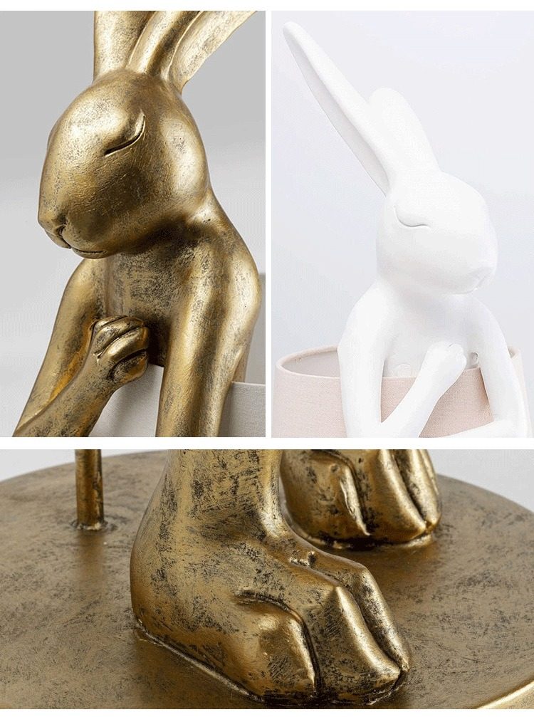 Color Classification Golden Rabbit + White Cover,Golden Rabbit + Black Cover,White Rabbit + White Cover,White Rabbit + Green Cover,Golden Rabbit-Green Lampshade,Black Rabbit-Black Mask,Masked White Rabbit,Masked Black Rabbit,Standing White Rabbit,Sitting White Rabbit,Lying down White Rabbit