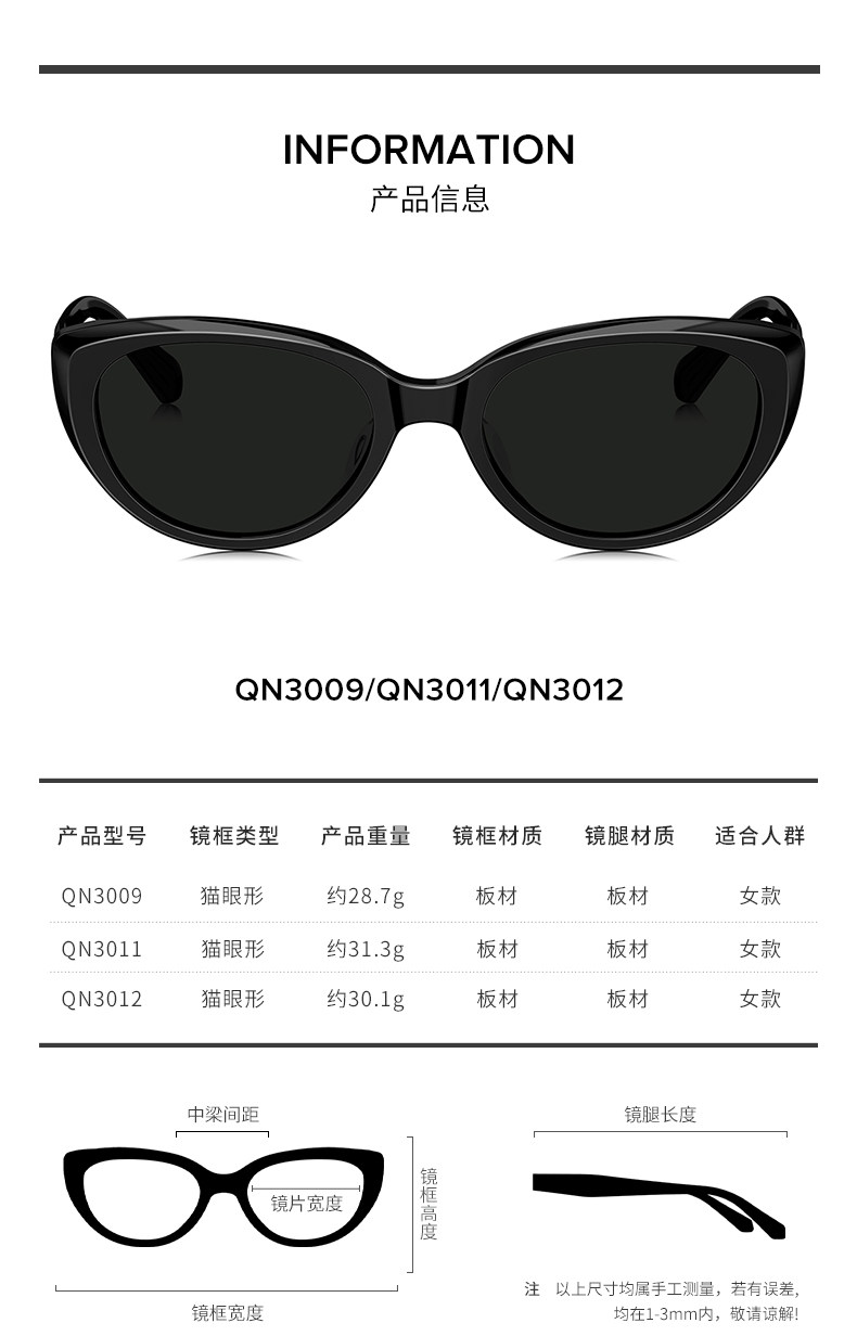 Qina Zhao Lusi same style cat eye sunglasses women's small frame sunglasses QN3009