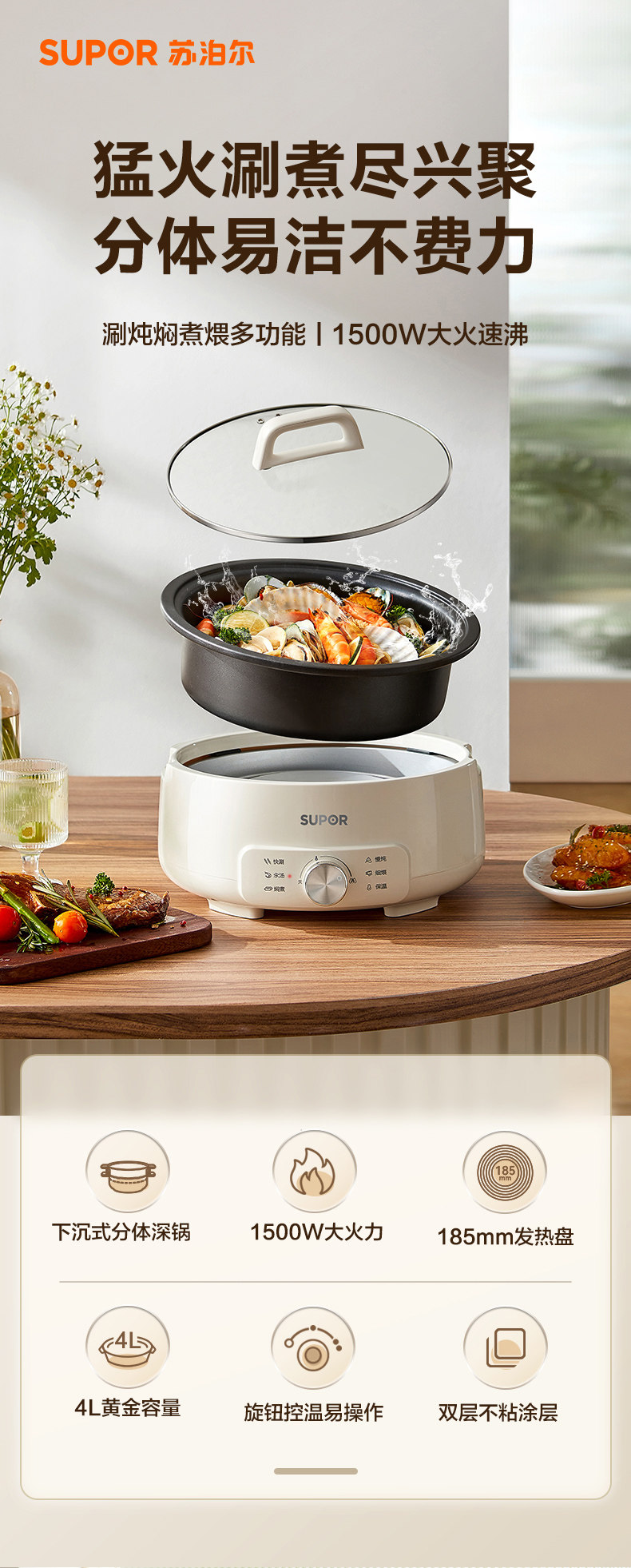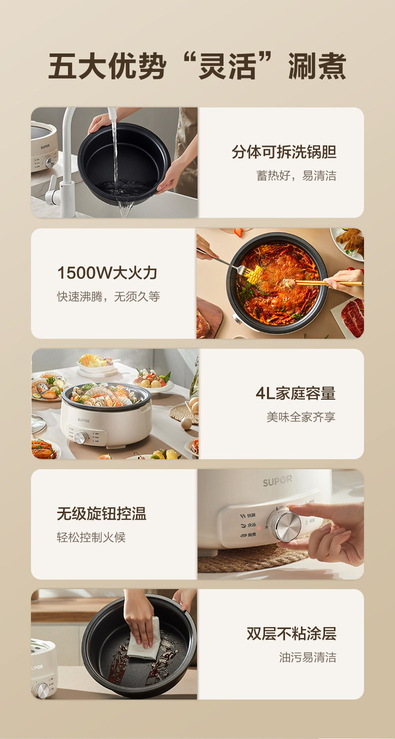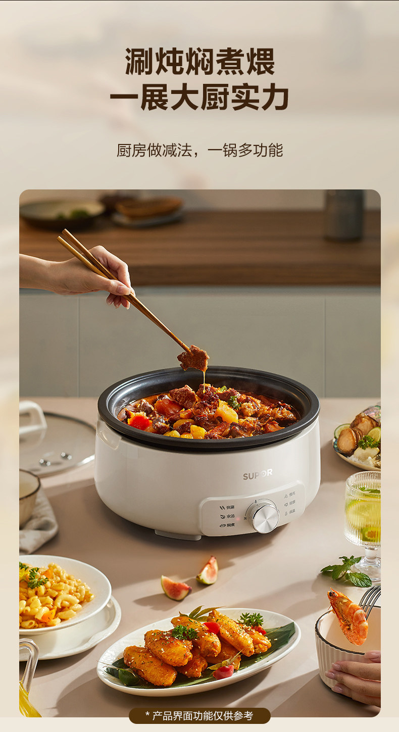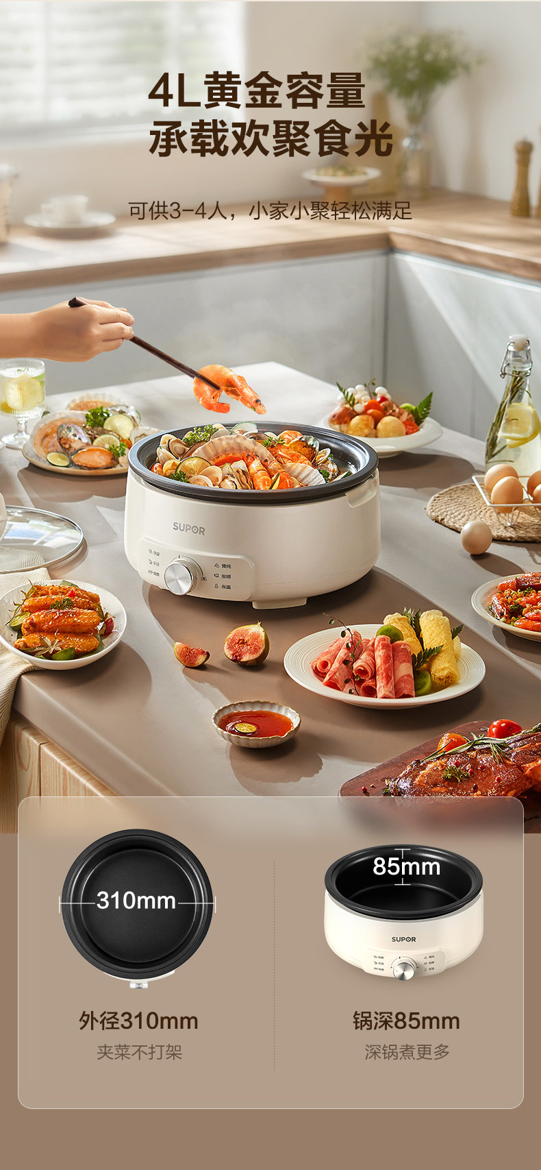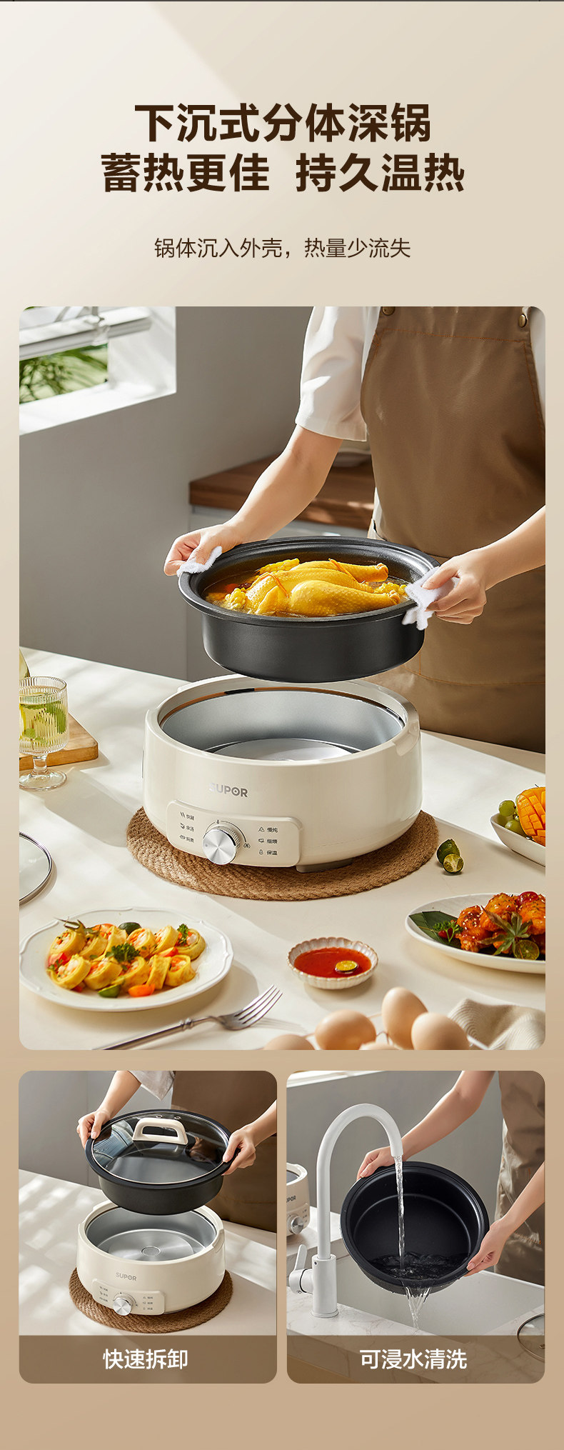 Supor Electric Hot Pot, Household Electric Cooking Pot, Multifunctional Dormitory Electric Pot, Detachable Electric Hot Pot, Integrated Electric Frying Pan