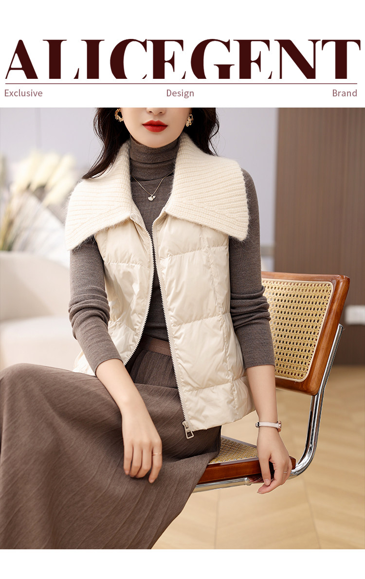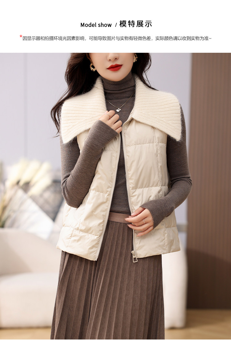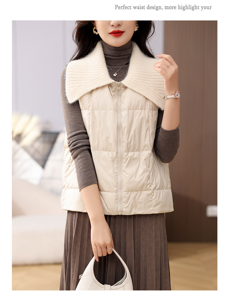 Lapel 90% White Goose down Short Vest for Petite Women, 2023 Autumn and Winter New Style, Fashionable and Lightweight Outerwear