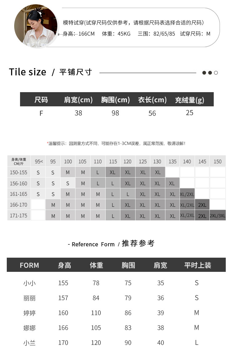 China (cm) 160-165/84-86 165-170 / 88-90 167-172 / 92-96 168-173 / 98-102 170-176 / 106-110