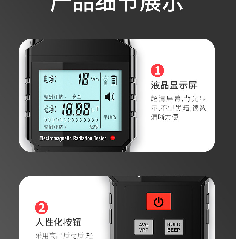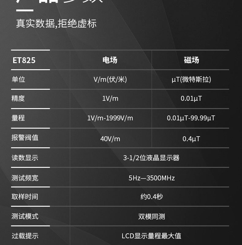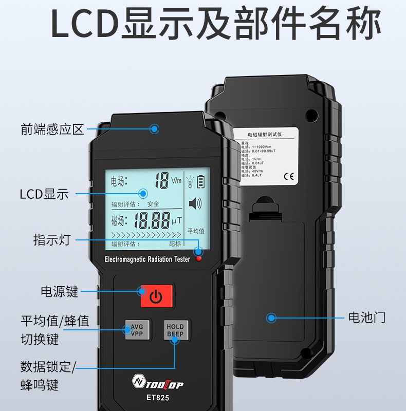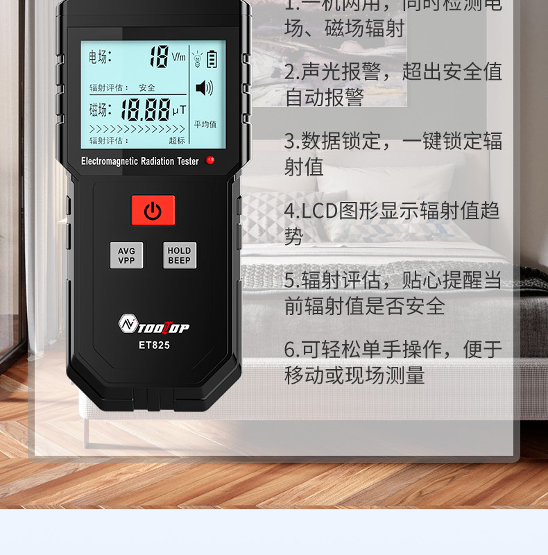 Electrical Radiation Detector Et825 Electric Field and Magnetic Field Portable Household Electromagnetic Radiation Monitor