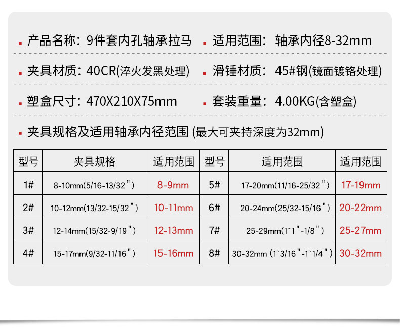 9-Piece Set of Inner Bore Bearing Removal Puller, Wheel Hub Bearing Puller, Sliding Hammer Puller Tool