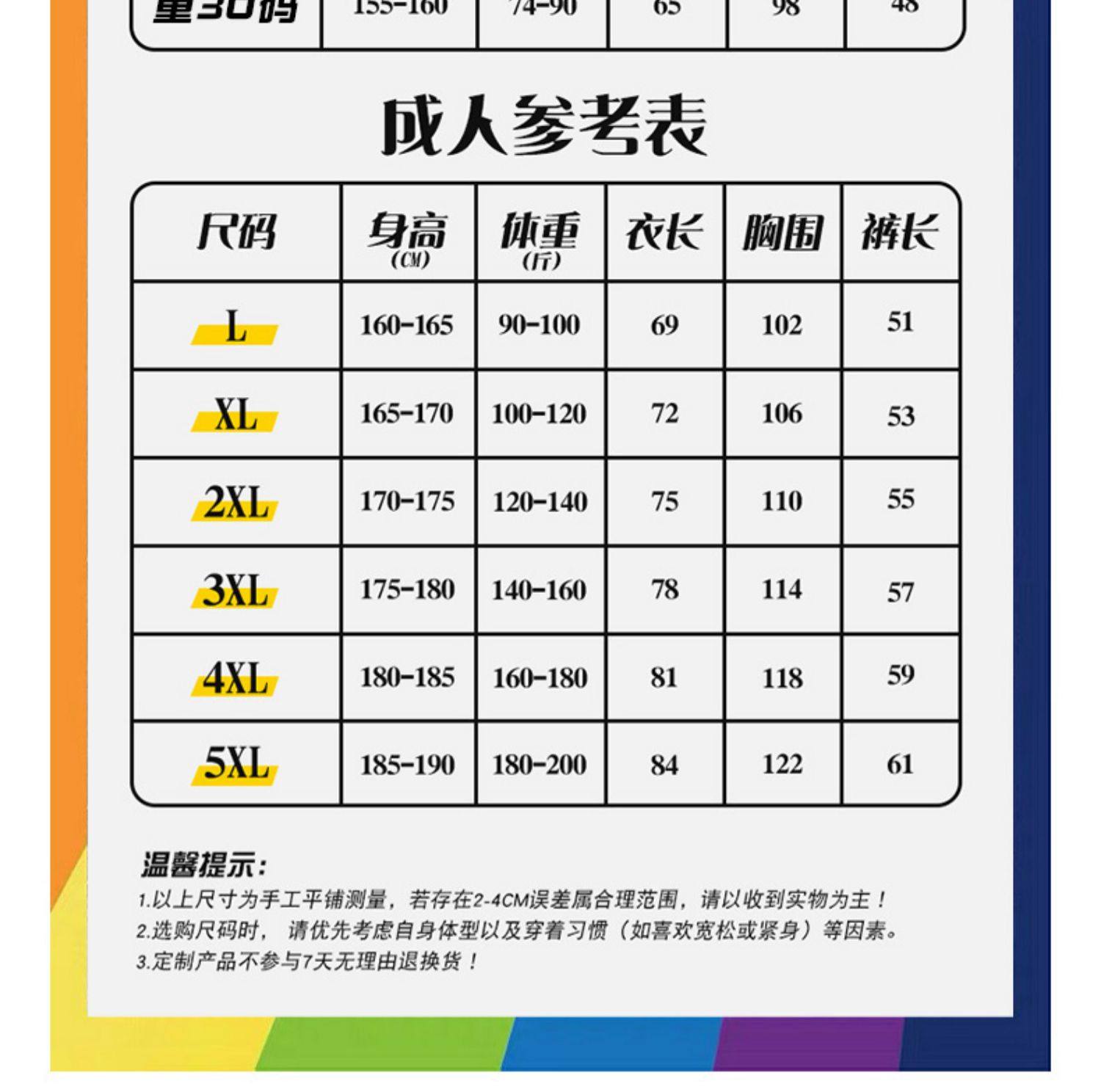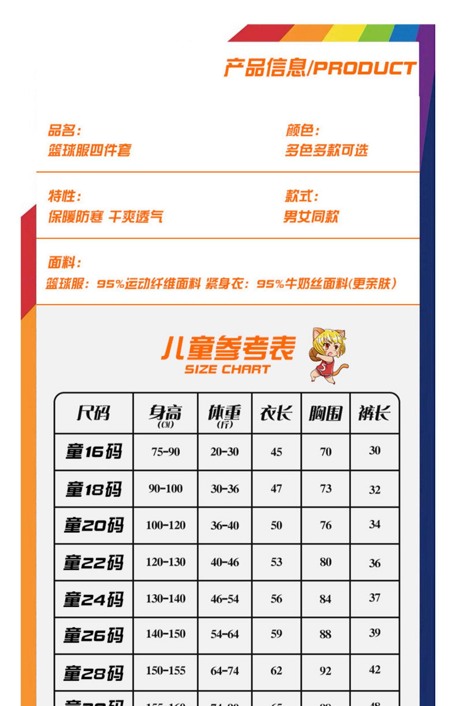 Size Children's size 16 (80-95cm, 20-30Jin Jin is equal to 0.5kg),Children's size 18 (95-105cm, 30-36 Jin is equal to 0.5 kg),Children's size 20 (105-120cm, 36-40Jin Jin is equal to 0.5 kg),Children's size 22 (120-130cm, 40-46Jin Jin is equal to 0.5kg),Children's size 24 (130-140cm, 46-54Jin Jin is equal to 0.5kg),Children's size 26 (140-150cm, 54-64Jin Jin is equal to 0.5kg),Children's size 28 (150-155cm, 64-74Jin Jin is equal to 0.5kg),Children's size 30 (155-160cm, 74-90Jin Jin equals 0.5kg),L-(160-165cm,90-100Jin Jin is equal to 0.5kg),XL-(165-170cm,100-120Jin Jin is equal to 0.5kg),2XL-(170-175cm,120-140Jin Jin is equal to 0.5kg),3XL-(175-180cm,140-160Jin Jin is equal to 0.5kg)