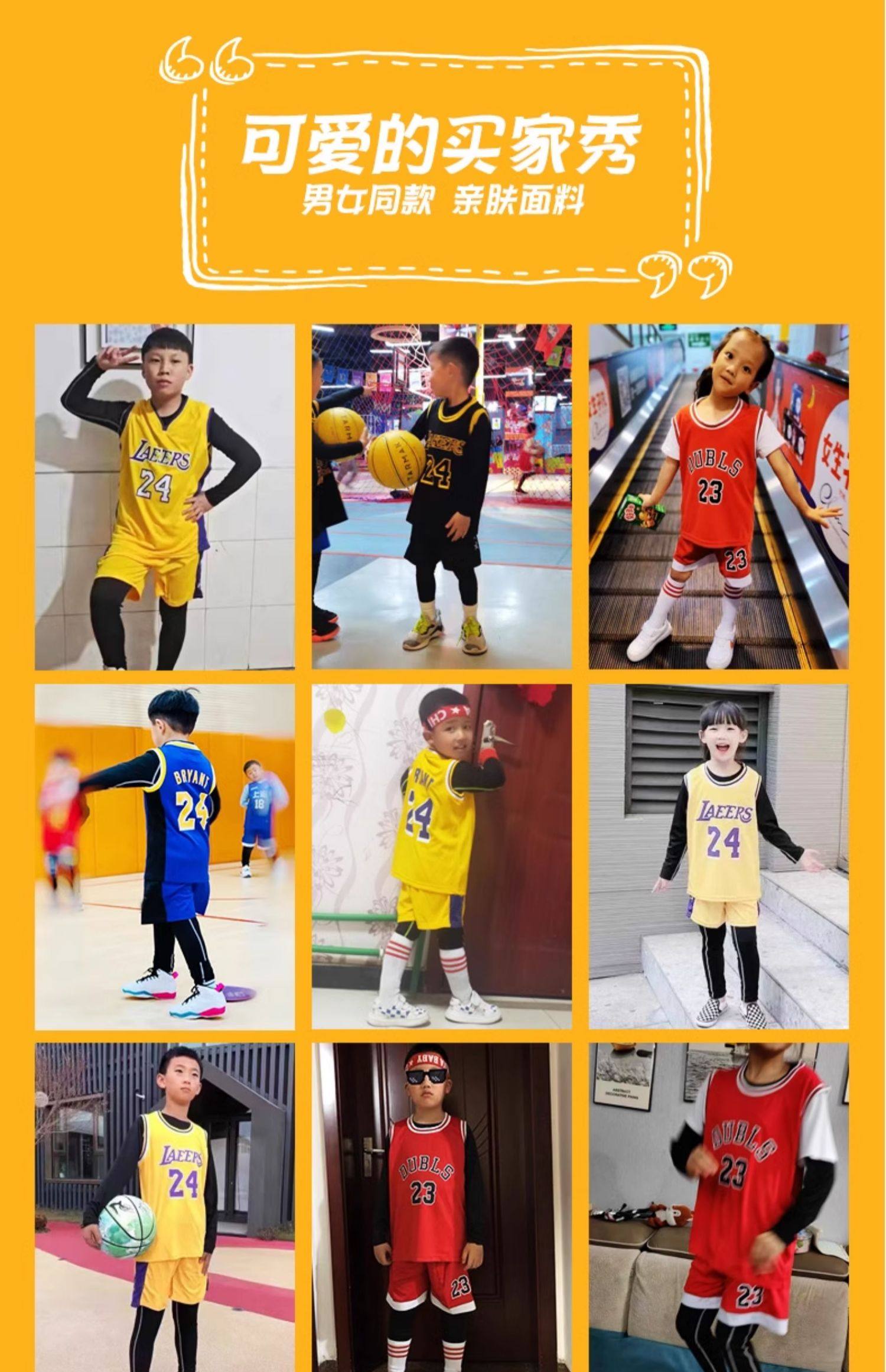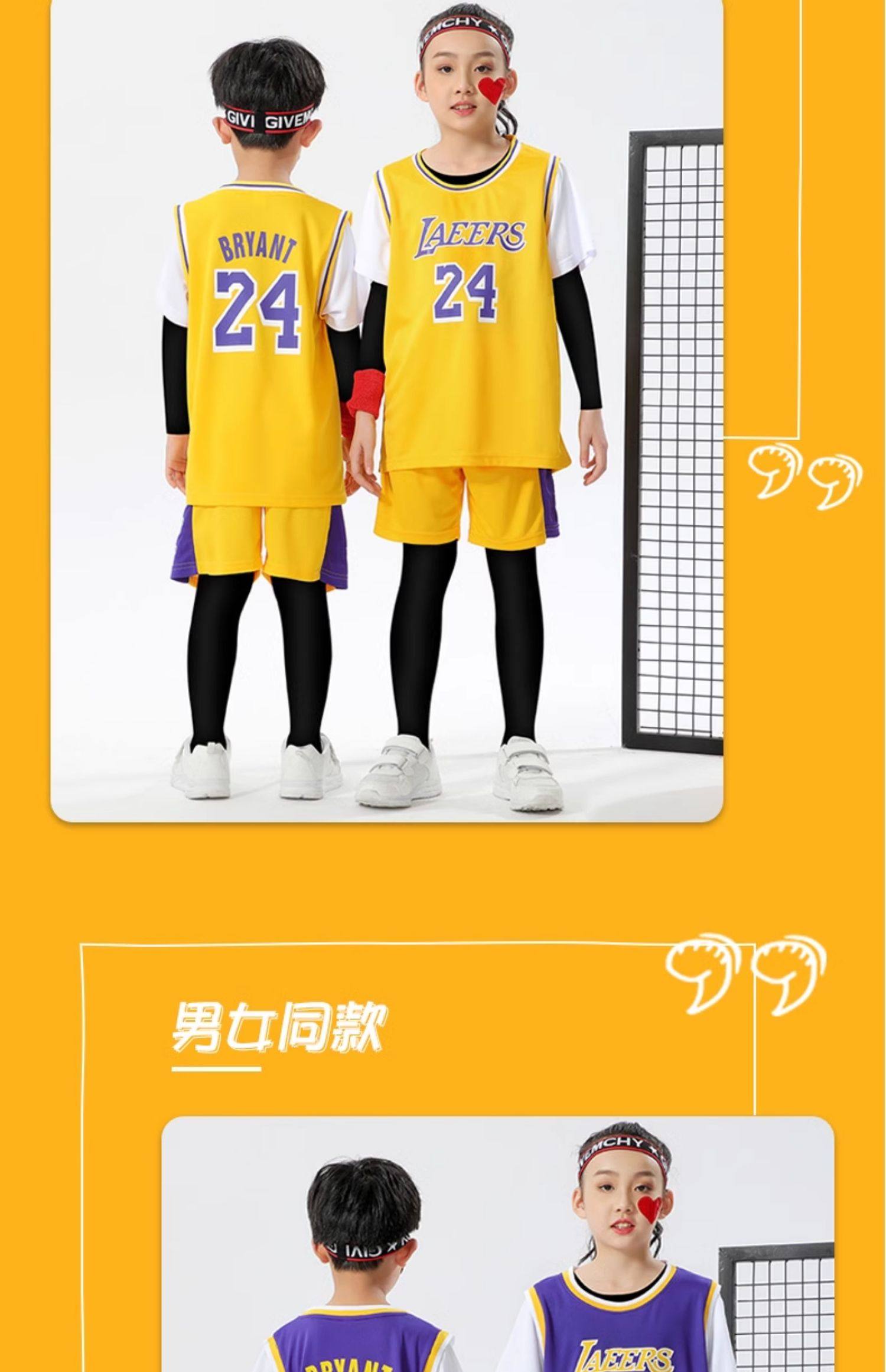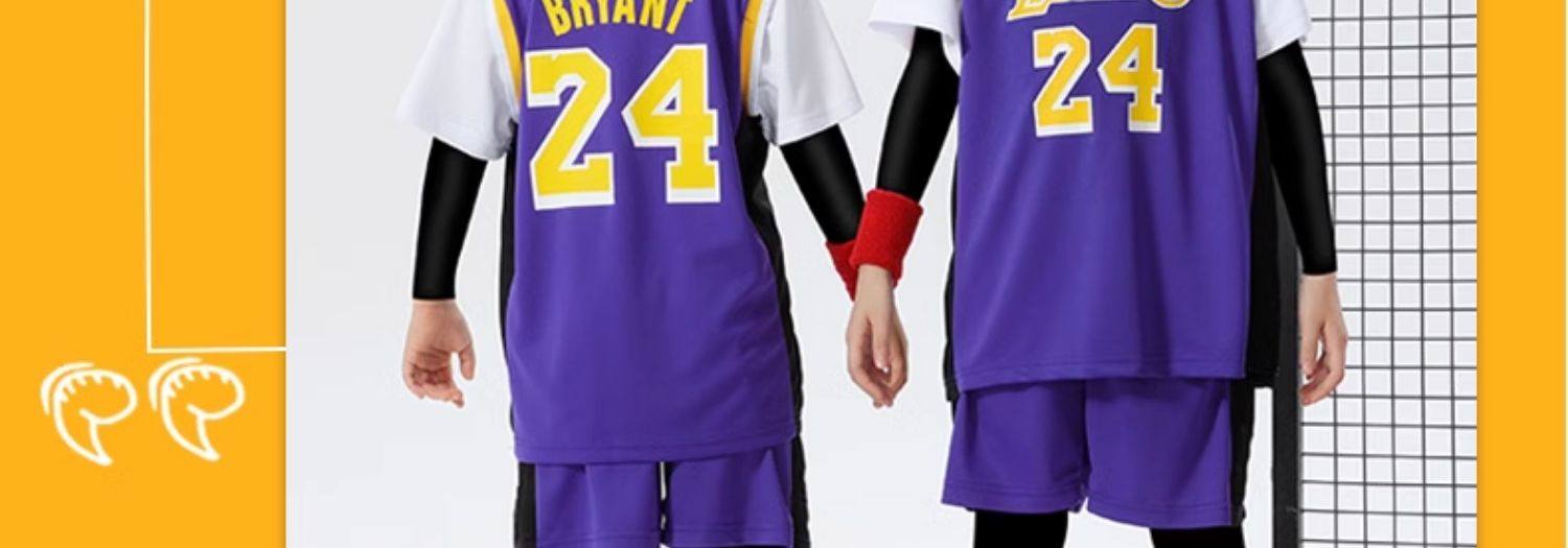 Summer children's basketball uniforms fake two-piece suit short-sleeved boys and girls performance uniforms training uniforms No. 24 Kobe Bryant jersey