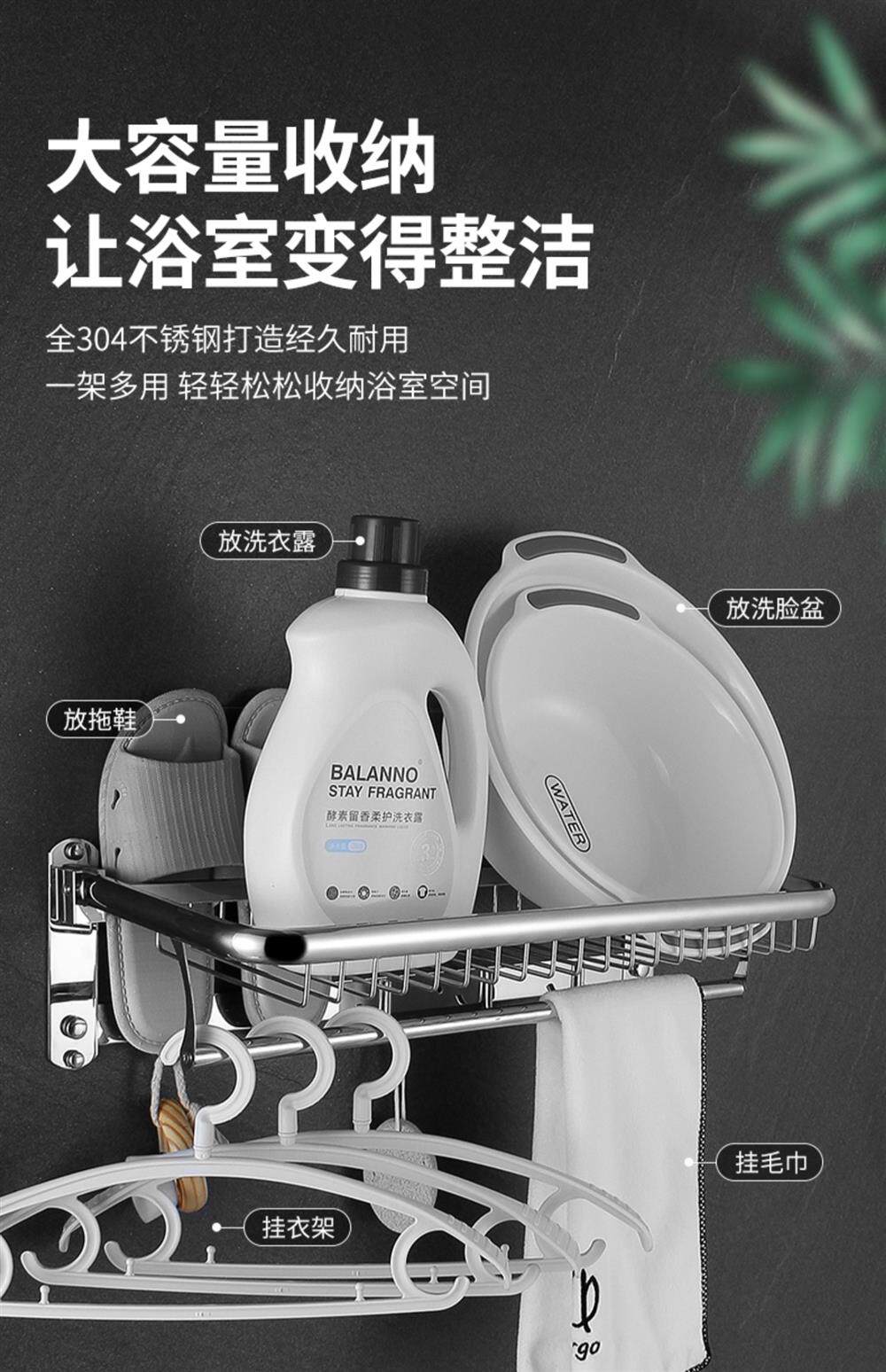 Italian Aisino Bathroom Towel Rack, No-Drill 304 Stainless Steel Wall-Mounted Clothes Storage Rack, Foldable