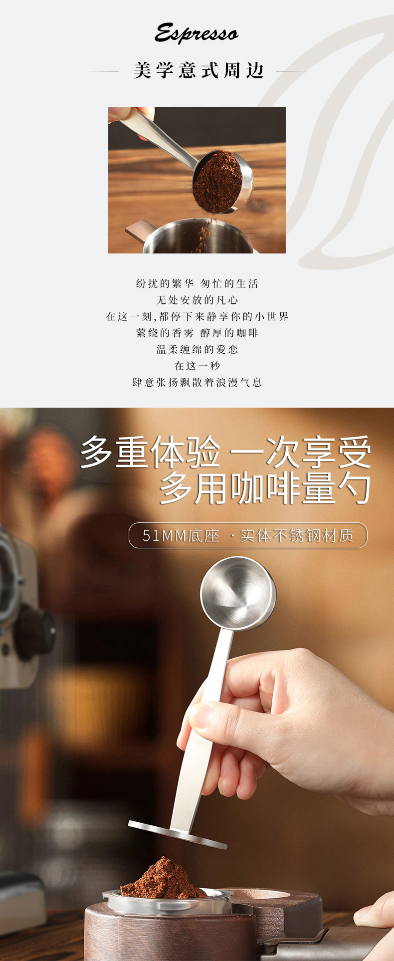 Stainless Steel Measuring Spoon, Coffee Powder Pressing Spoon, Two-In-One Coffee Tamper, Moka Pot Coffee Machine Powder Hammer