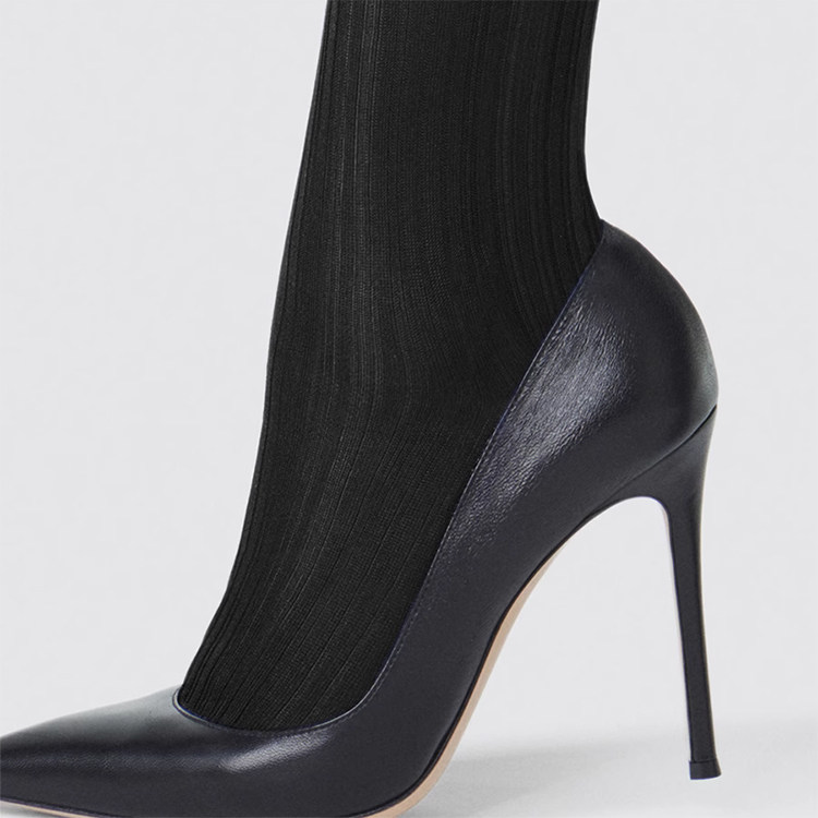 Swiss Imported Fogal Silk-Cotton Blend Comfortable Skin-Friendly Slimming Vertical Stripe Mid-Calf Women's Socks