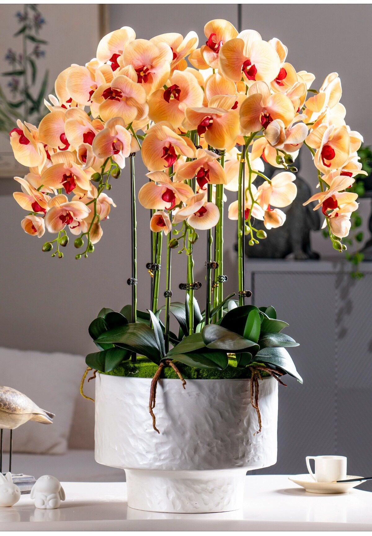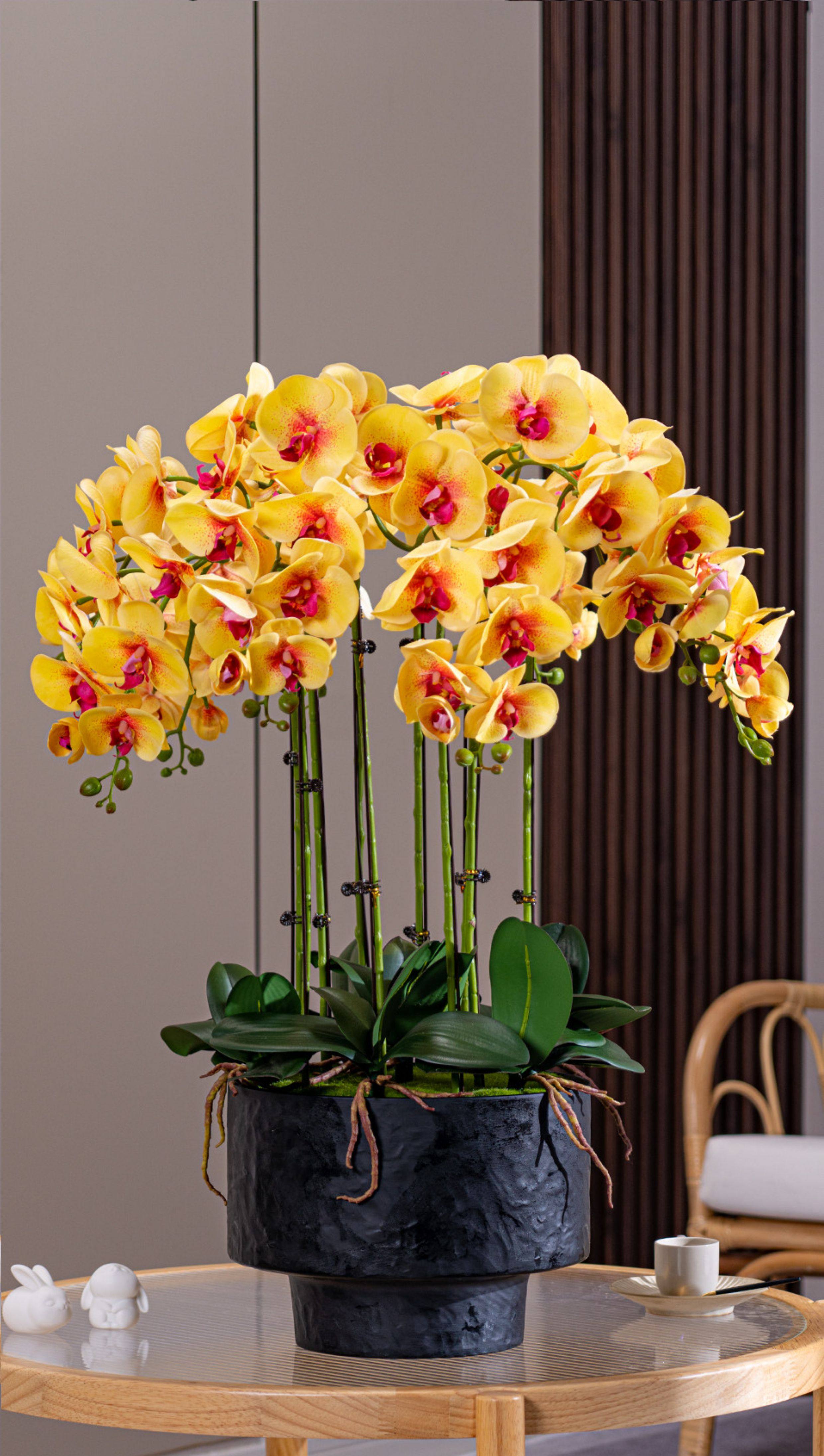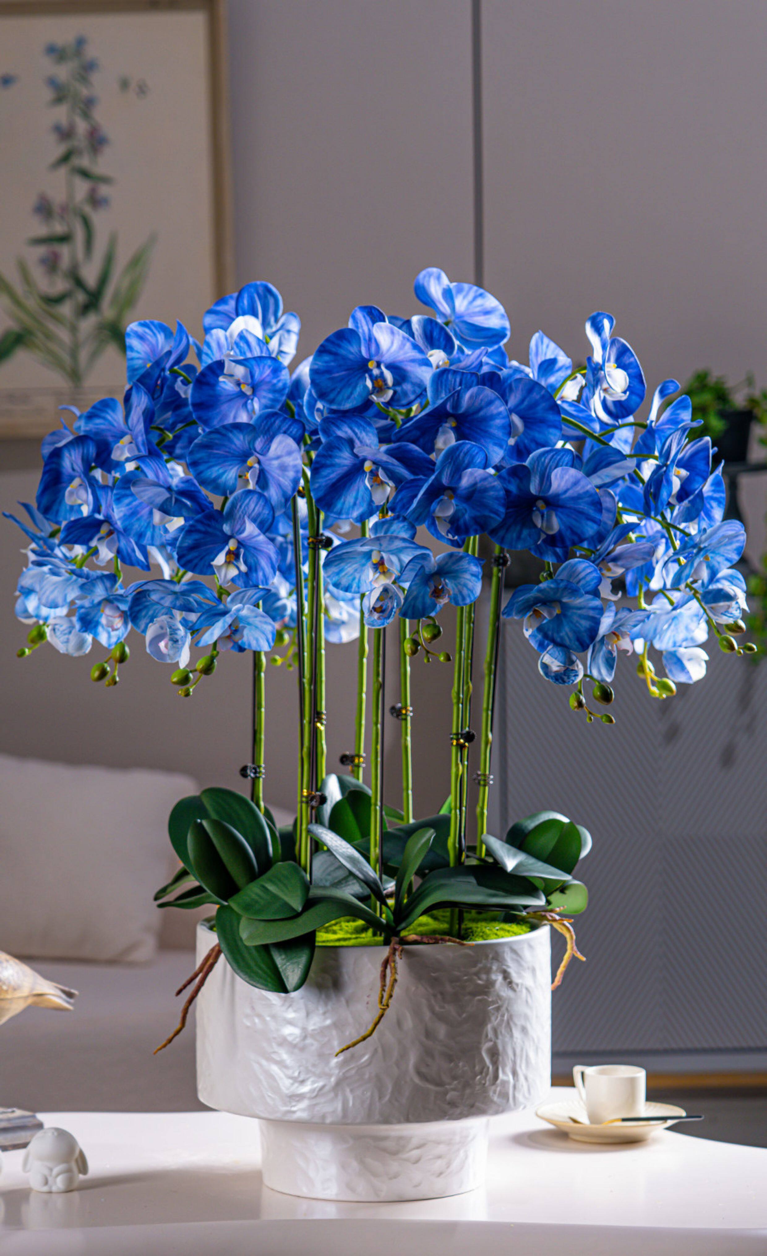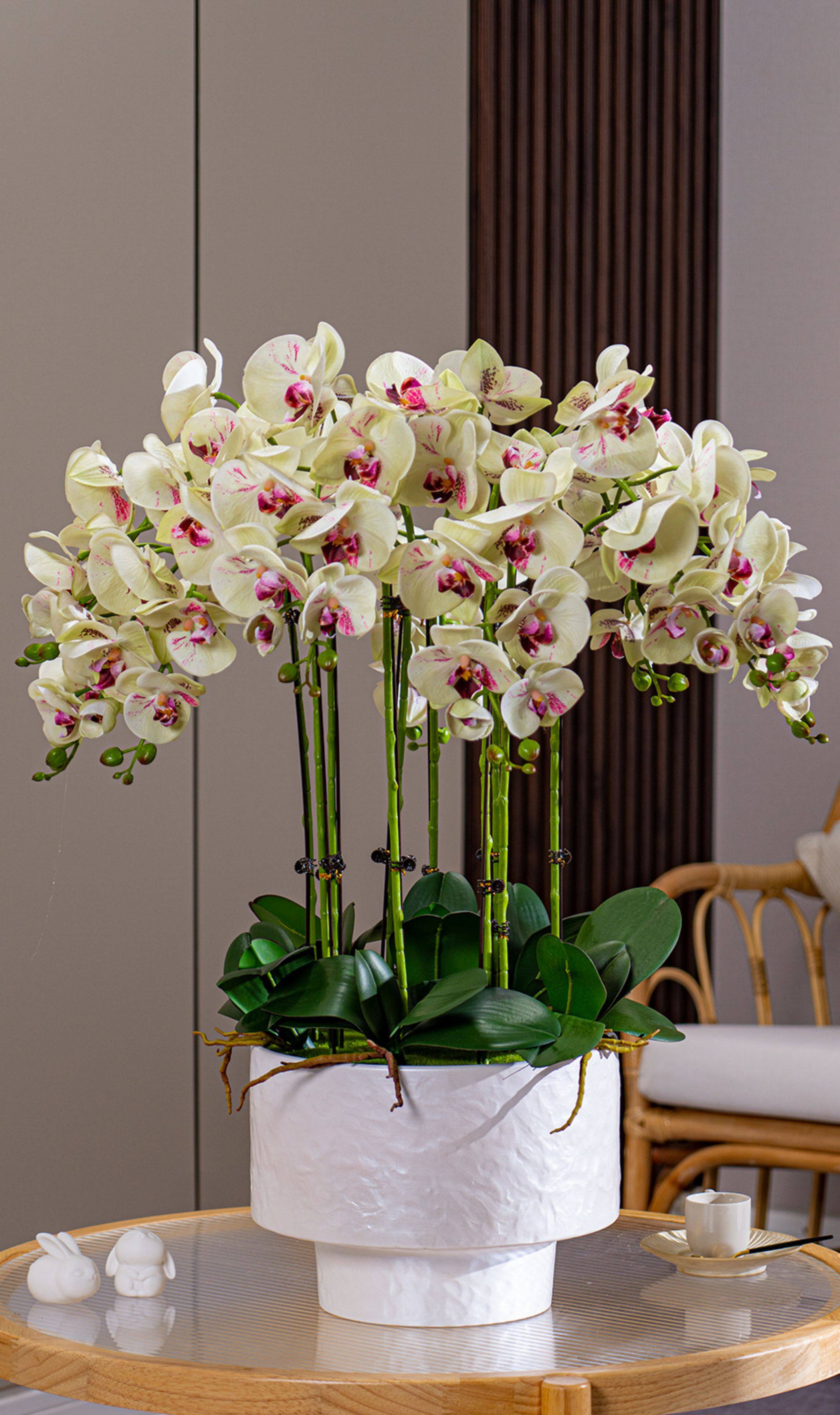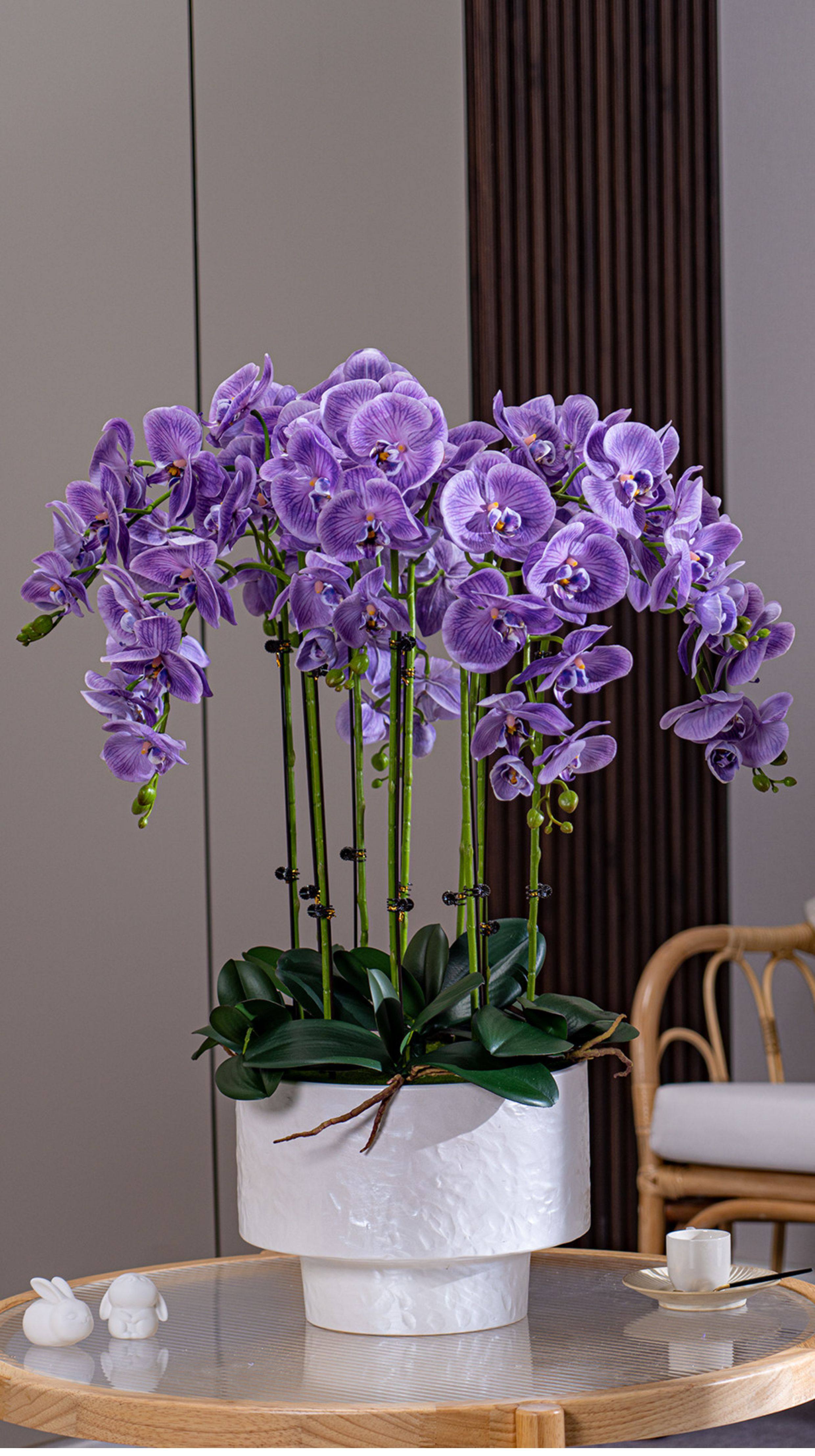 Large Pot of High-End, Realistic-Feeling, Moisturizing Phalaenopsis Artificial Flowers, Plastic Dried Flowers, Fake Floral Arrangements, Indoor Living Room Decorations