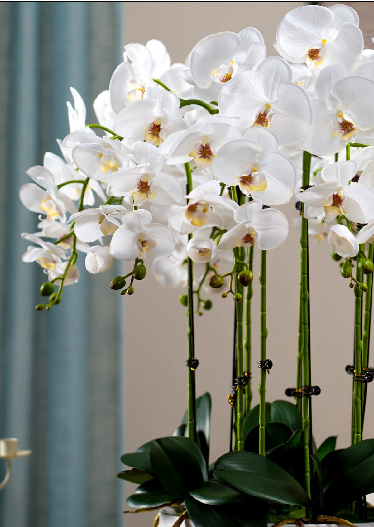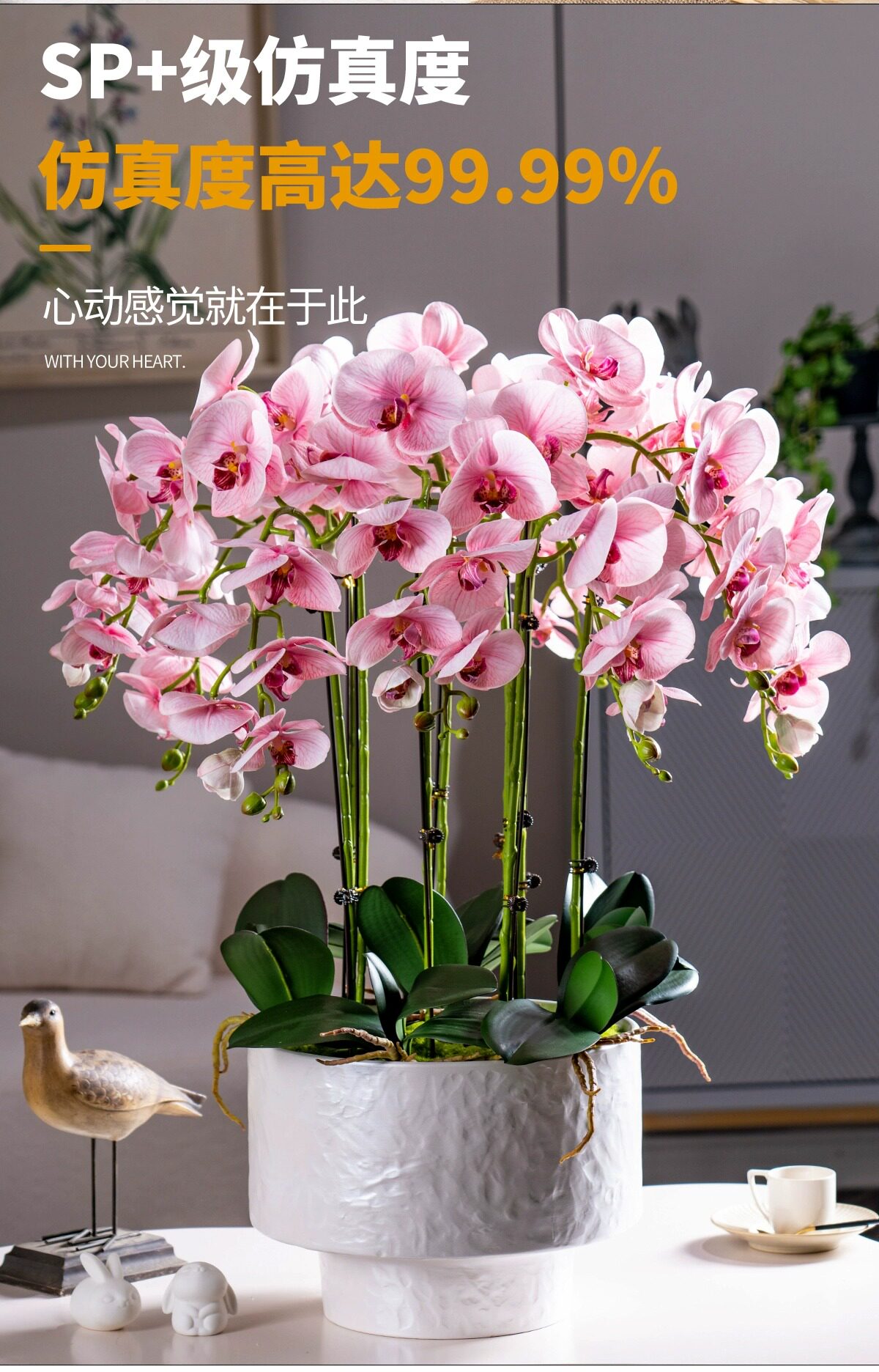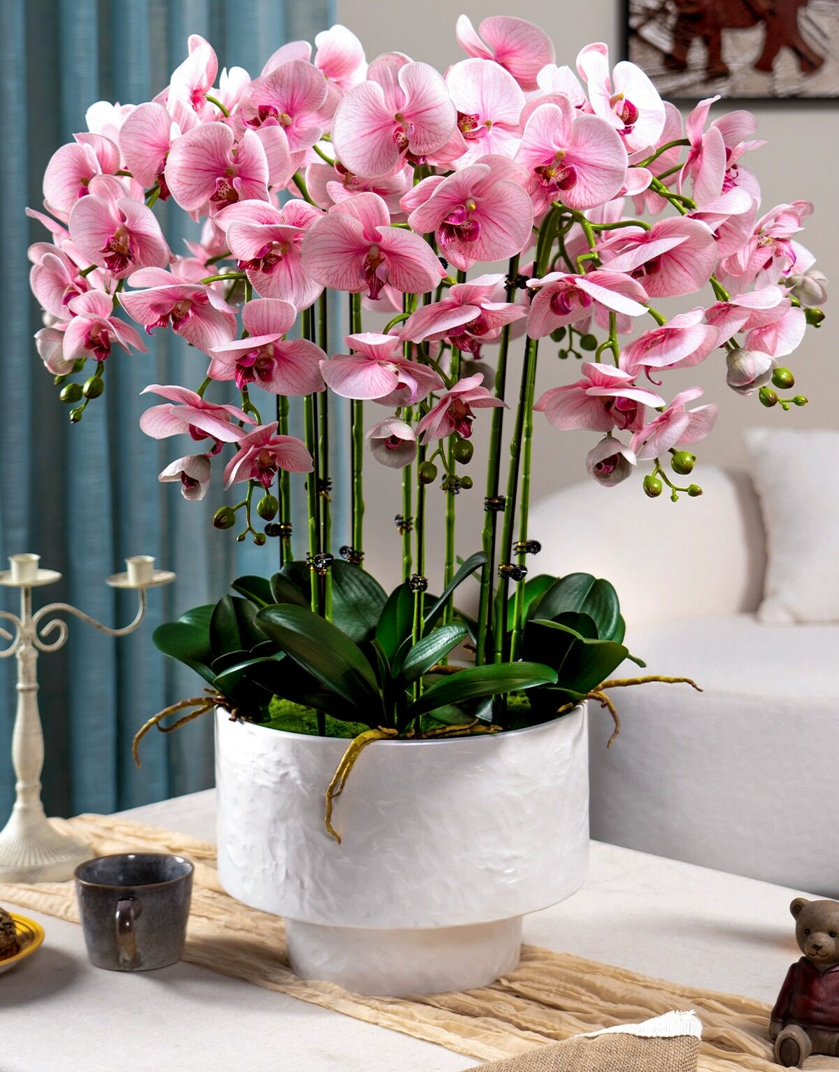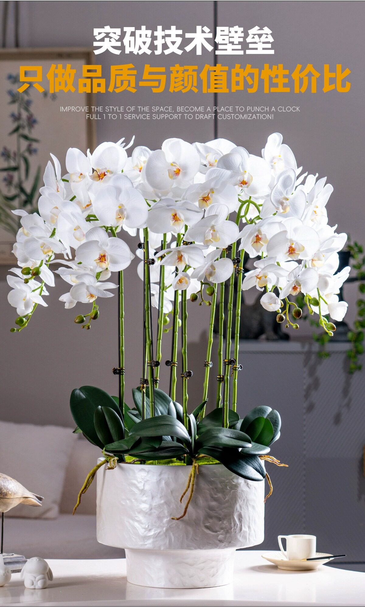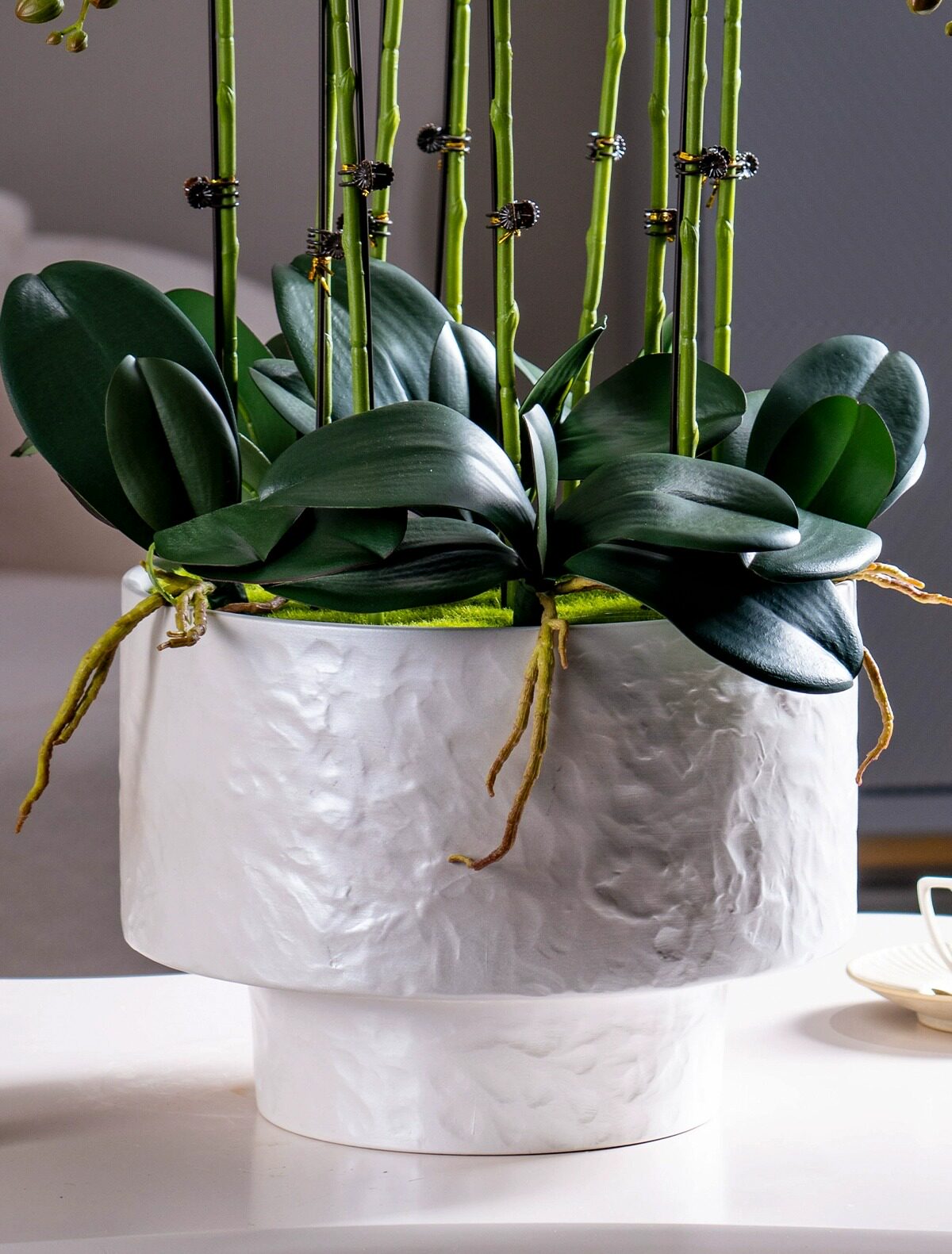 Large Pot of High-End, Realistic-Feeling, Moisturizing Phalaenopsis Artificial Flowers, Plastic Dried Flowers, Fake Floral Arrangements, Indoor Living Room Decorations