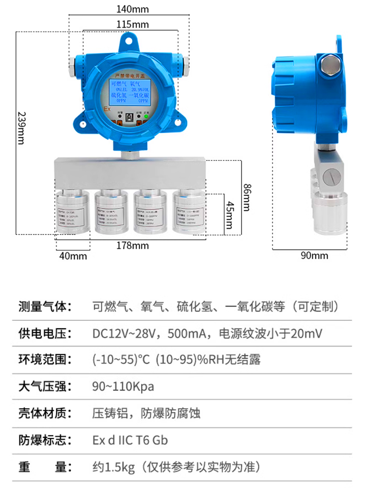 Color Classification A Plug and Play: 4-in-1 Gas Detector + Explosion-Proof Audible & Visual Alarm + Power Supply [Ct6 Industrial Grade Explosion-Proof],B Plug and Play: Four-In-One Gas Probe + Explosion-Proof Sound and Light + Power Supply [Ct6 Industrial Grade Explosion-Proof],4g Network Enabled: 4-in-1 Gas Detector + Explosion-Proof Audible & Visual Alarm [Ct6 Industrial Grade Explosion-Proof],4g Networking Model: Four-In-One Gas Probe + Explosion-Proof Sound and Light [Ct6 Industrial Grade Explosion-Proof],Plug and Play: Combustible Gas Probe + Power Supply [3C Certification],Plug and Play: Flammable Digital Display Probe + Explosion-Proof Sound and Light + Power Supply,Plug and Play: Hydrogen Sulfide Digital Display Probe + Explosion-Proof Audible & Visual Alarm + Power Supply,Plug and Play: Oxygen Digital Display Probe + Explosion-Proof Sound and Light + Power Supply,Plug and Play: Carbon Monoxide Digital Display Probe + Explosion-Proof Sound and Light + Power Supply,Plug and Play: Ammonia Digital Display Probe + Explosion-Proof Sound and Light + Power Supply,Plug and Play: Hydrogen Digital Display Probe + Explosion-Proof Sound and Light + Power Supply,Plug and Play: Chlorine Digital Display Probe + Explosion-Proof Sound and Light + Power Supply,Plug and Play: Hydrogen Chloride Digital Display Probe + Explosion-Proof Sound and Light + Power Supply,Plug and Play: Ozone Digital Display Probe + Explosion-Proof Sound and Light + Power Supply,Plug and Play: Digital Display Probe for Carbon Dioxide + Explosion-Proof Sound and Light + Power Supply,Plug and Play: Voc Digital Display Probe + Explosion-Proof Sound and Light + Power Supply,Plug and Play: Sulfur Hexafluoride Digital Display Probe + Explosion-Proof Sound and Light + Power Supply,Plug and Play: Ethanol Alcohol Digital Display Probe + Explosion-Proof Sound and Light + Power Supply,Plug and Play: Hydrogen Cyanide Digital Display Probe + Explosion-Proof Sound and Light + Power Supply