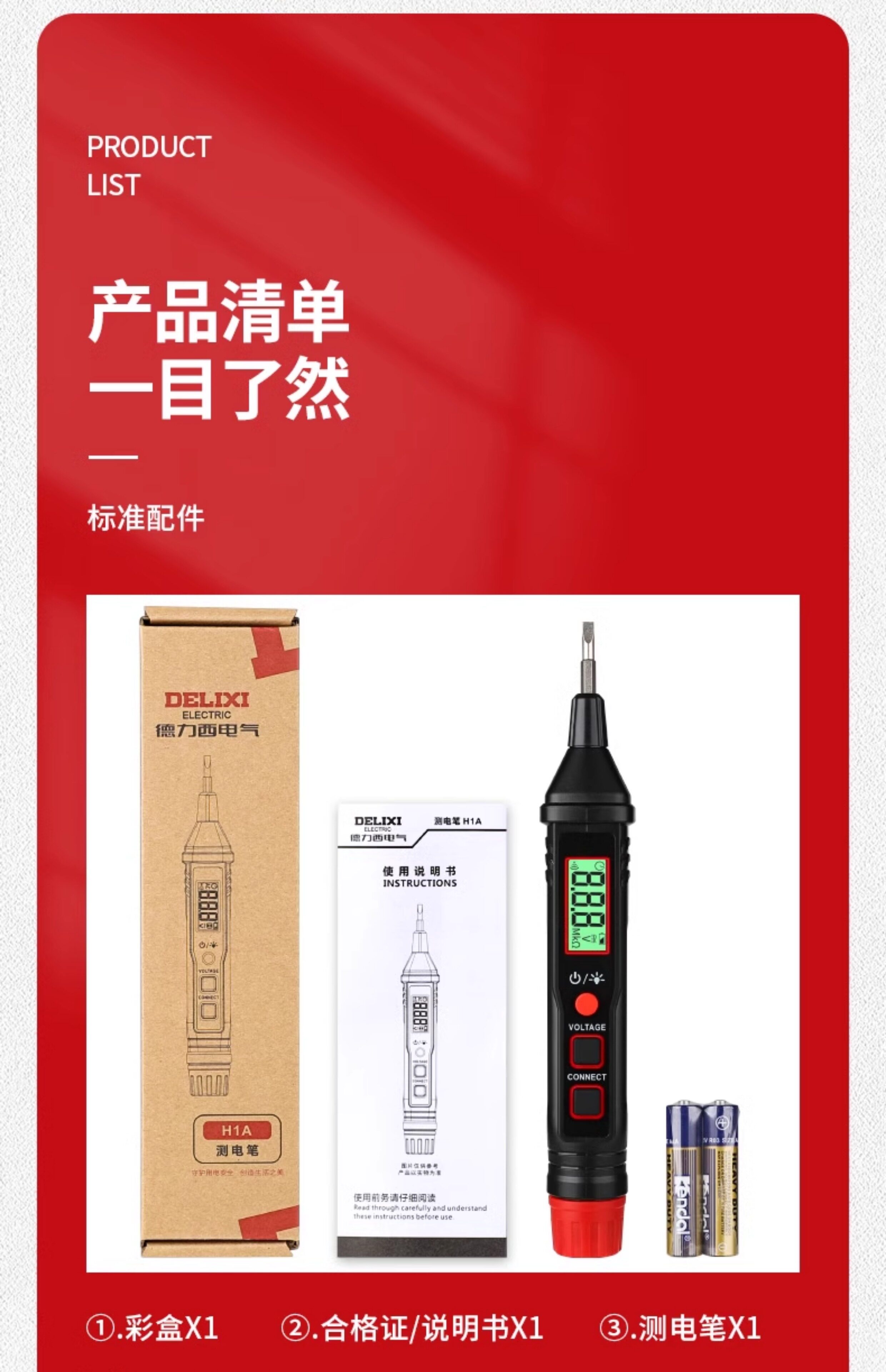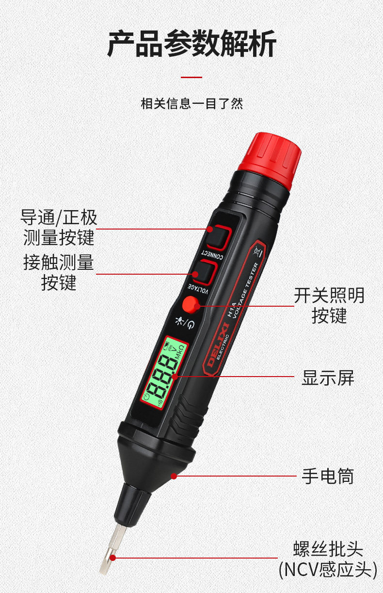Delixi Intelligent Digital Display Multi-Function Electric Tester Voltage Detector Induction Screwdriver Electrician's Special Tool for Testing Broken Wires