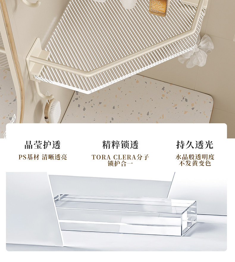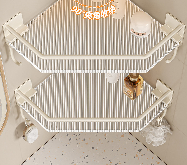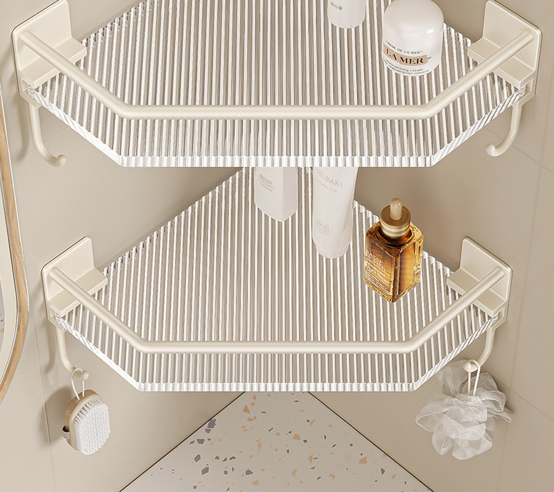 Bathroom Shelf, Triangular Storage Rack for Bathroom, No-Drill Toilet Tripod, Acrylic Milky White