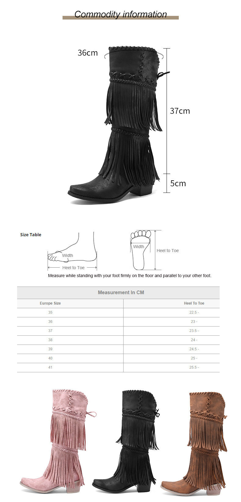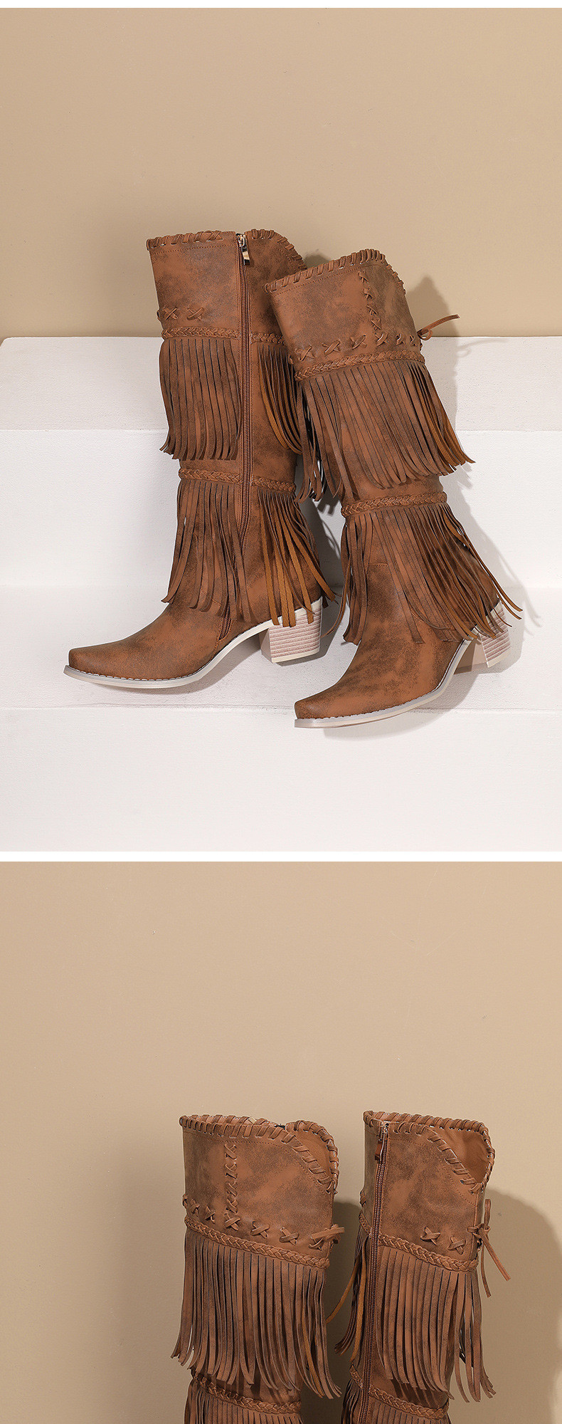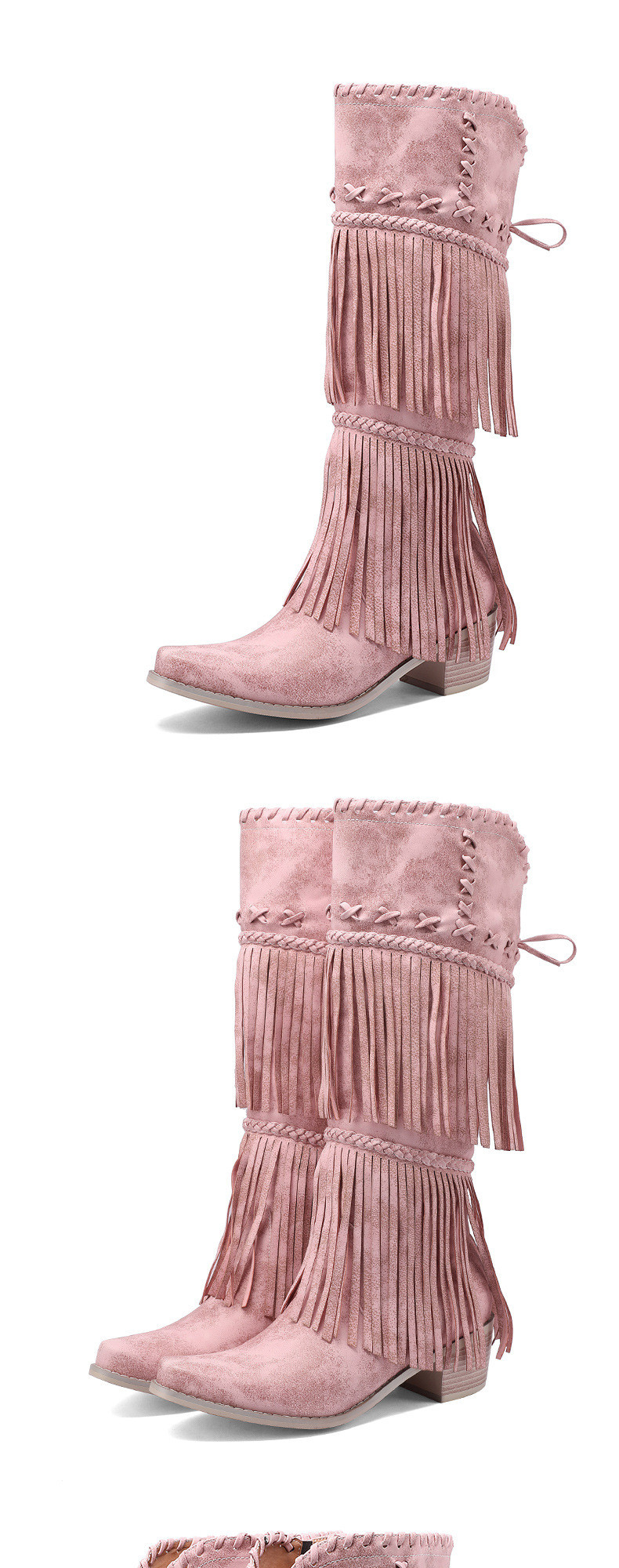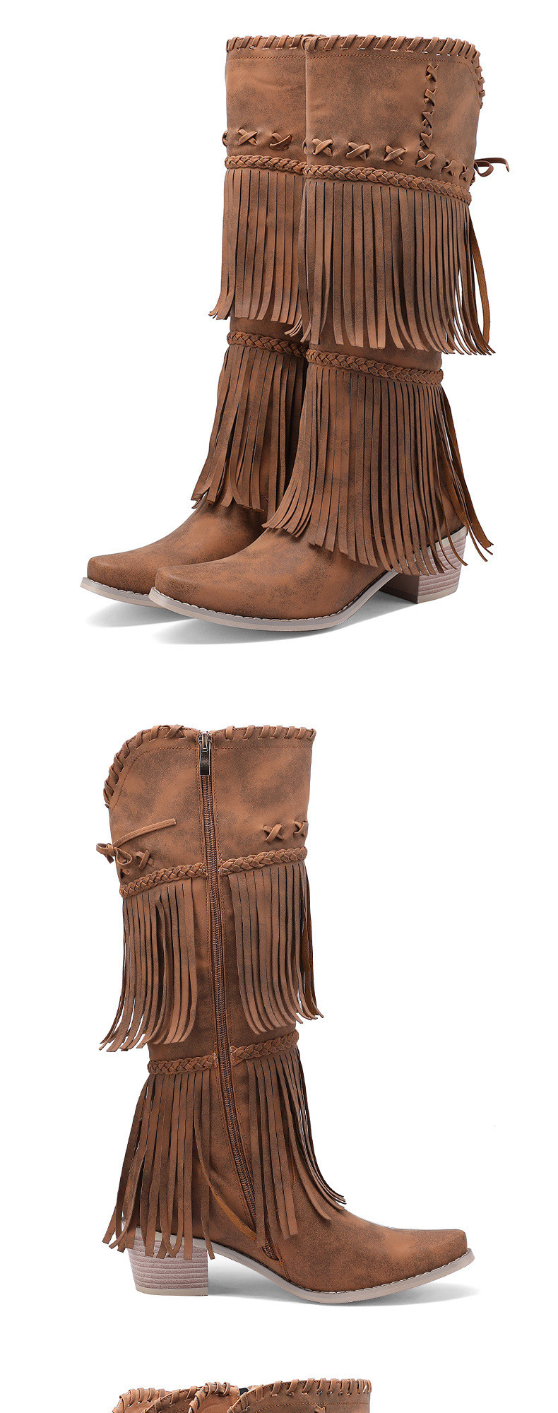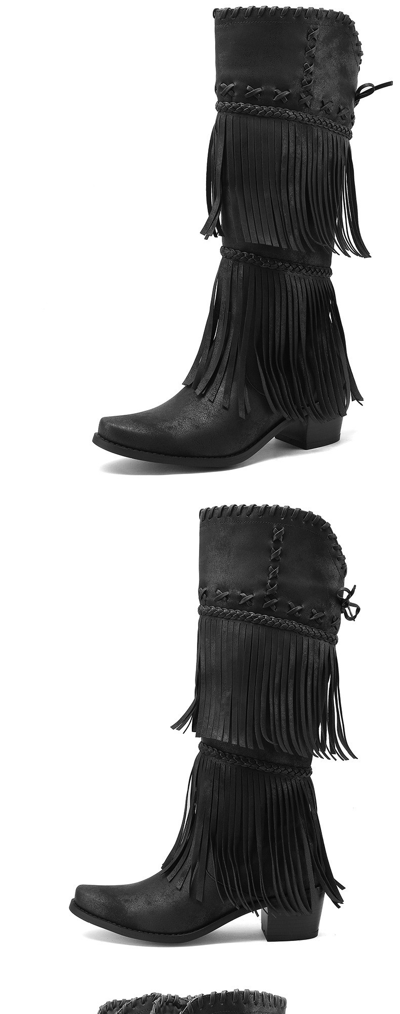 Independent Station Export European and American Style Large Size Female Knight Boots Tassel Boots Thick Heel High Boots Fashionable Western Cowboy Boots