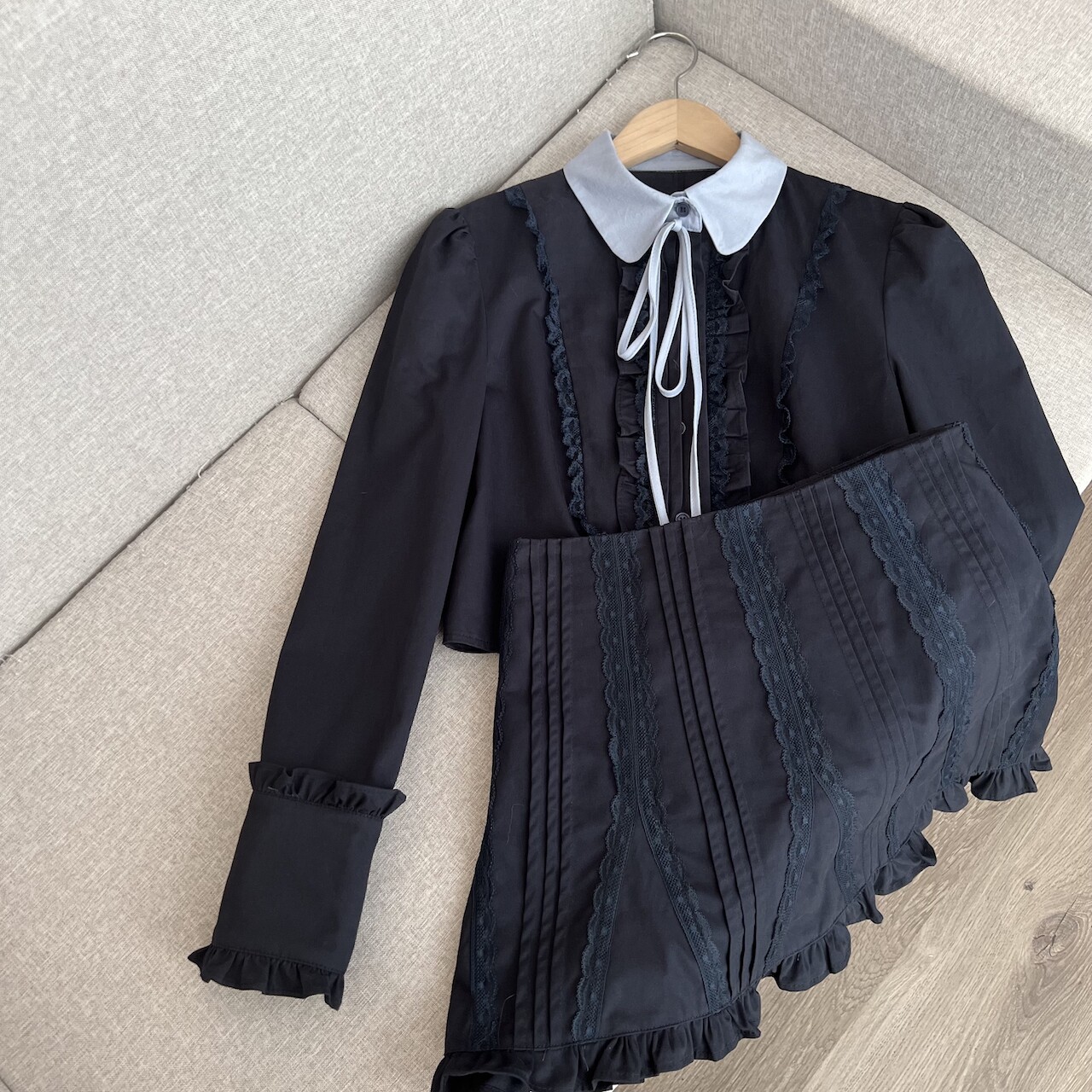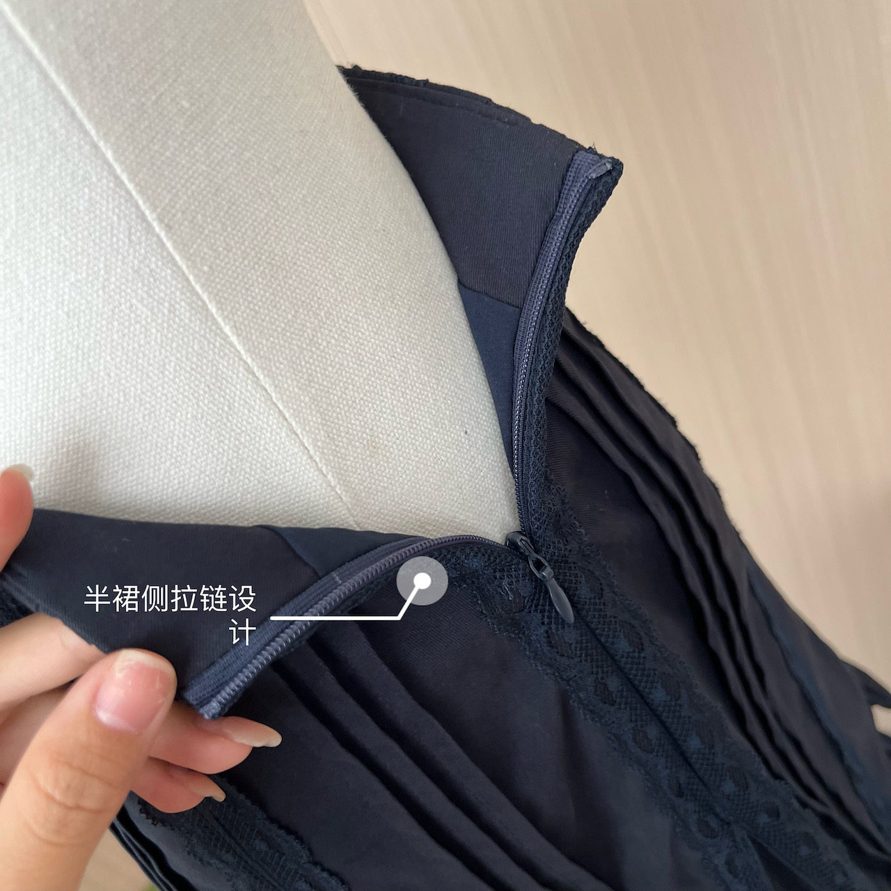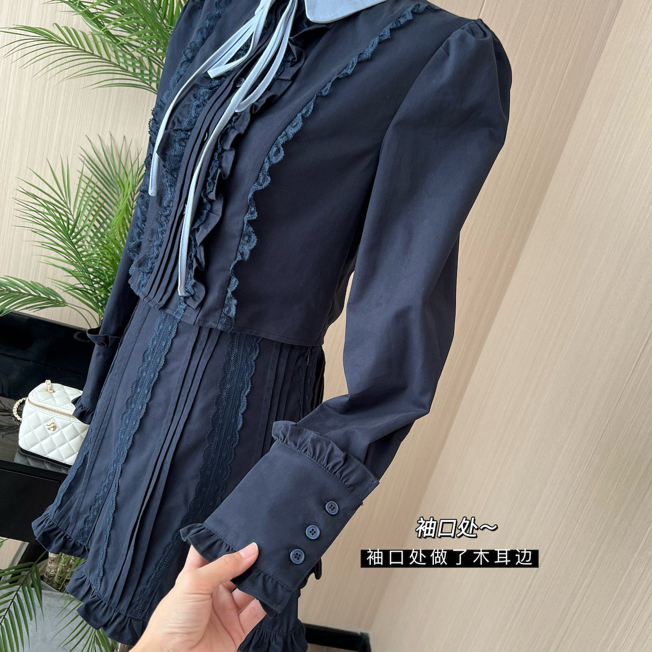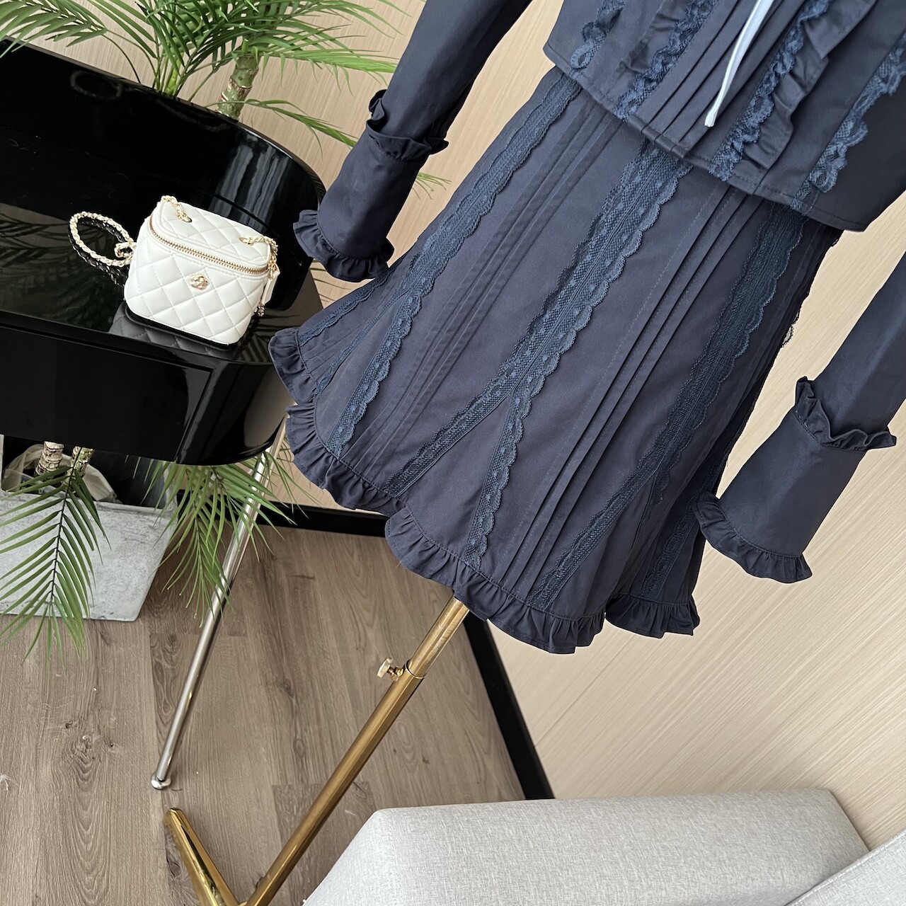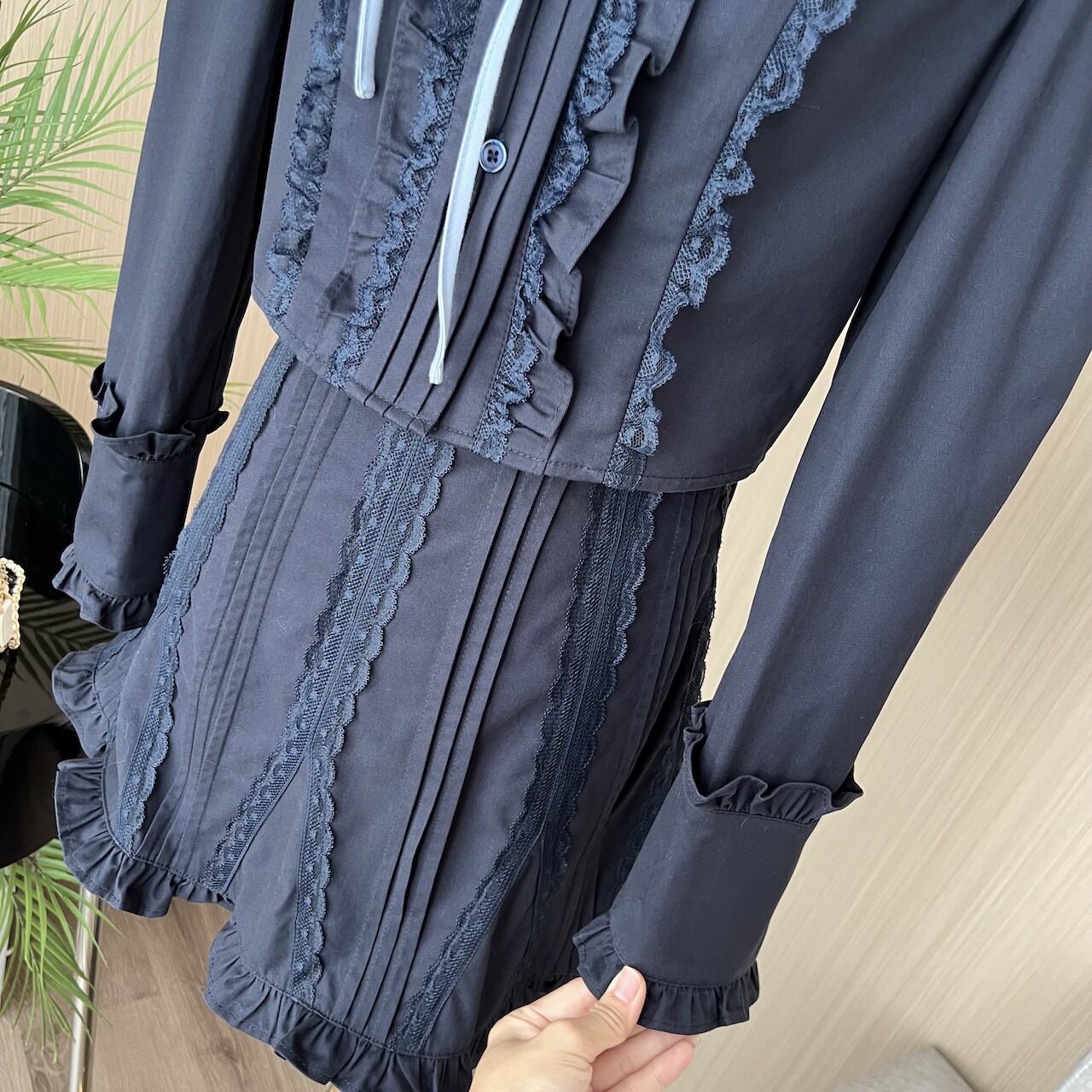 Lin Xiasha Lace Suit for Women, Two-Piece Set, Heavy-Duty Top, Navy Blue Skirt