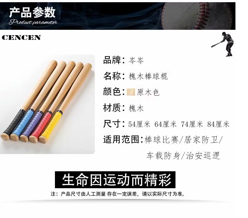 Solid Beech Wood Baseball Bat, Thickened for Self-Defense, Car-Mounted Bat, Solid Hardwood Bat, Softball Bat,