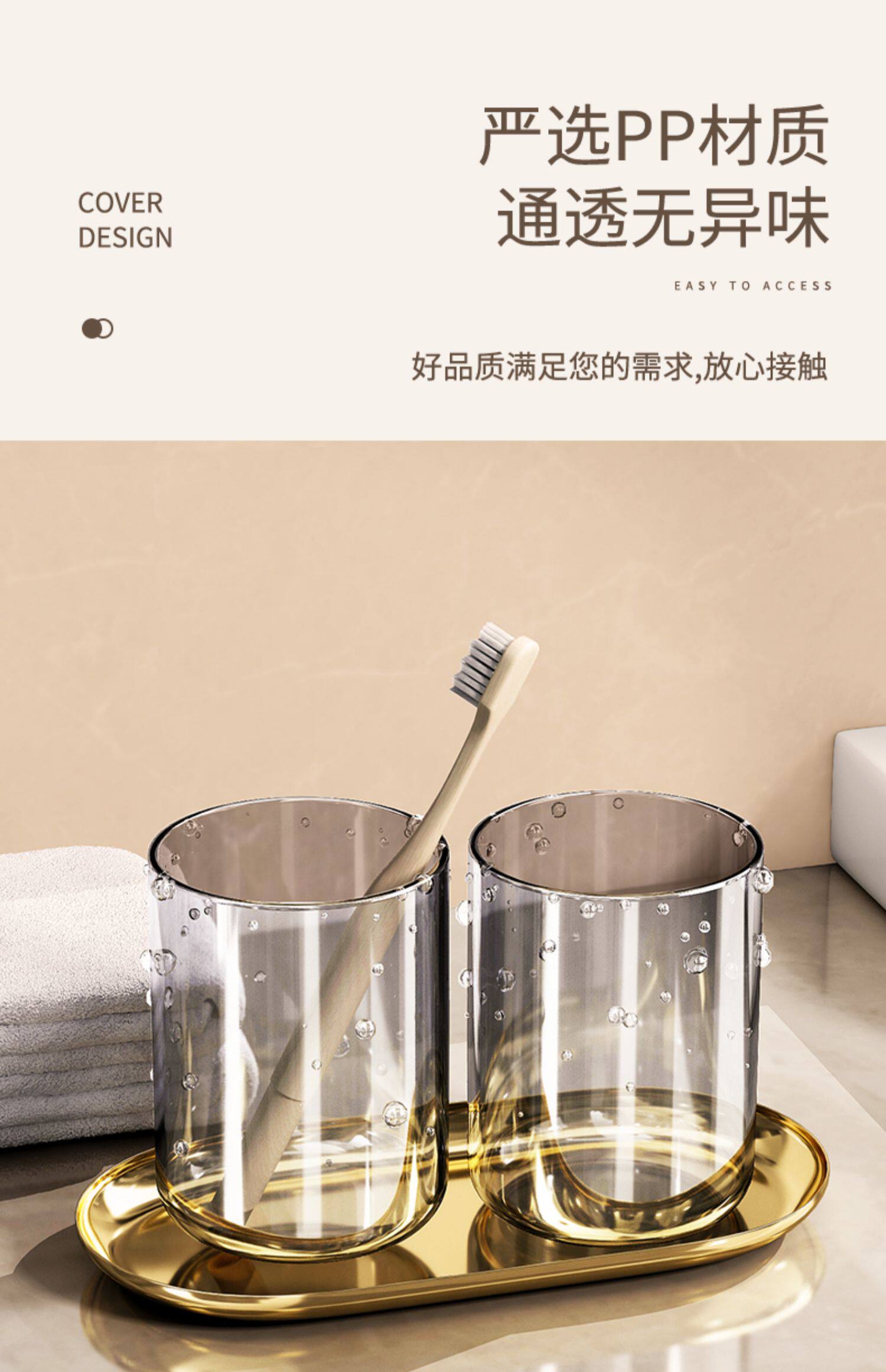 Cream-Colored Toothbrush Holder, No-Drill Wall-Mounted Bathroom Mouthwash Cup, Toothbrush Storage, Bathroom Hair Dryer Holder