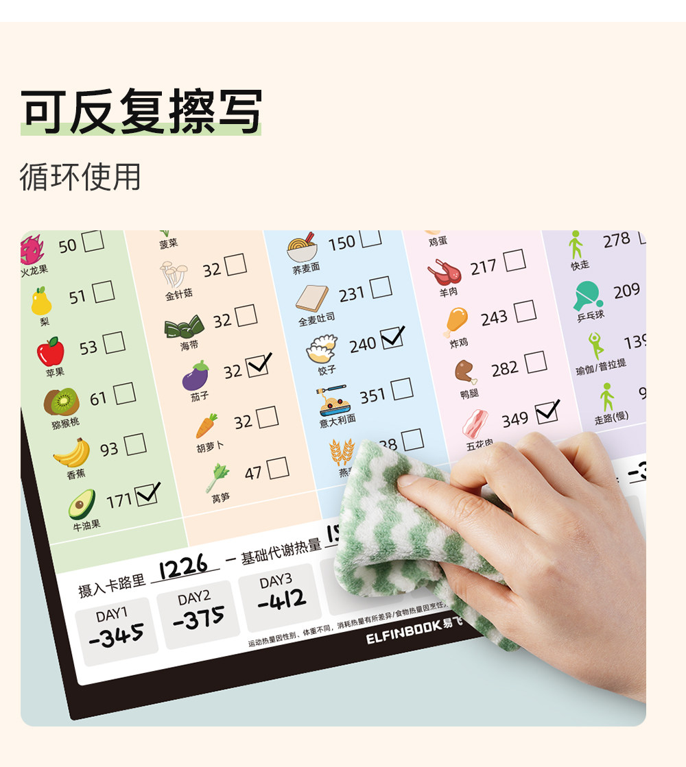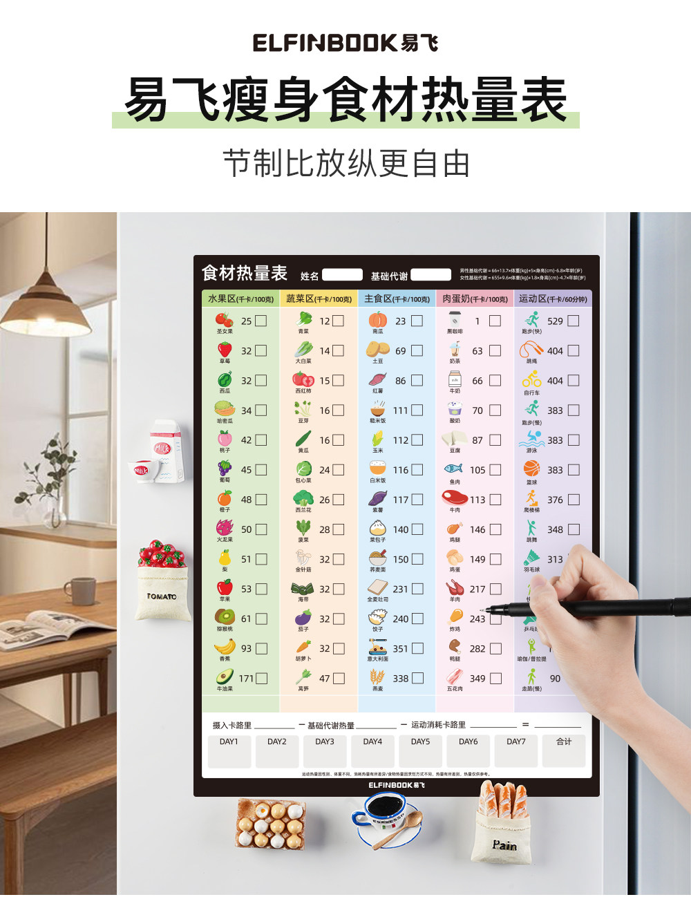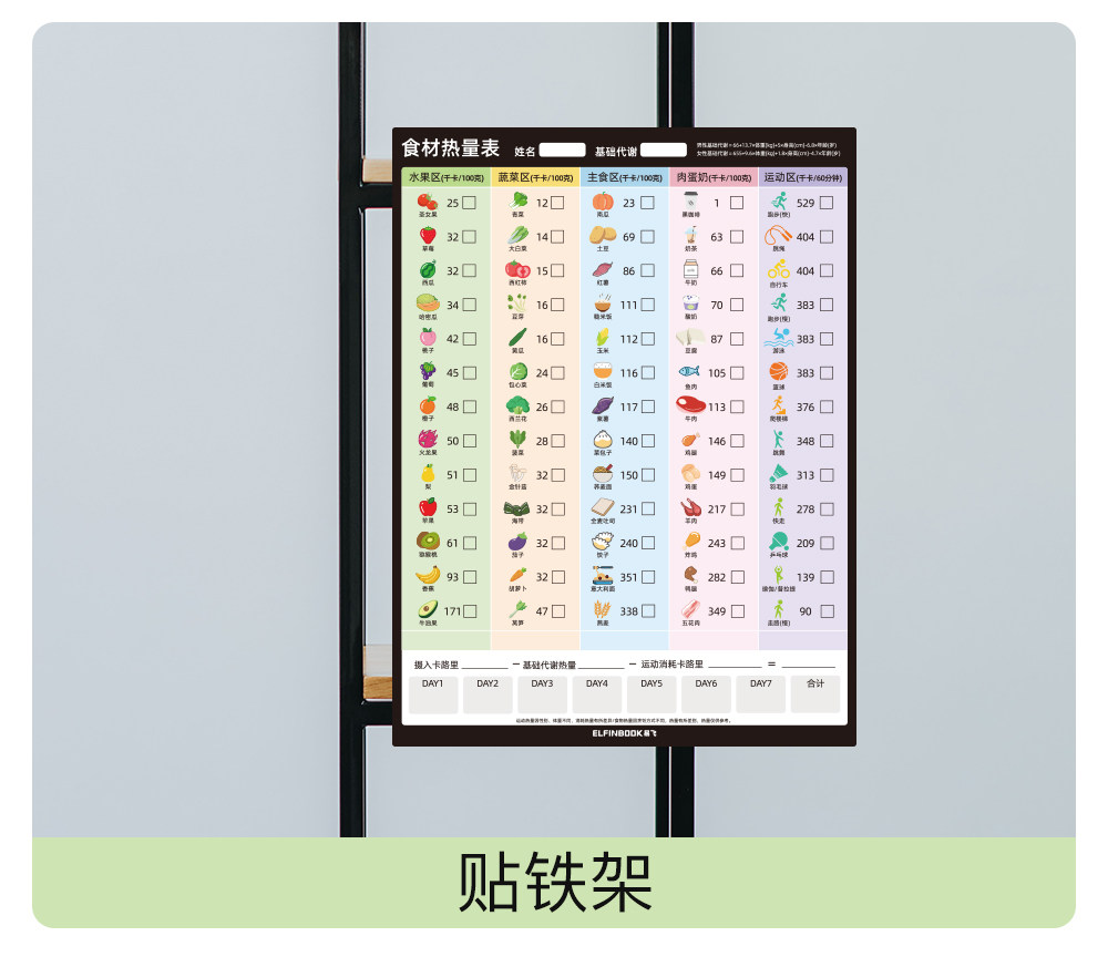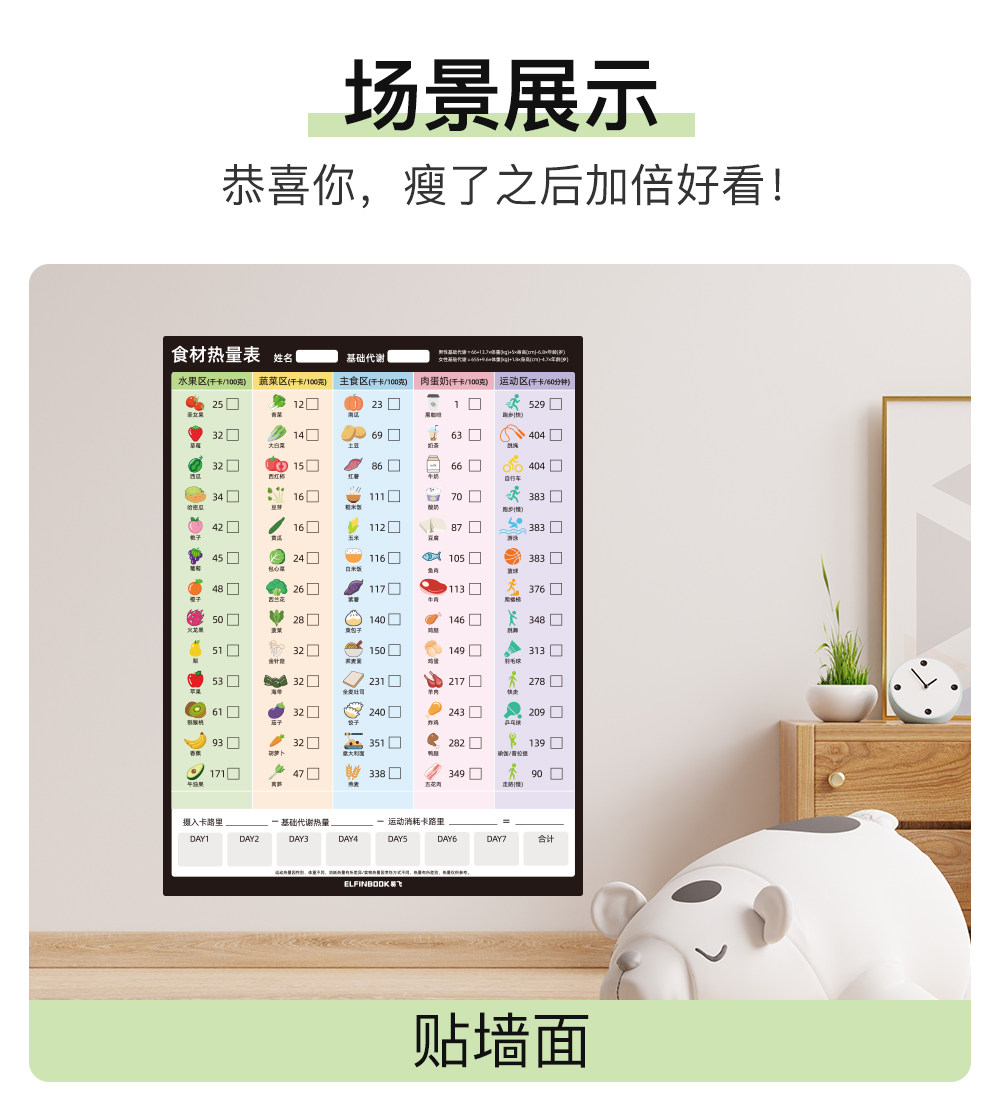 Yifei weight loss plan table refrigerator sticker food calorie table comparison table self-discipline clock weight loss artifact sports fitness wall stickers muscle gain training plan lazy slimming record book 30 days