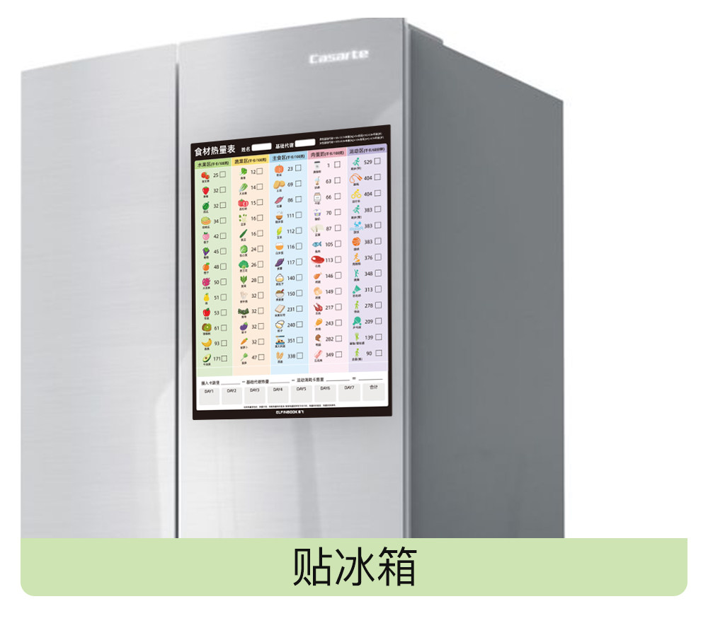 Sort by color Magnetic suction food calorie meter,Magnetic 30-day weight loss plan,Magnetic 21-day weight loss plan,Magnetic style Couple slimming plan