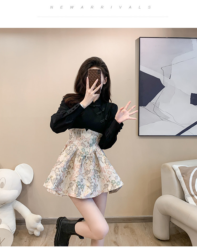 Autumn Long-Sleeved High-End Dress for Women, Retro Elegant Ladylike French Style Stunning Floral Dress, Chanel-Style Dress