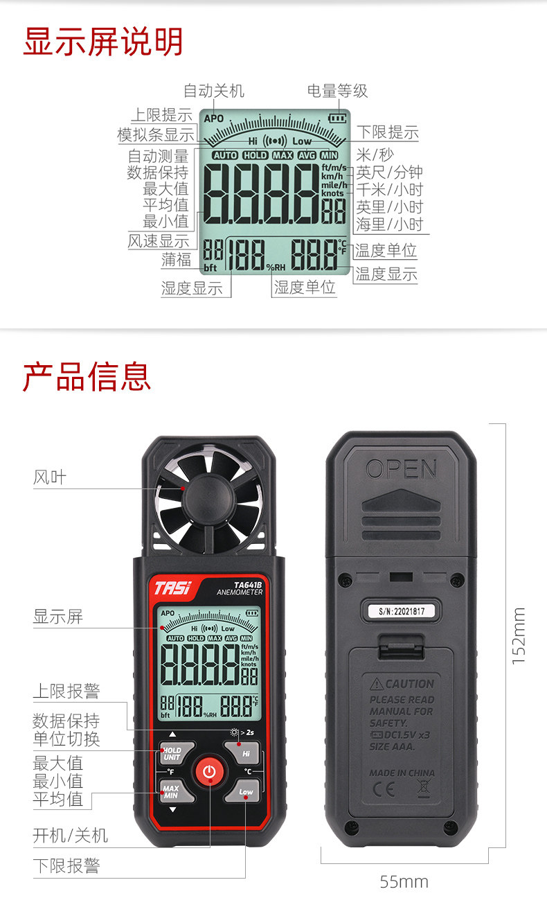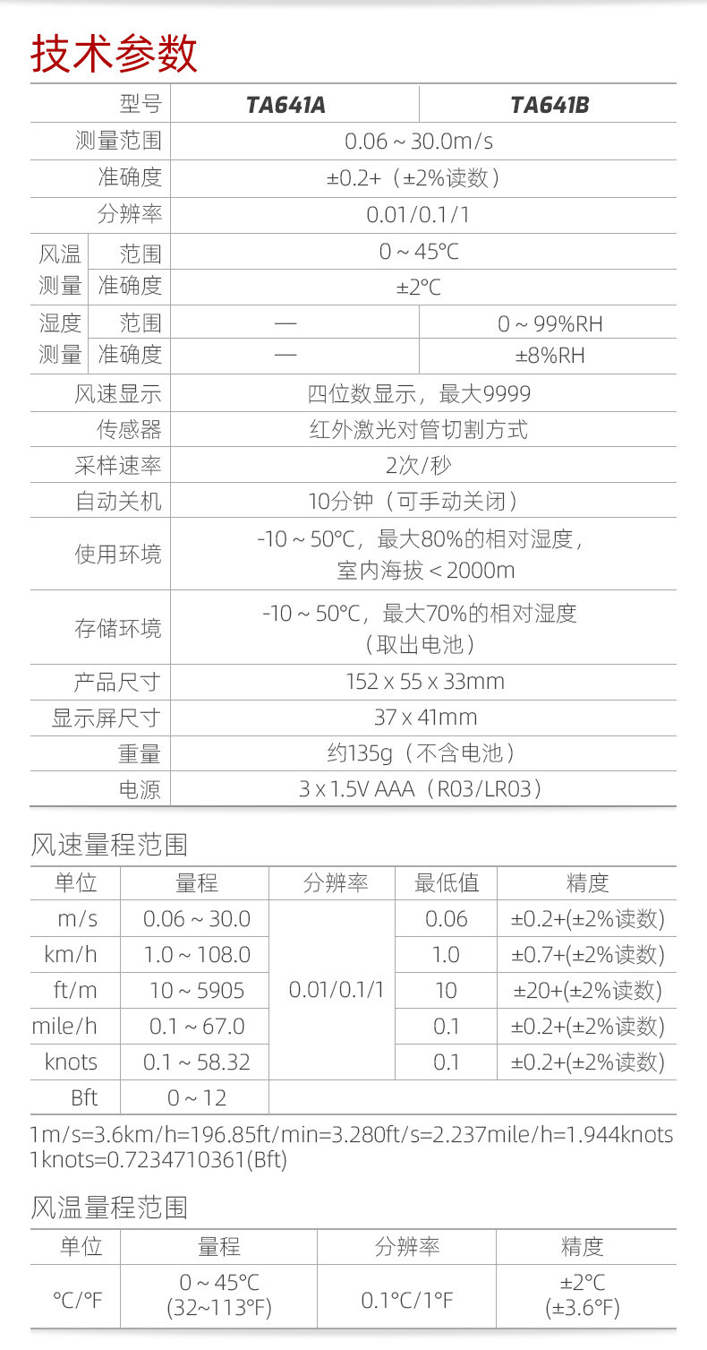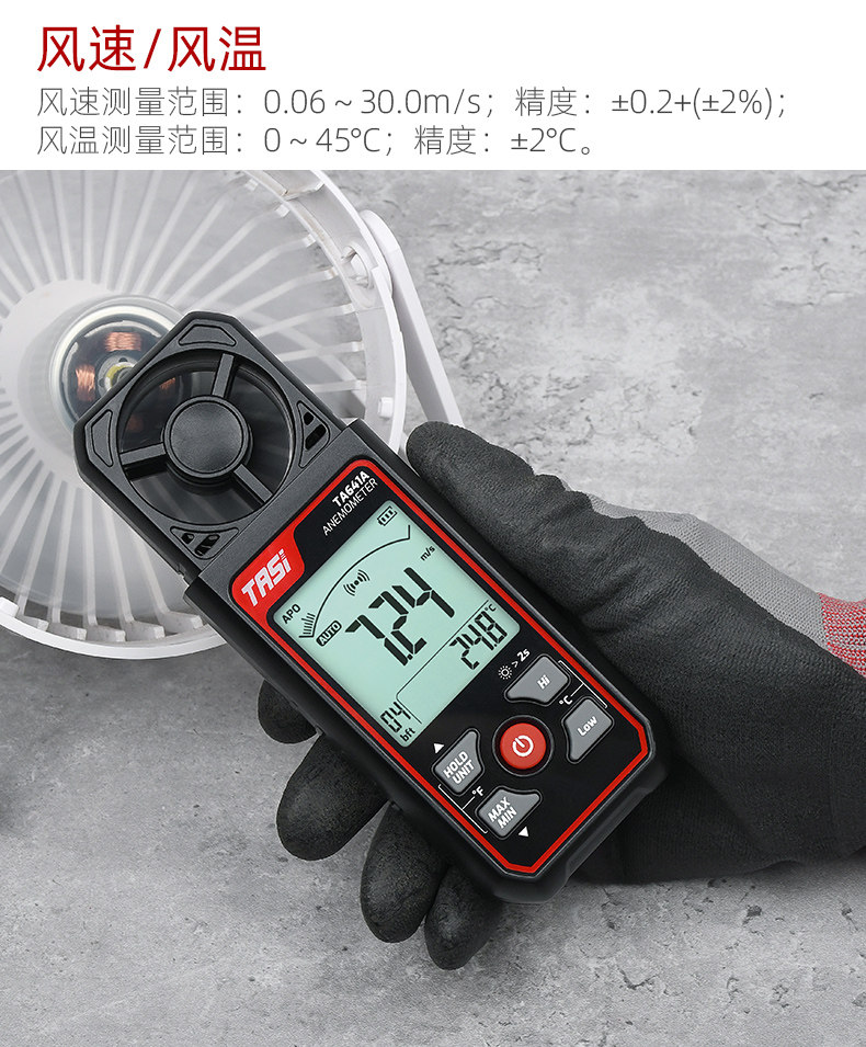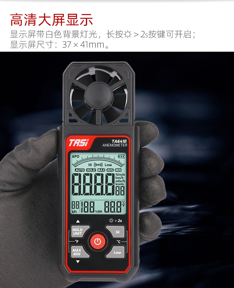 Te'Ans Ta641A/B Handheld Digital Wind Speedometer Air Flow Rate Measuring Instrument Weather Sea Surface Wind