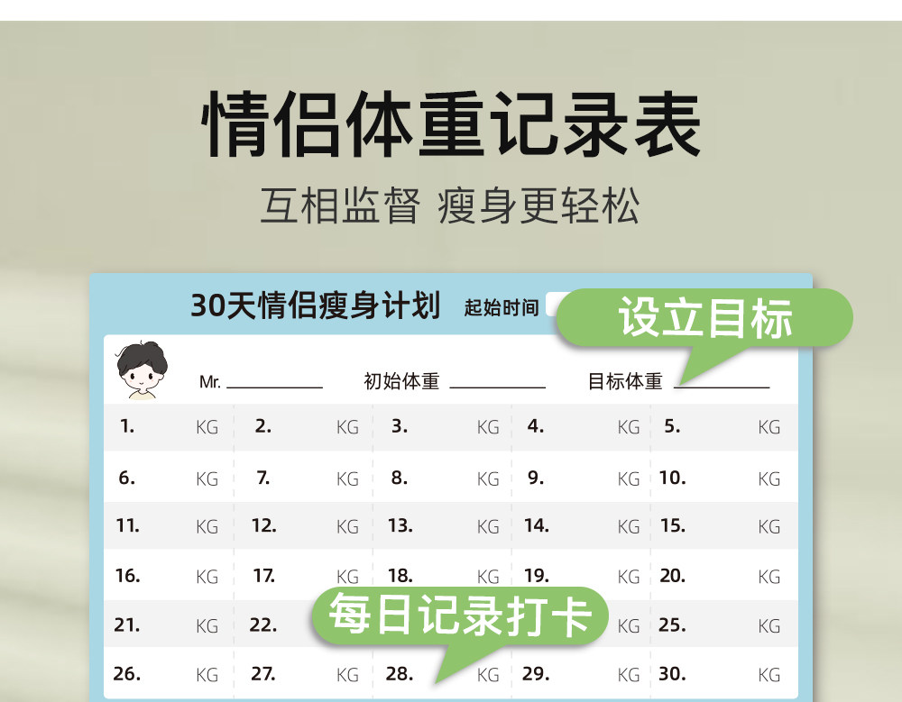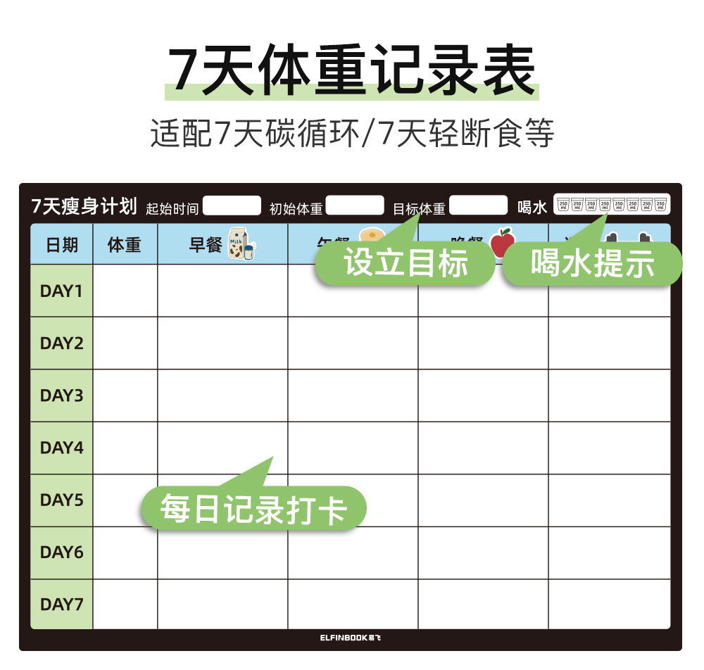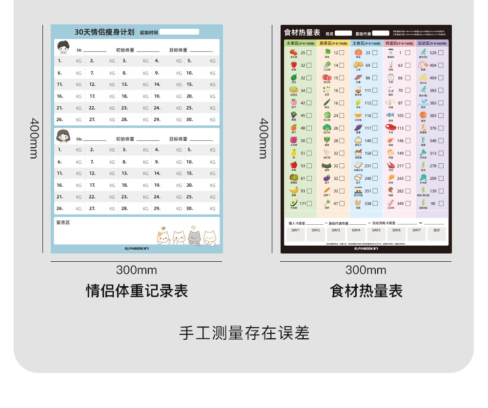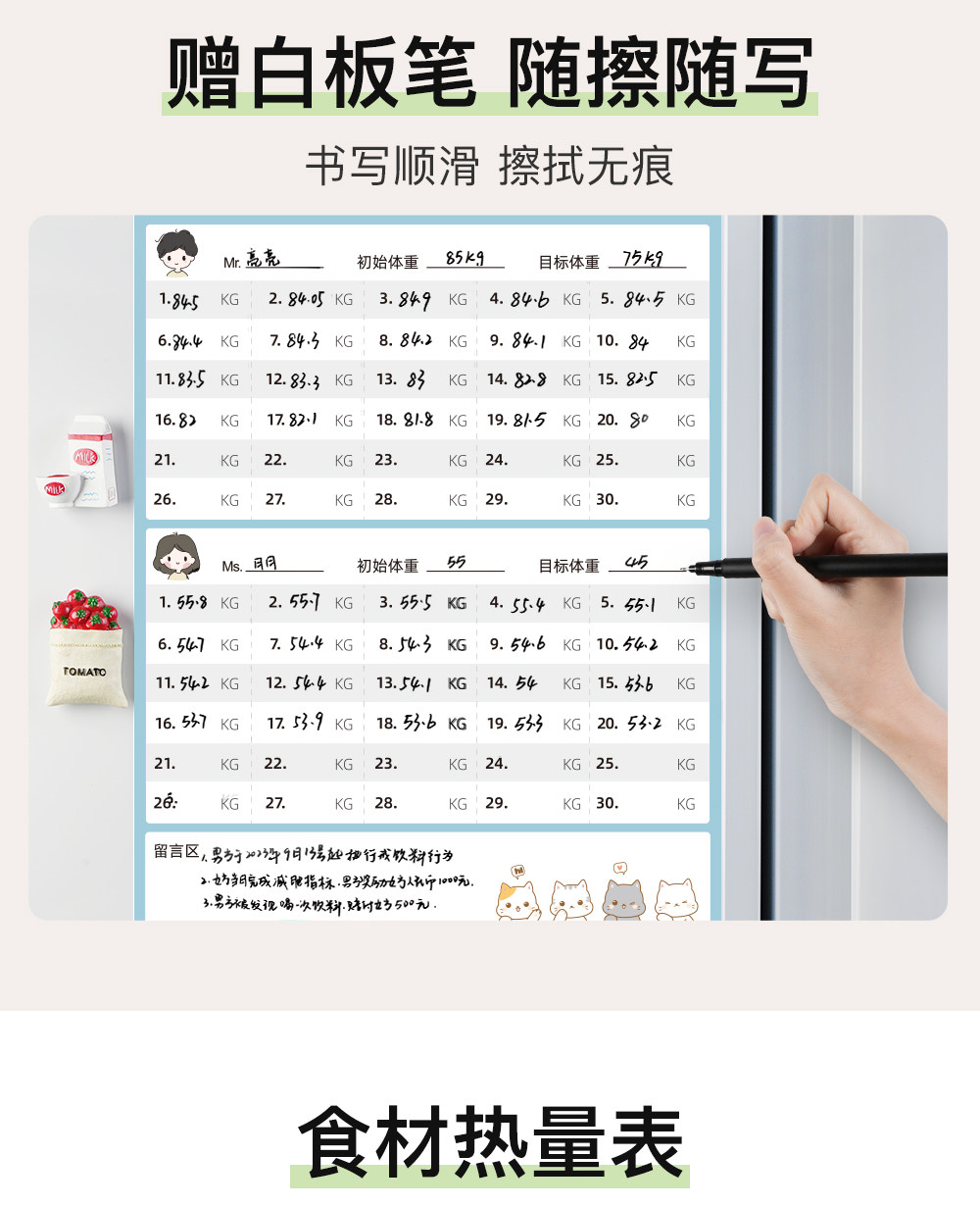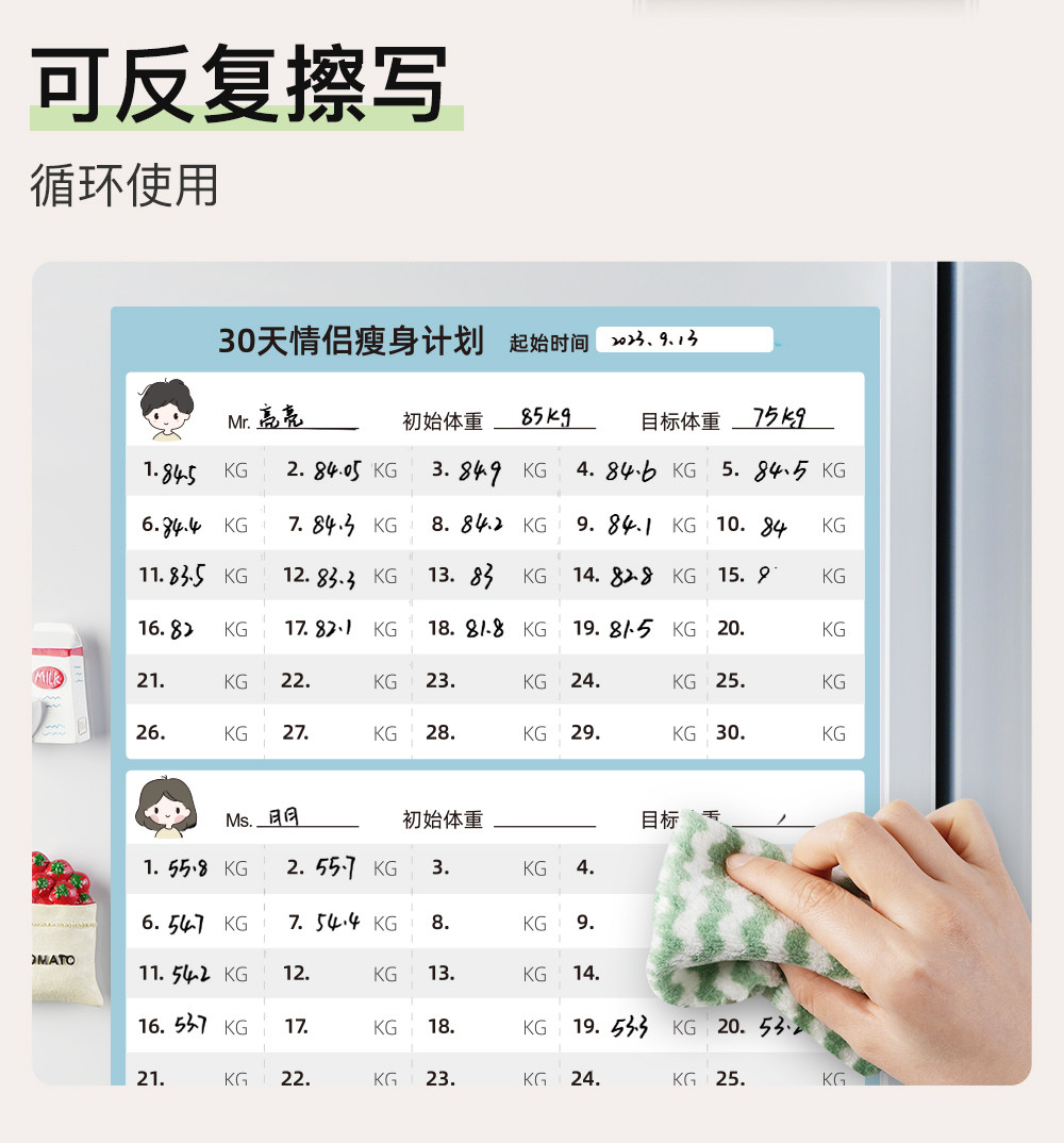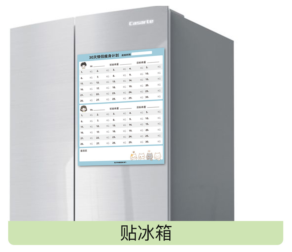 Yifei Couple Refrigerator Magnet Weight Loss Plan Table Food Calorie Table Self-Discipline Table Check-in Artifact Plan Weight Loss Record