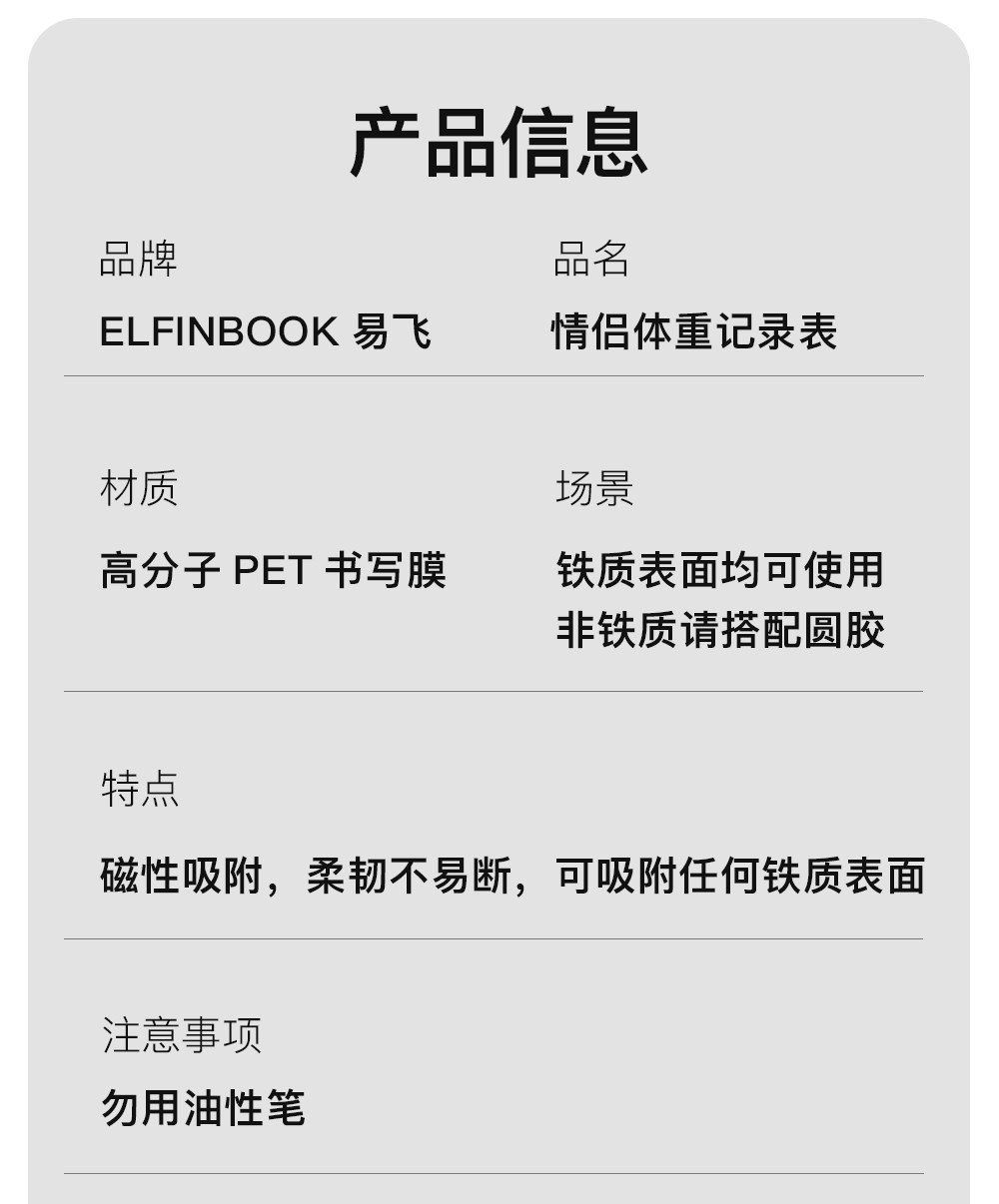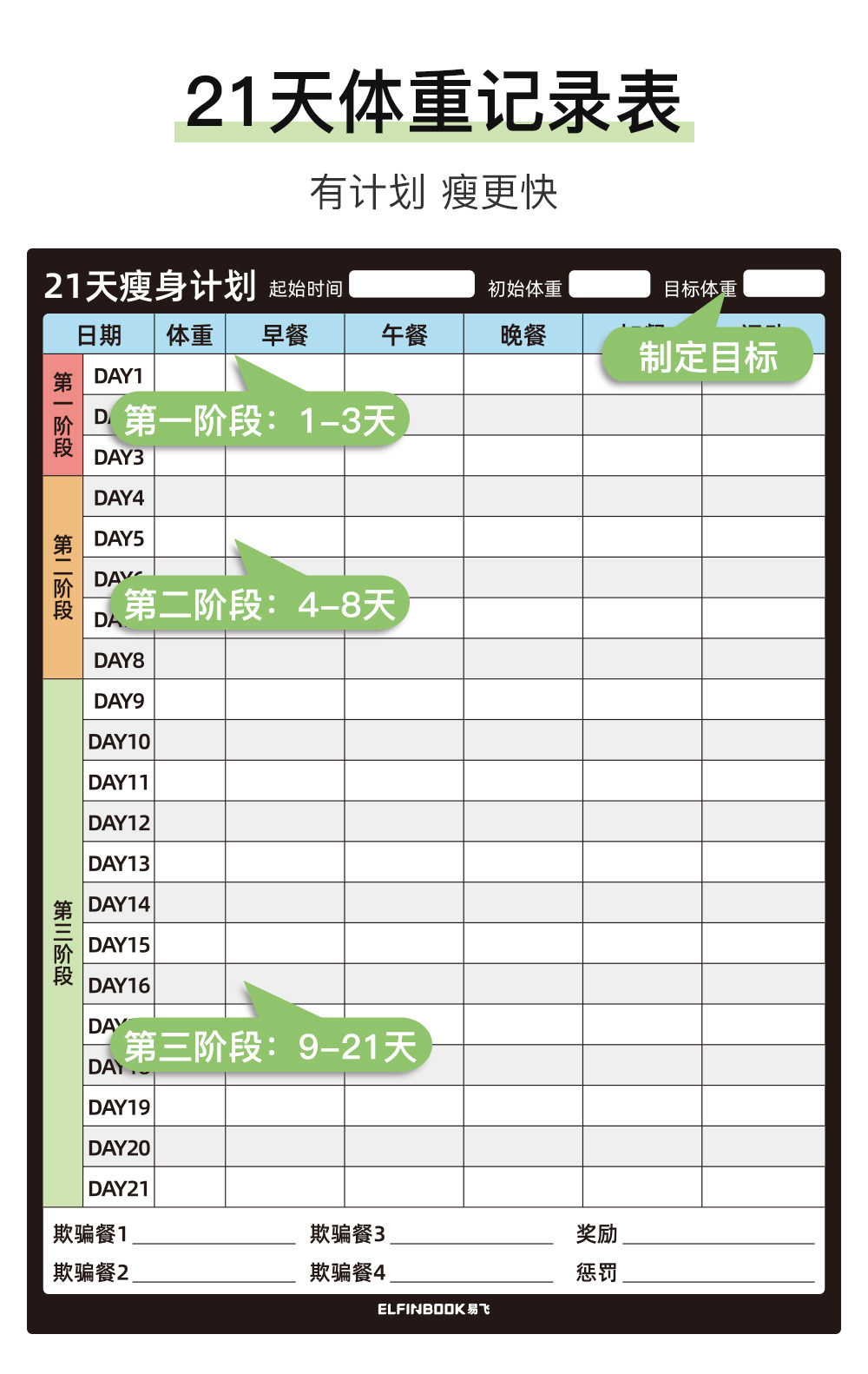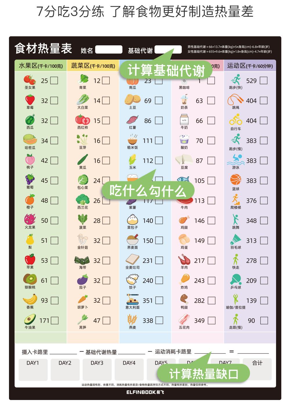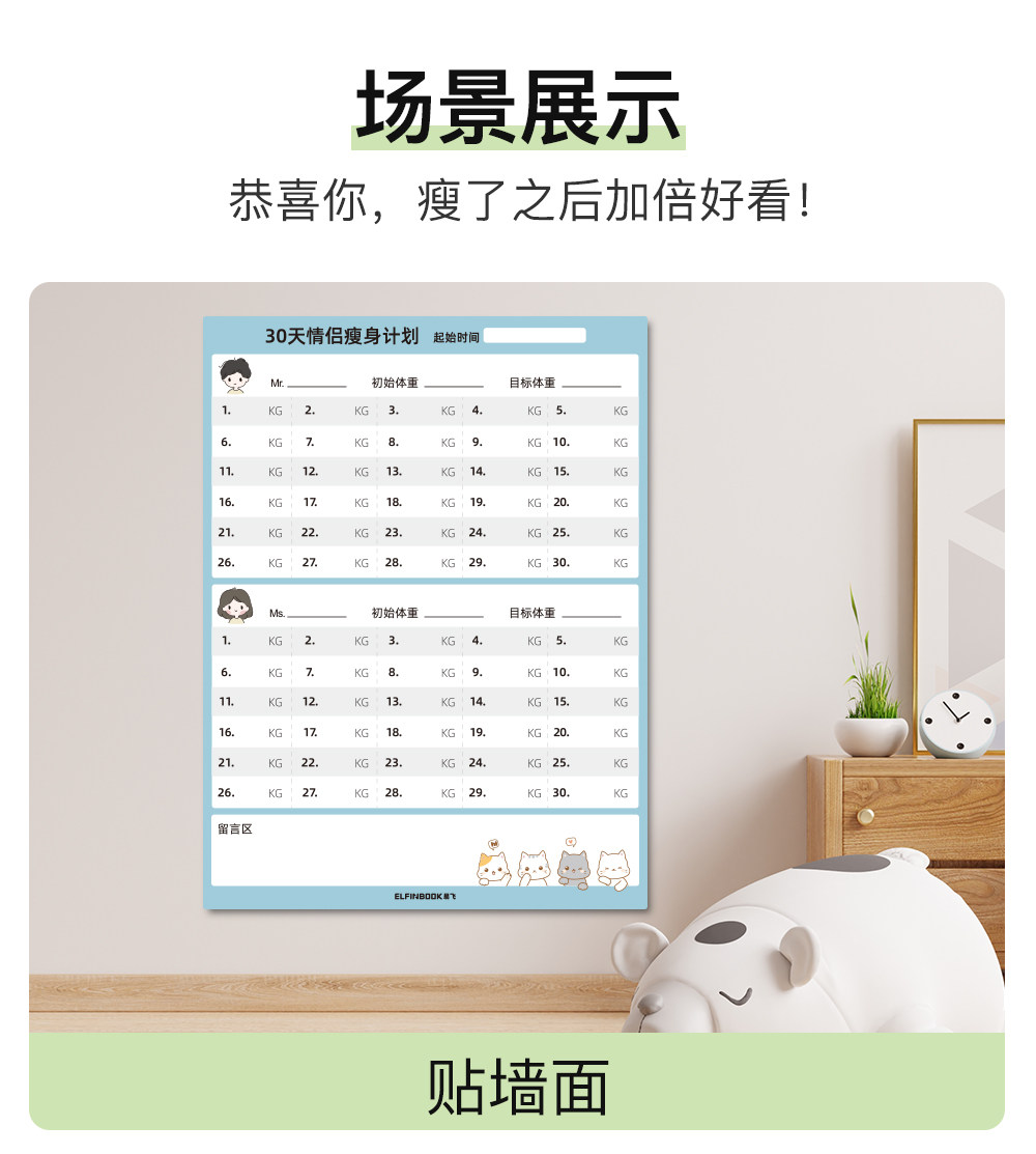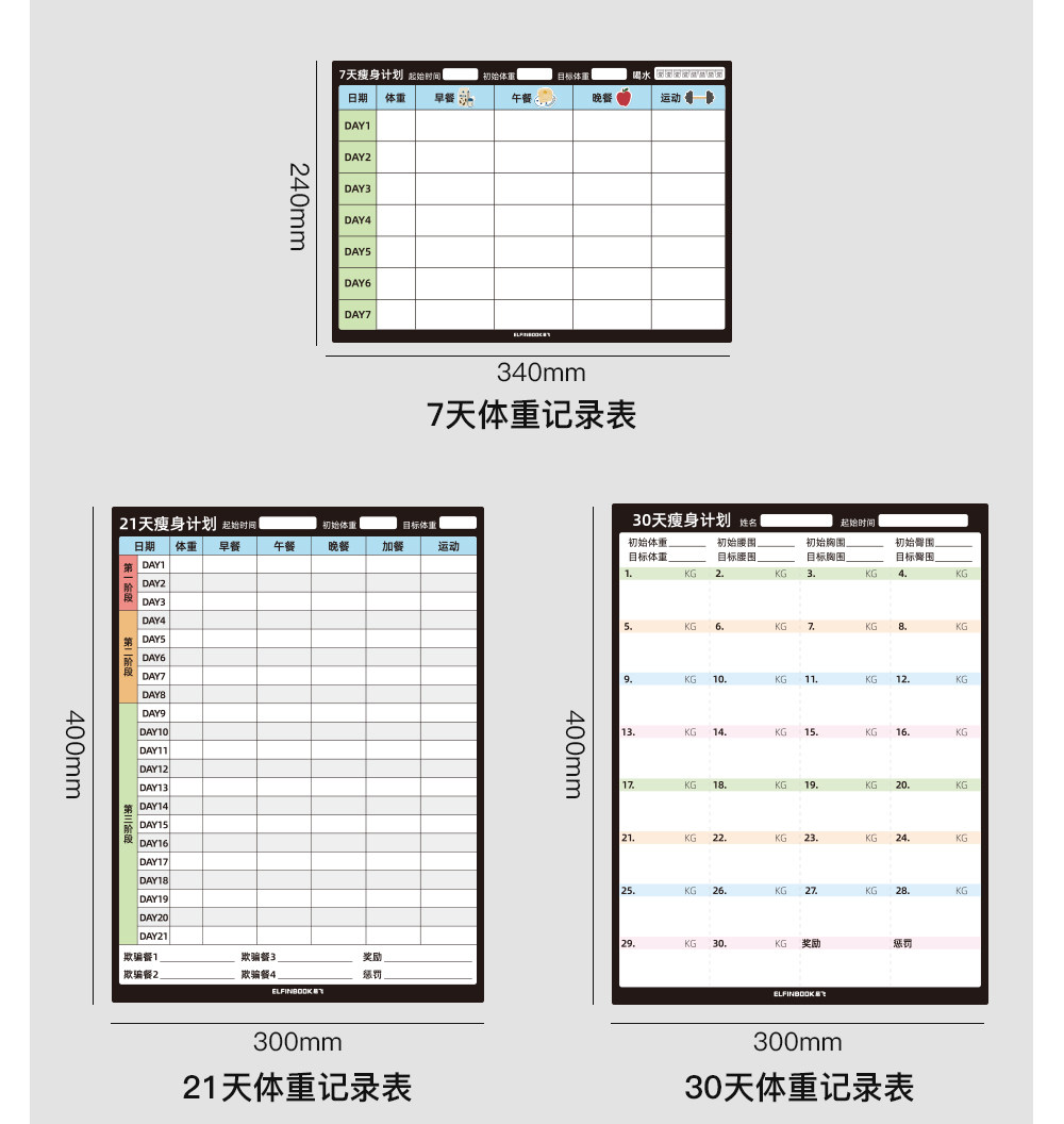 Yifei Couple Refrigerator Magnet Weight Loss Plan Table Food Calorie Table Self-Discipline Table Check-in Artifact Plan Weight Loss Record