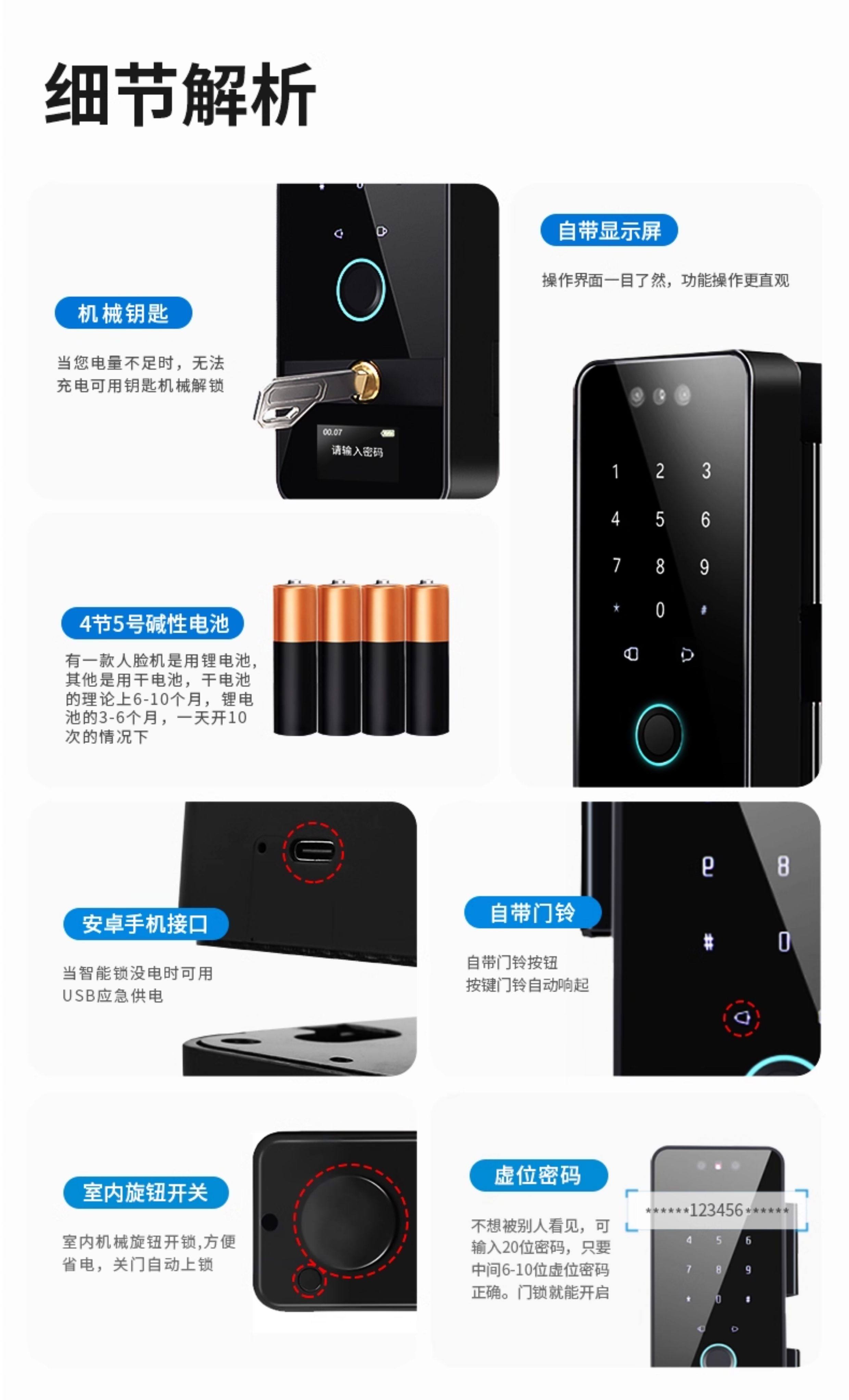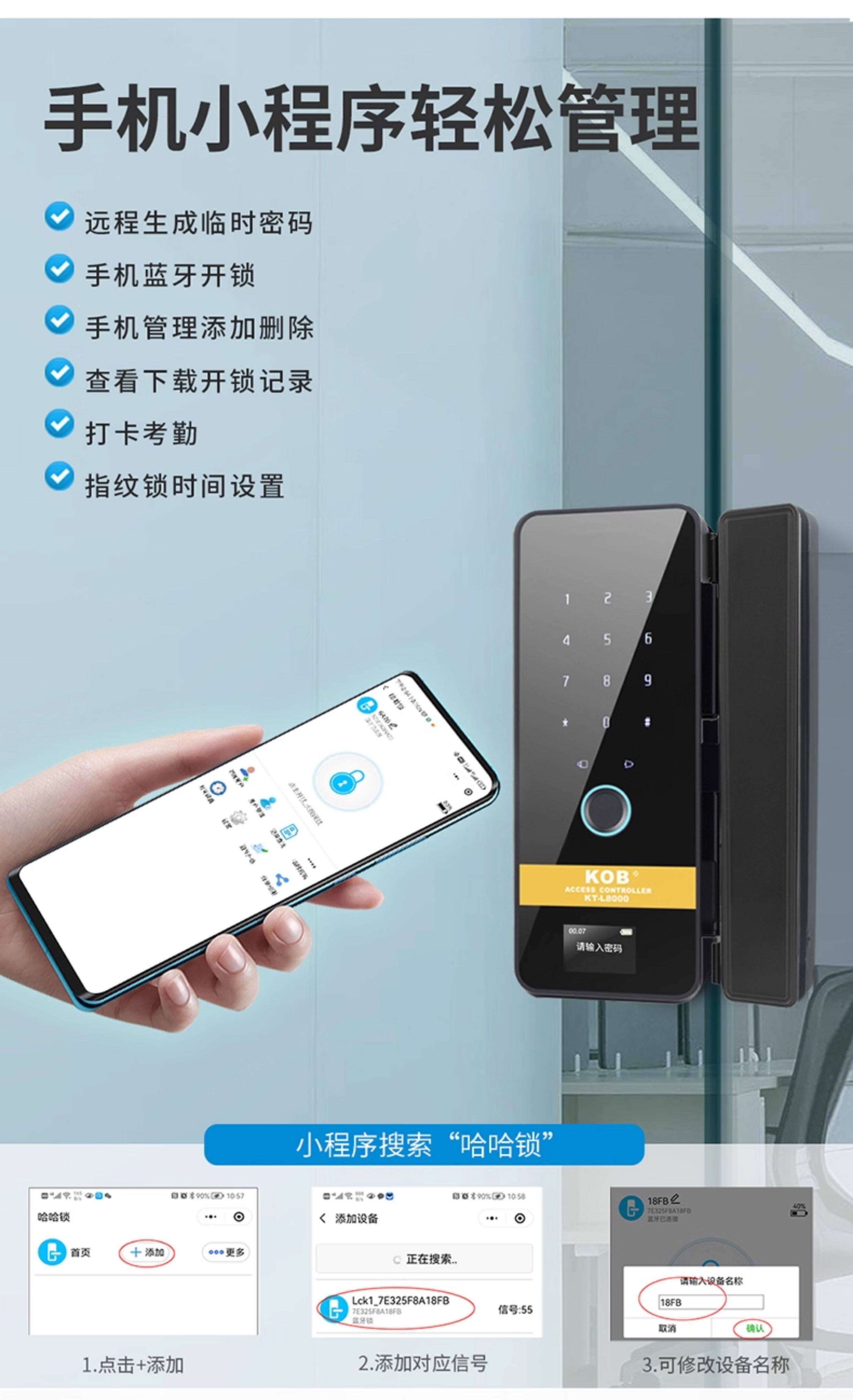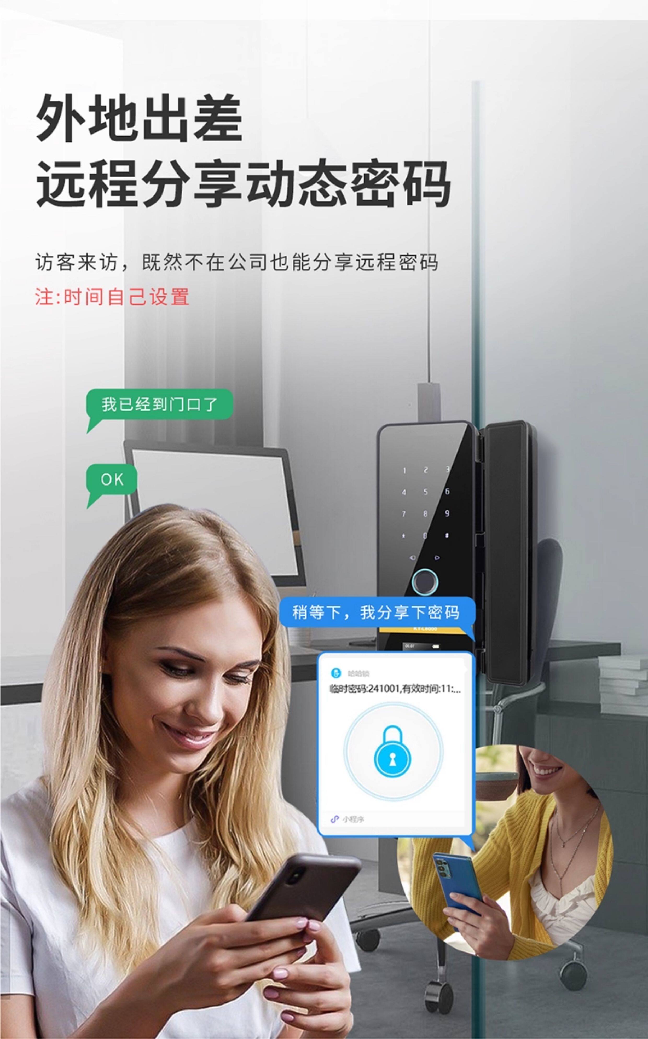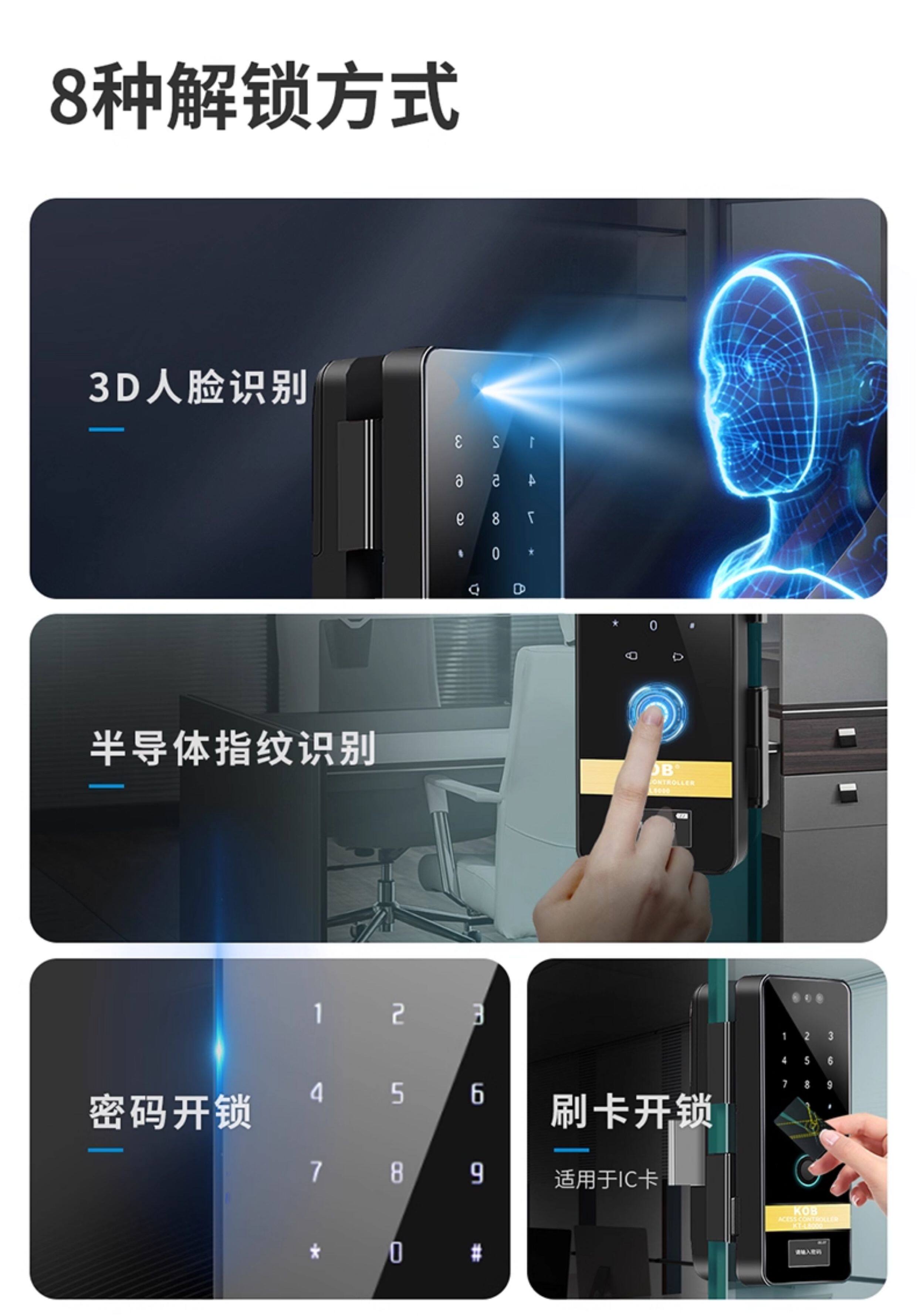 Glass Door Fingerprint Lock, Face Recognition Smart Lock, No-Drill Installation, Framed or Frameless, Single or Double Door, Office Password Lock