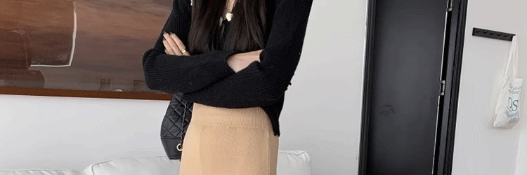 Autumn and Winter French Retro Slit Knit Skirt Women's High-End Elegant Slimming Woolen High-Waisted Hip-Hugging Long Skirt