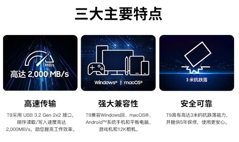 Samsung T9 Mobile Solid-State Drive 1t 2t 4t Usb3.2 External Pssd Suitable for Computers, Android Tablets and Mobile Phones