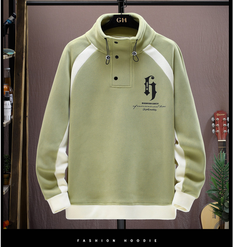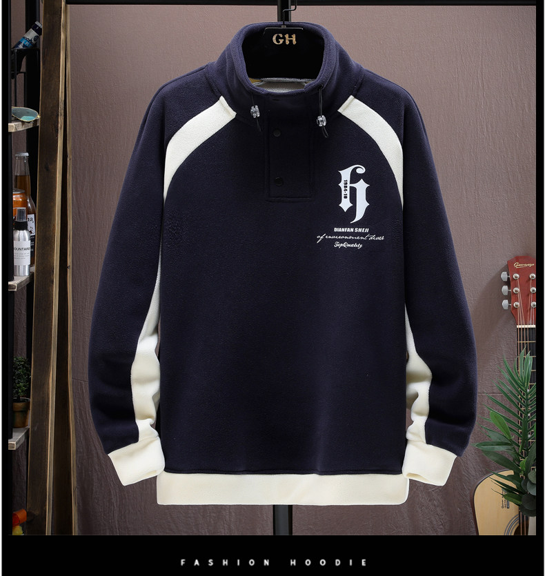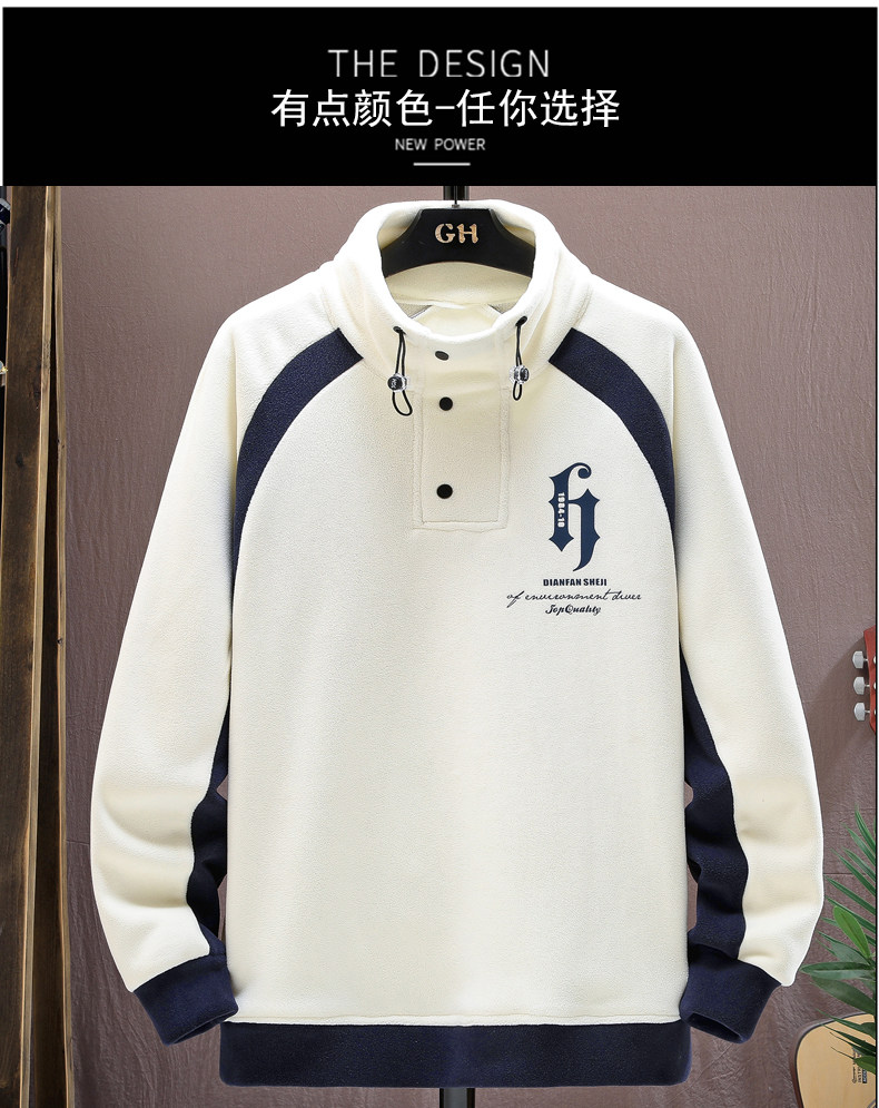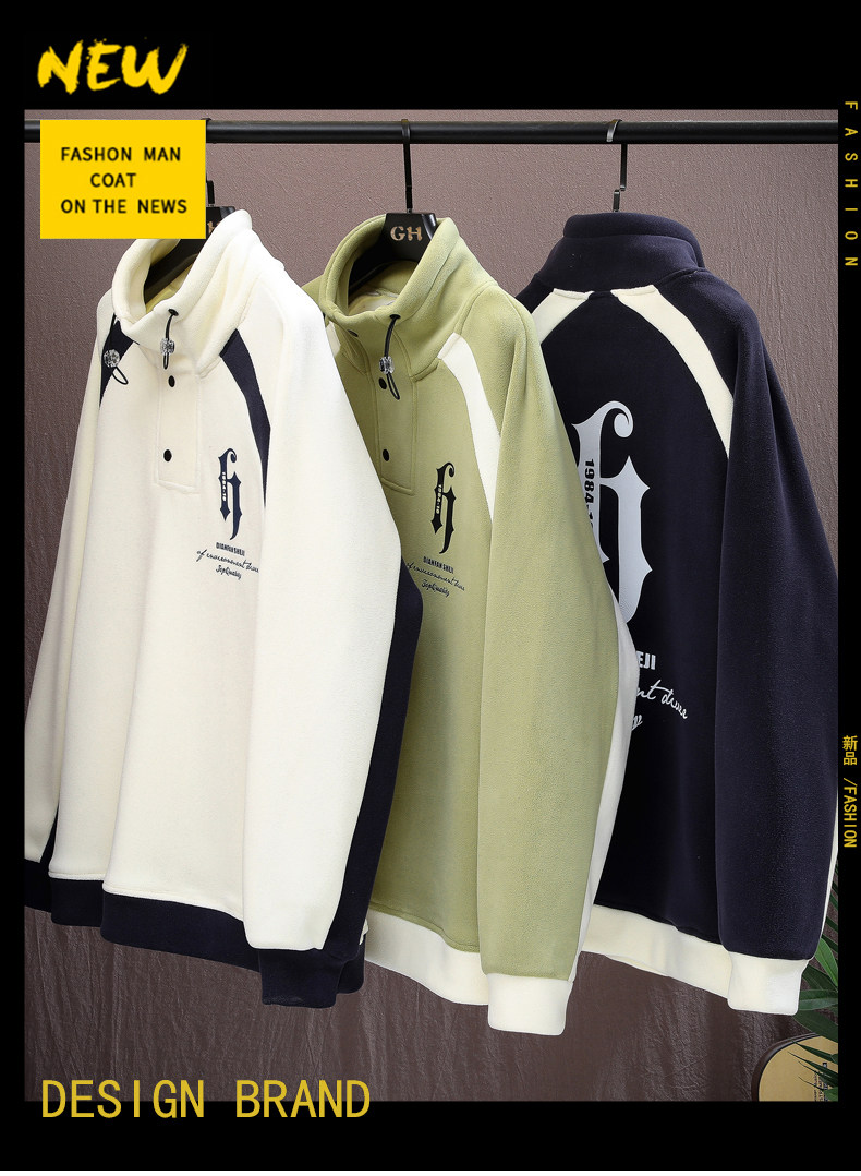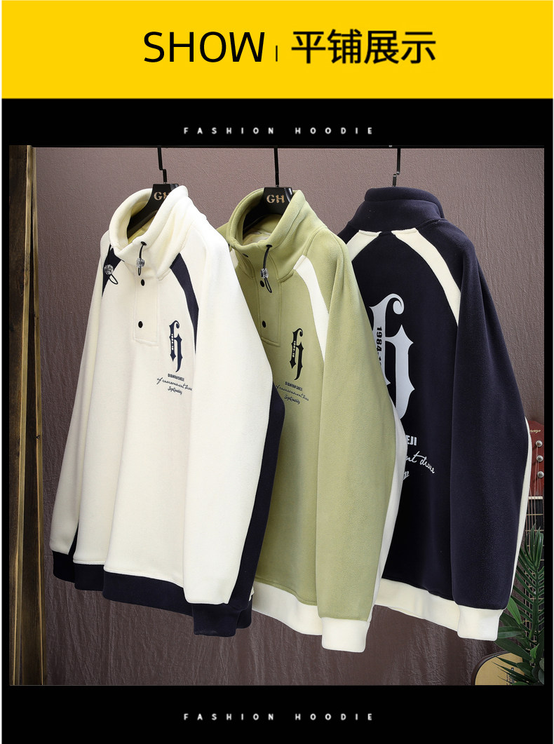 Ollie Fleece Sweatshirt for Men, New Autumn and Winter Style, Loose Fit, Trendy Round Neck, Fleece-Lined, Thickened, Double-Sided Fleece Base Layer, Warm Top