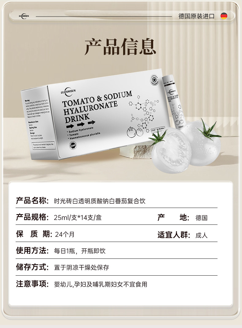 Germany imported LUOSHISEN ice crystal tomato sodium hyaluronate brightening drink to remove yellow, fade and whiten