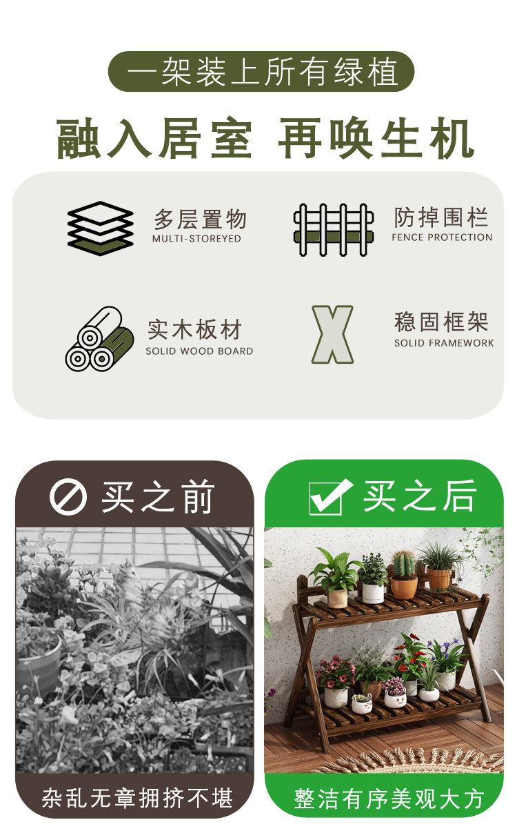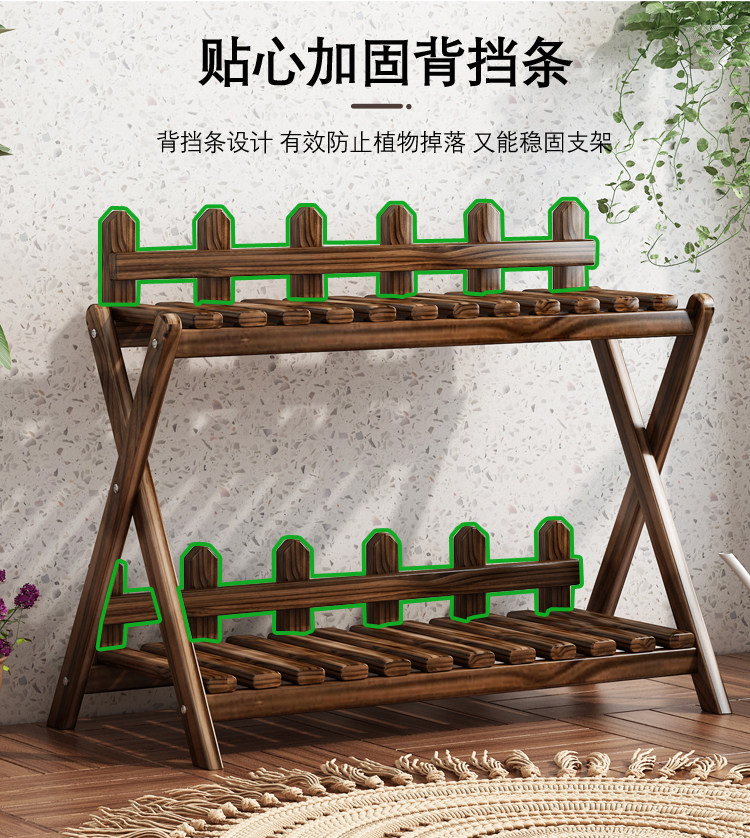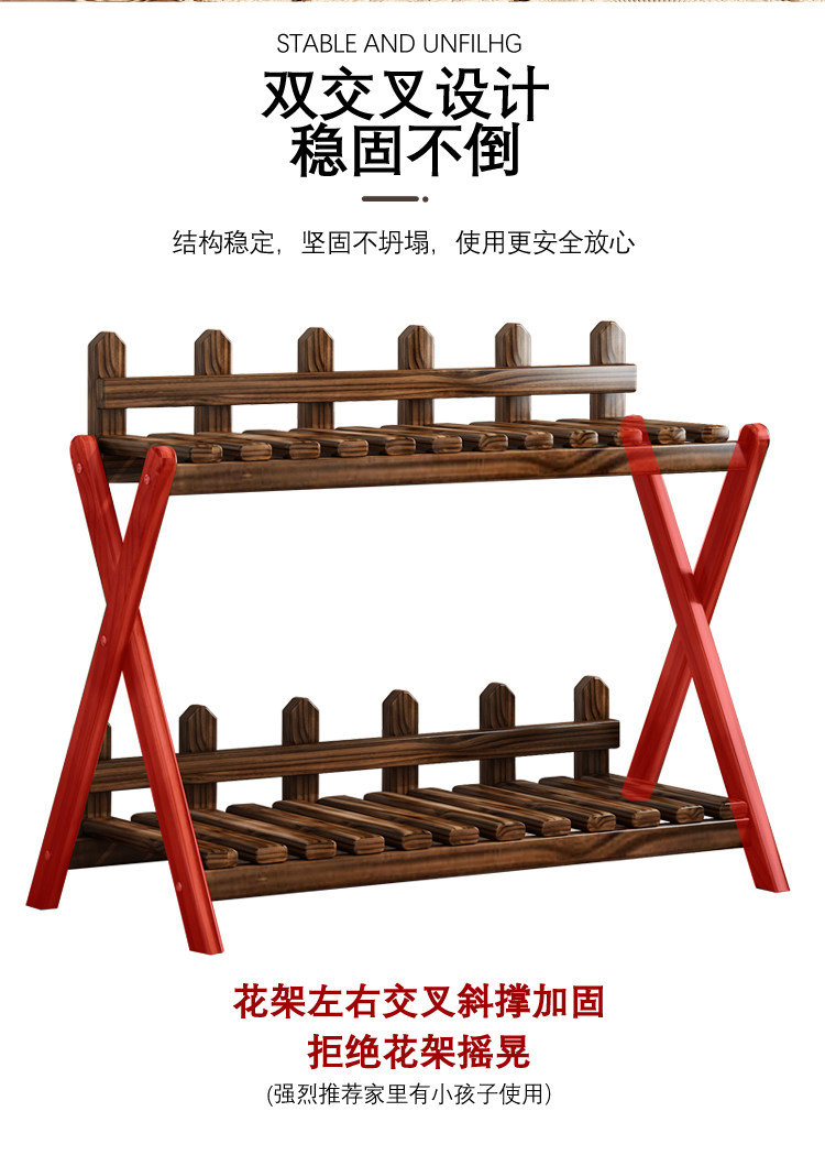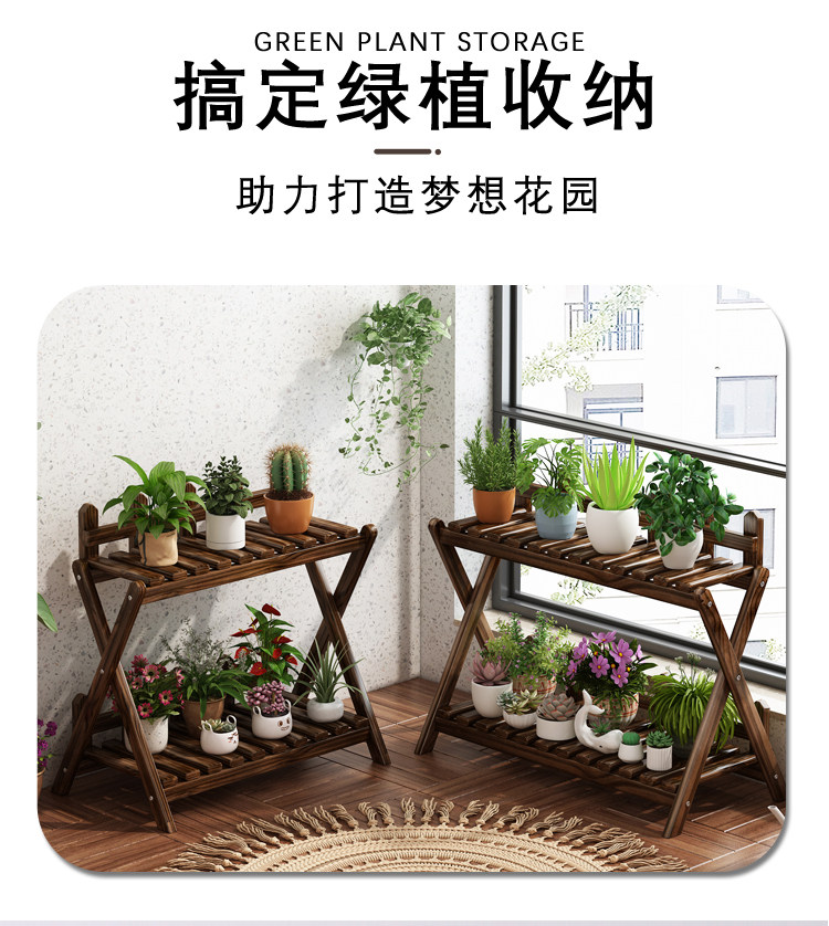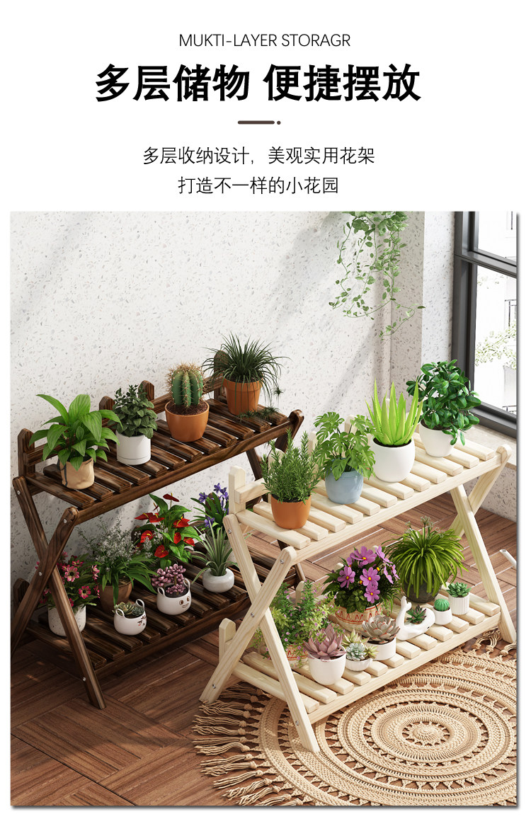 Solid Wood Small Flower Stand Multi-Layer Cross-Shaped Storage Rack Indoor Living Room Balcony Flower Stand Floor-Standing Storage Flower Rack