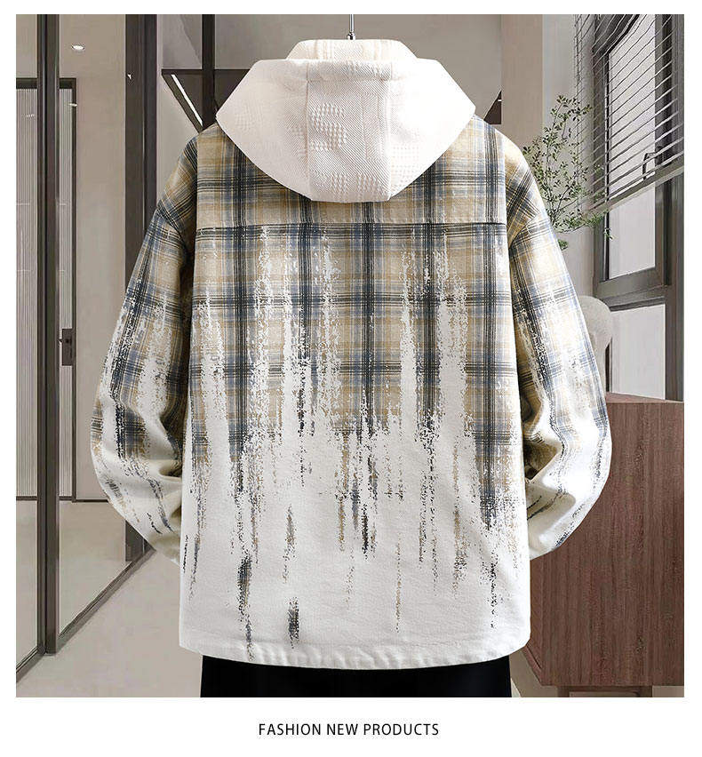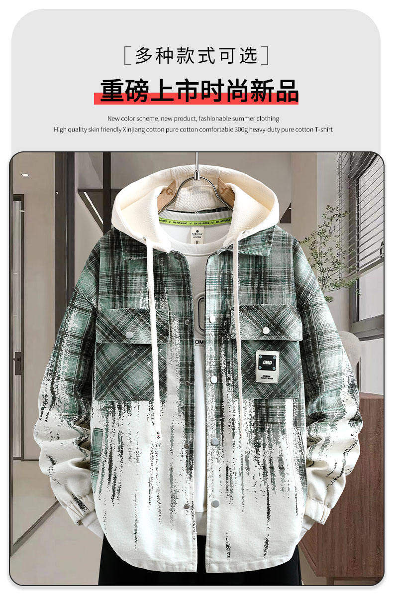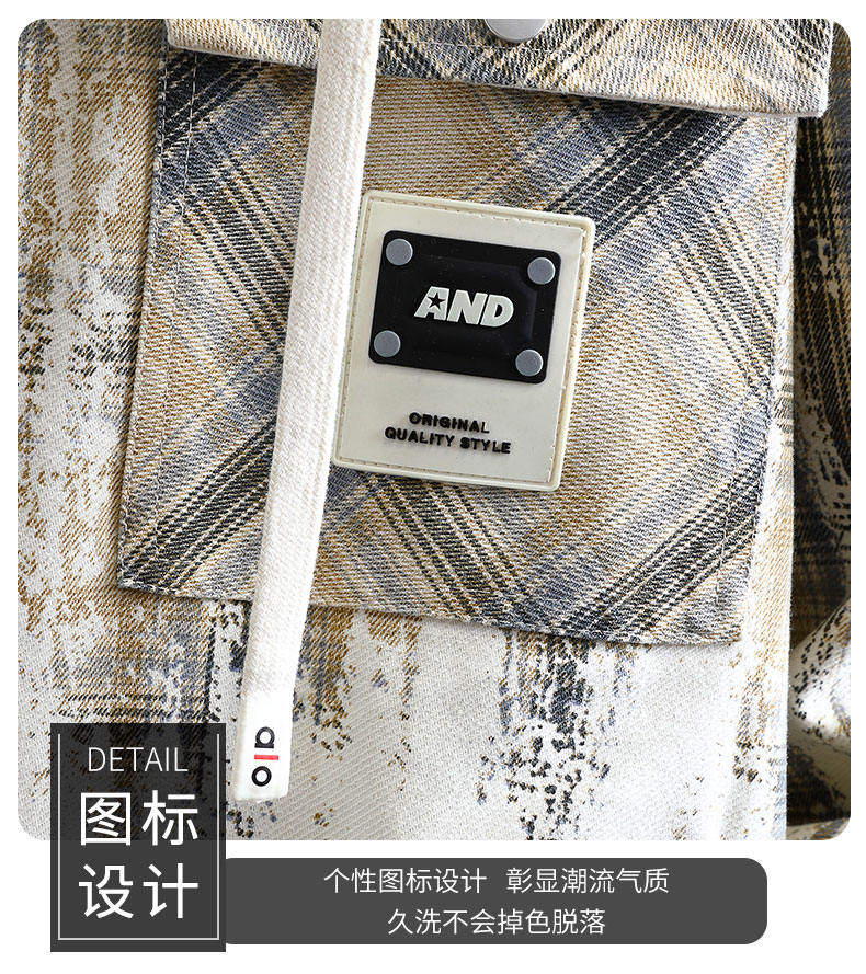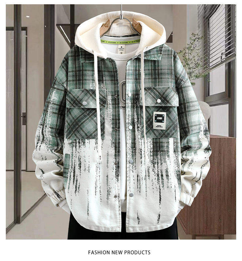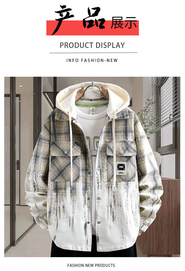 2025 Winter Plaid Print Hooded Fleece-Lined Denim Jacket for Men, Teenagers, and Middle School Students, Casual and Stylish Coat
