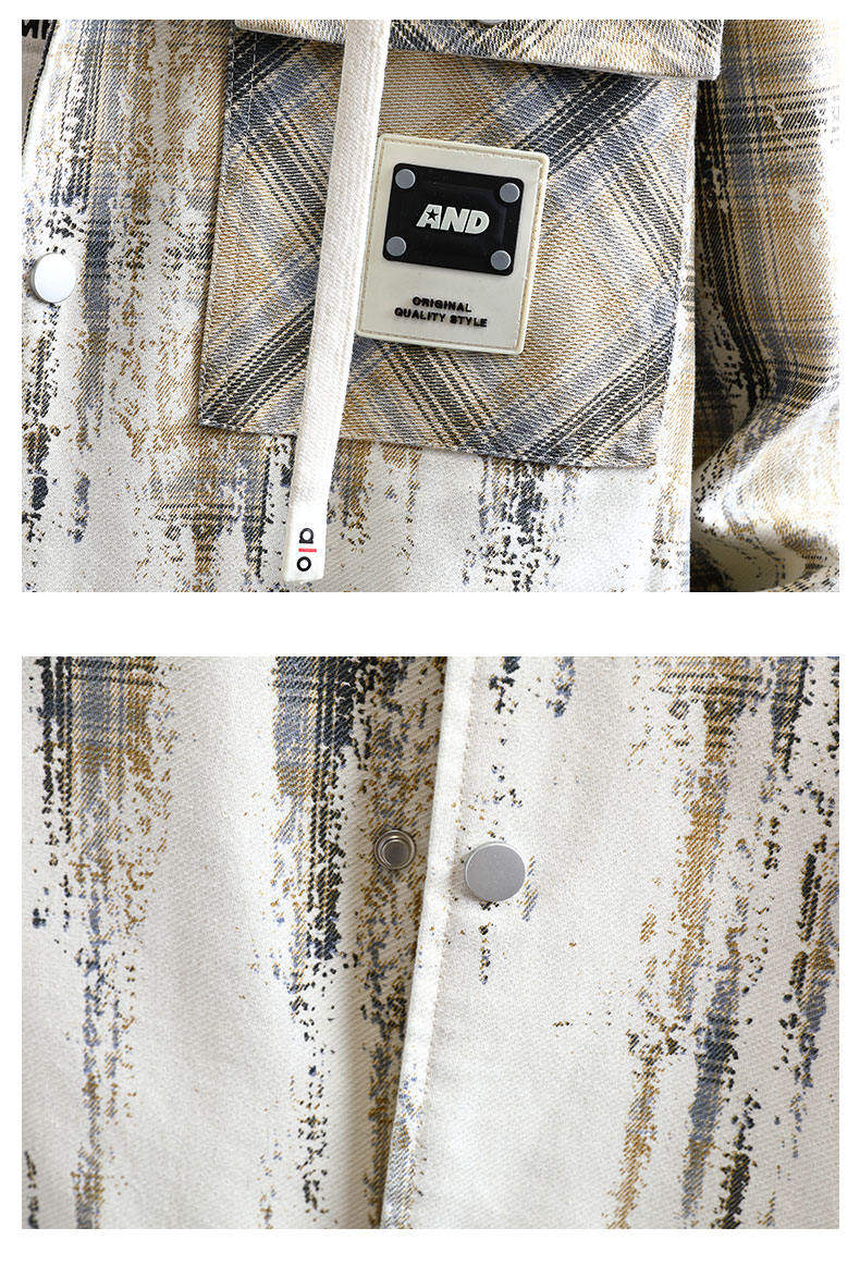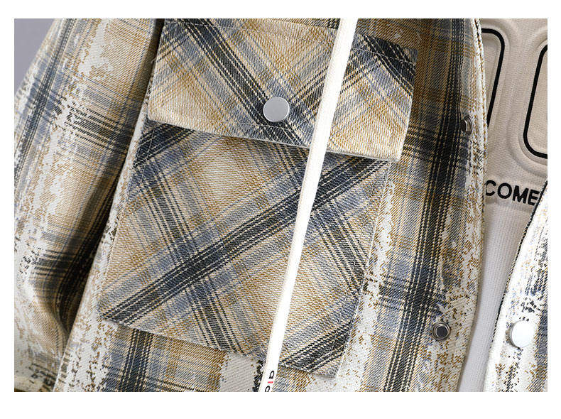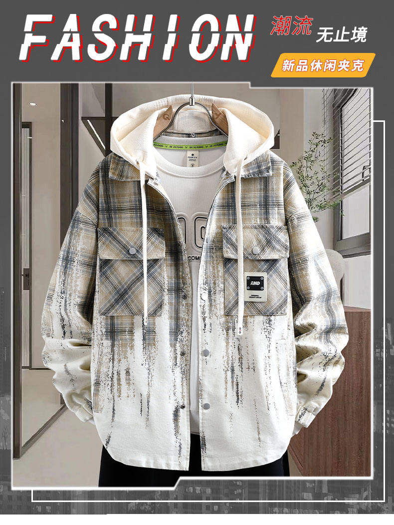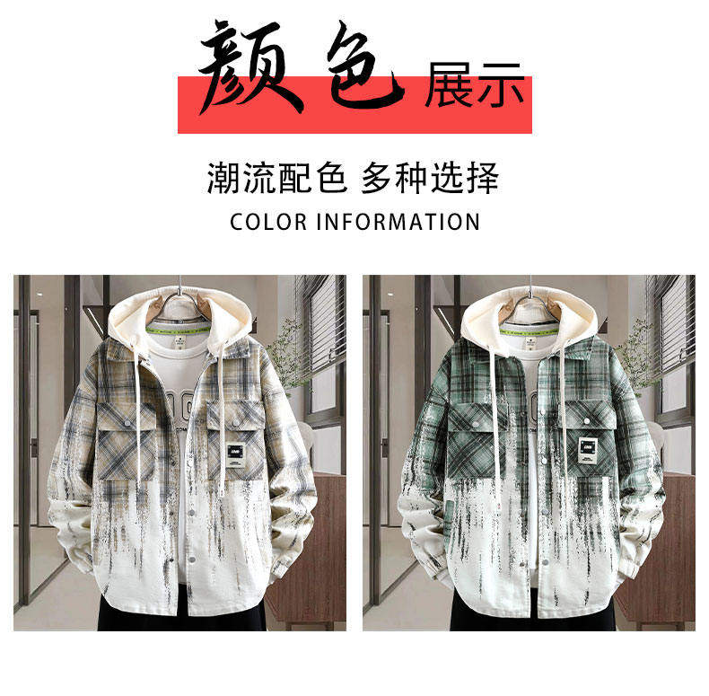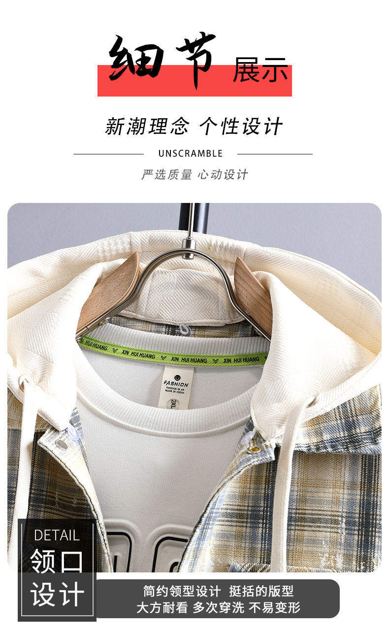 2025 Winter Plaid Print Hooded Fleece-Lined Denim Jacket for Men, Teenagers, and Middle School Students, Casual and Stylish Coat