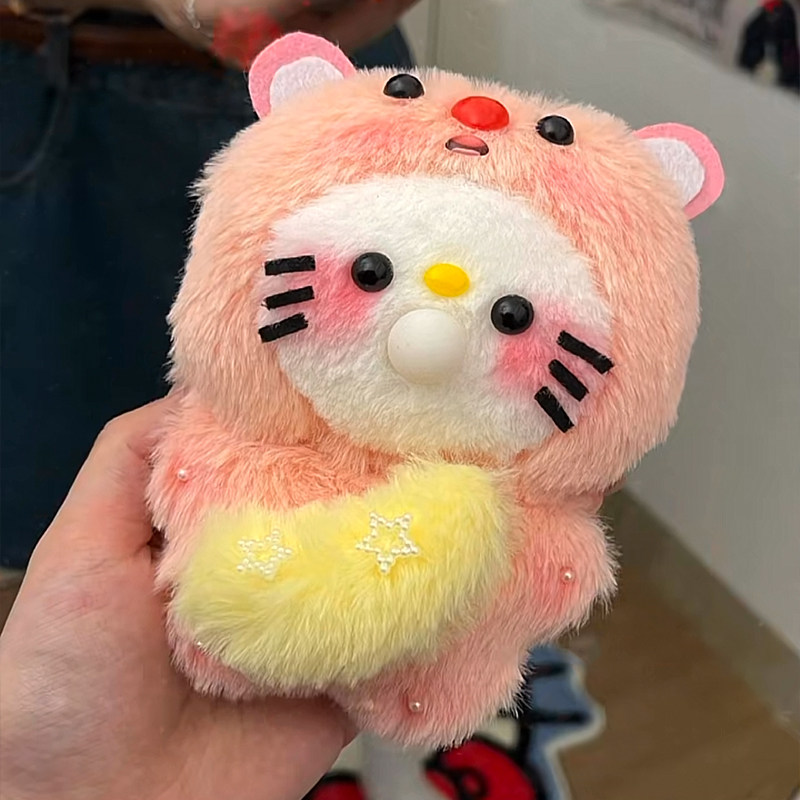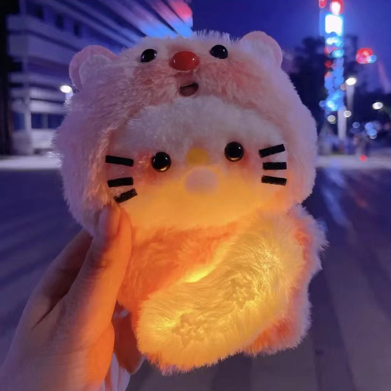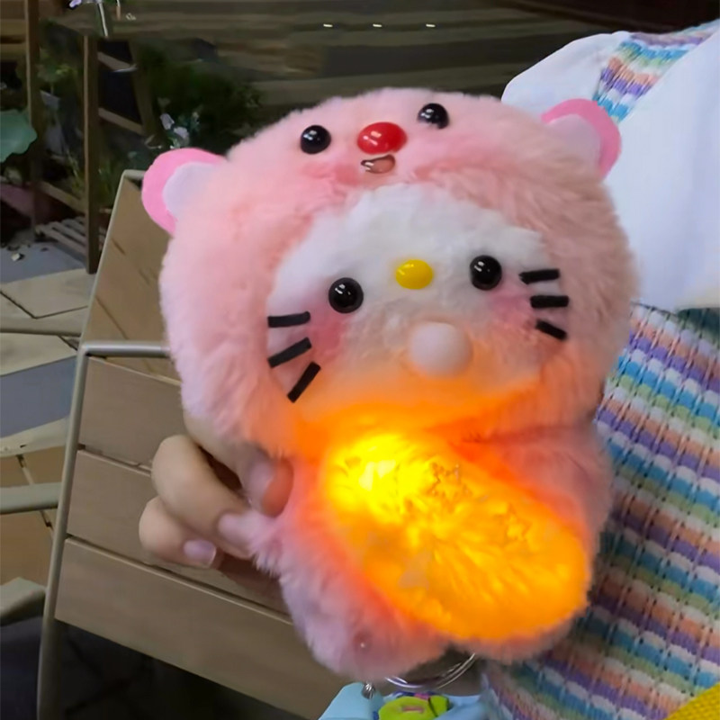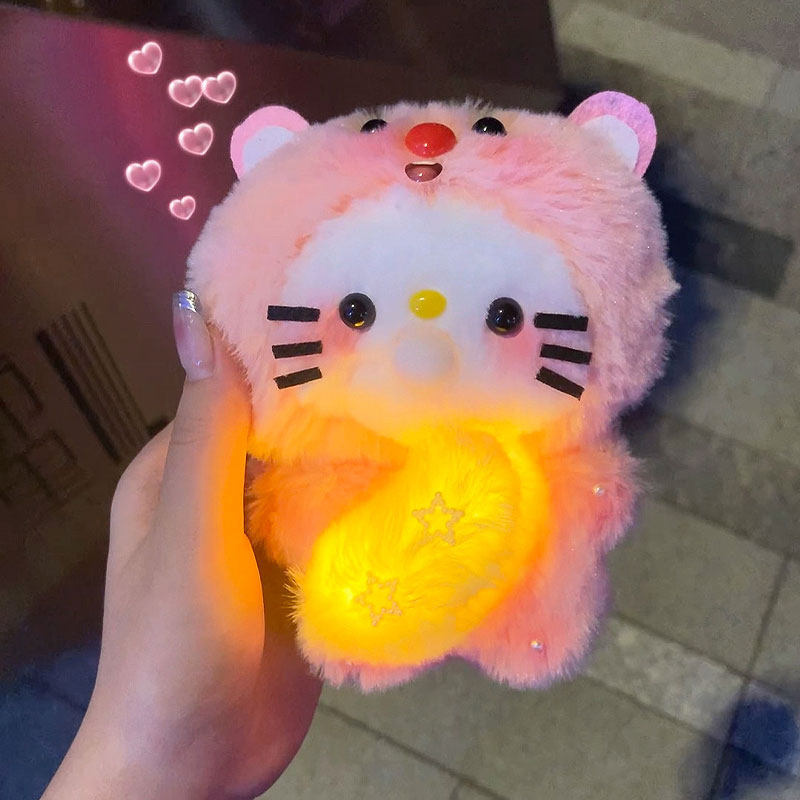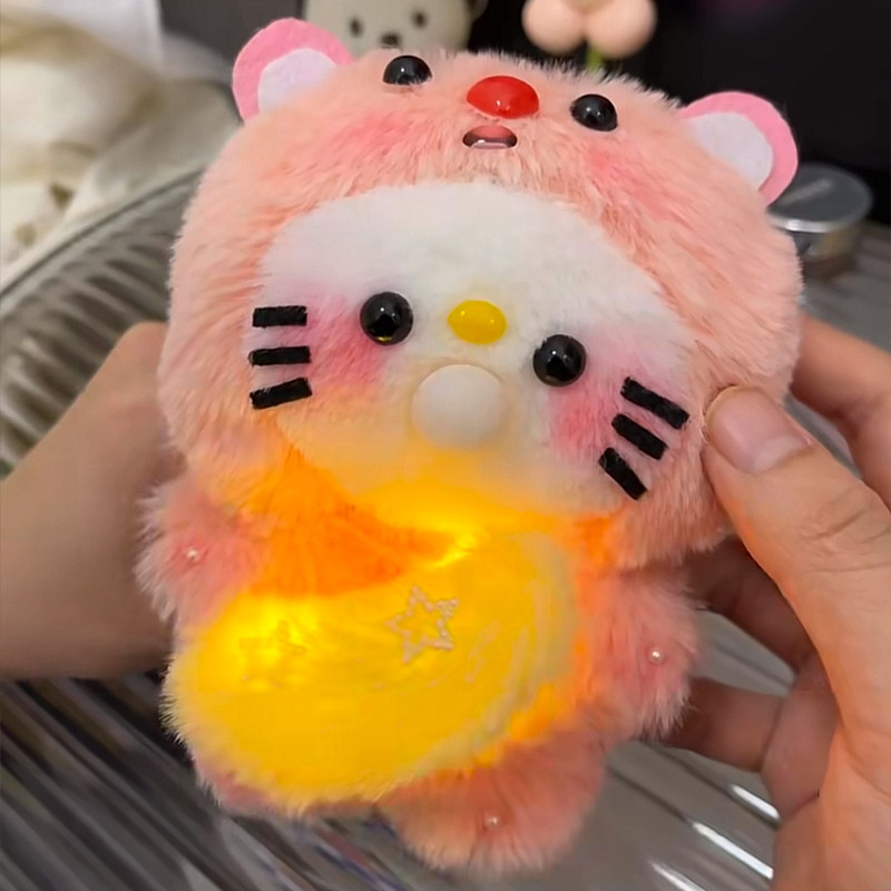 Recording, Bubble-Making, and Glowing Little Beaver Kt Cat DIY Handmade Plush Toy Squeaky Kedi Cat Plush Pendant