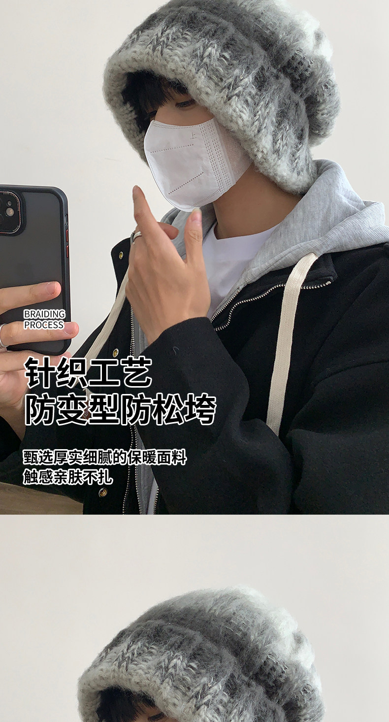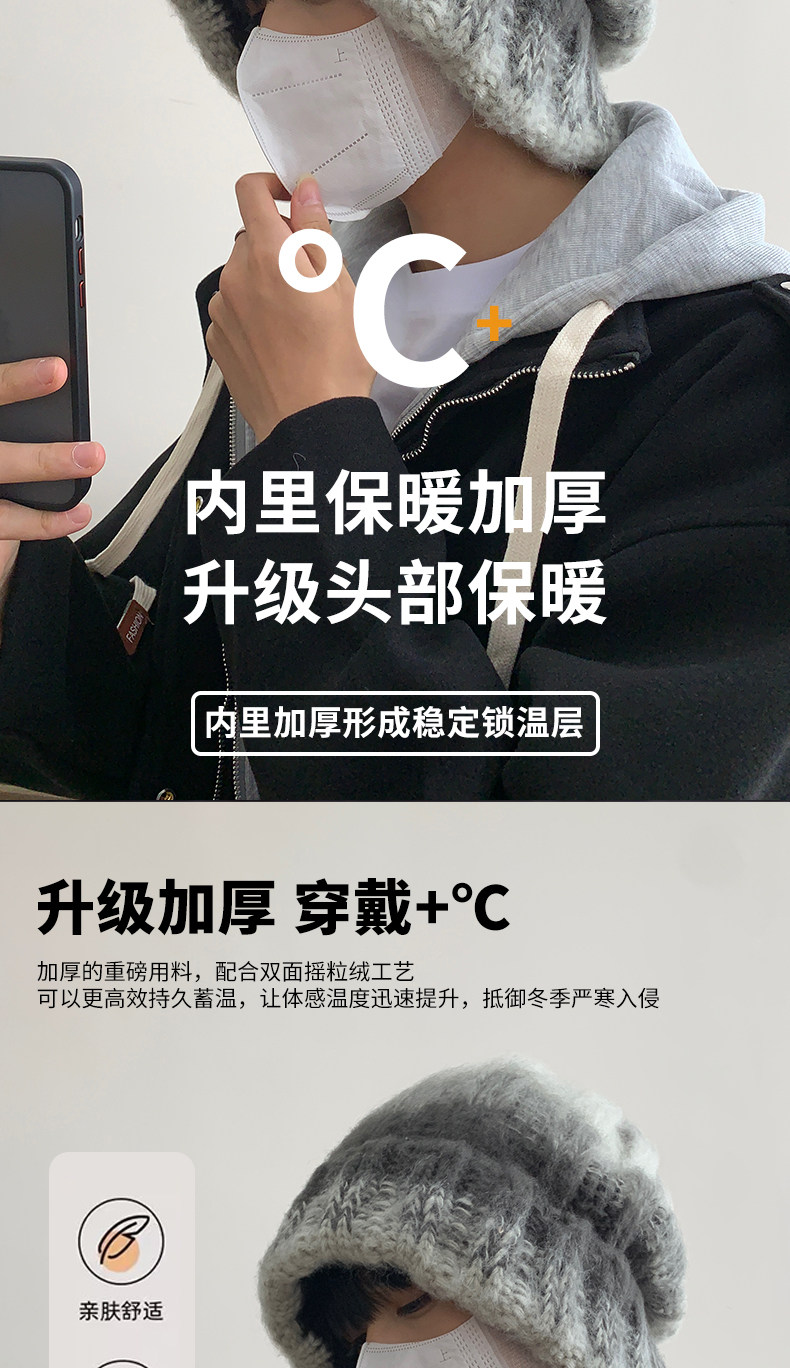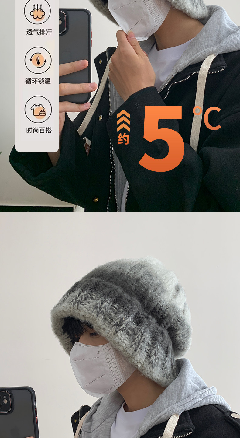 Men's Knitted Retro Wool Hat for Autumn and Winter, Suitable for Travel in Sichuan, Large Head Circumference, Makes Face Look Smaller, Warm and Ear-Protecting Cold Weather Hat