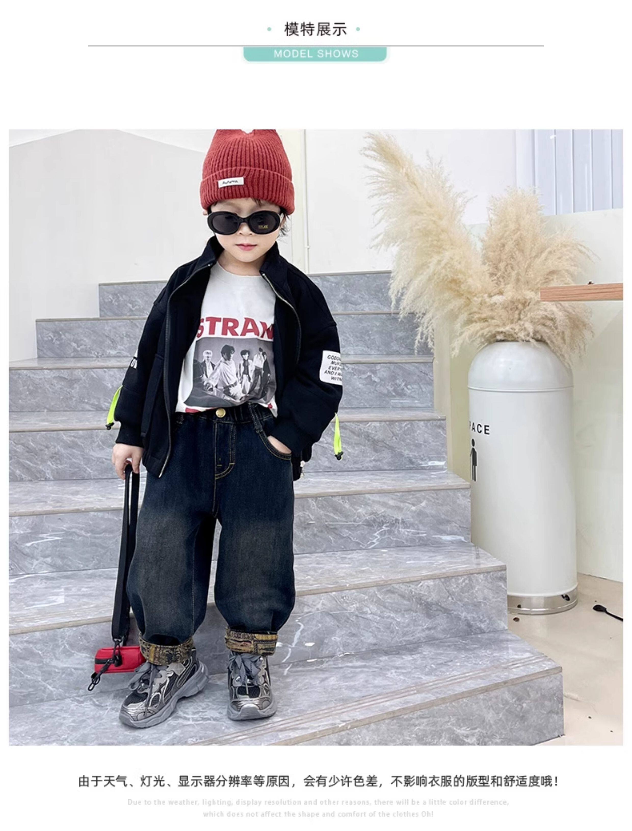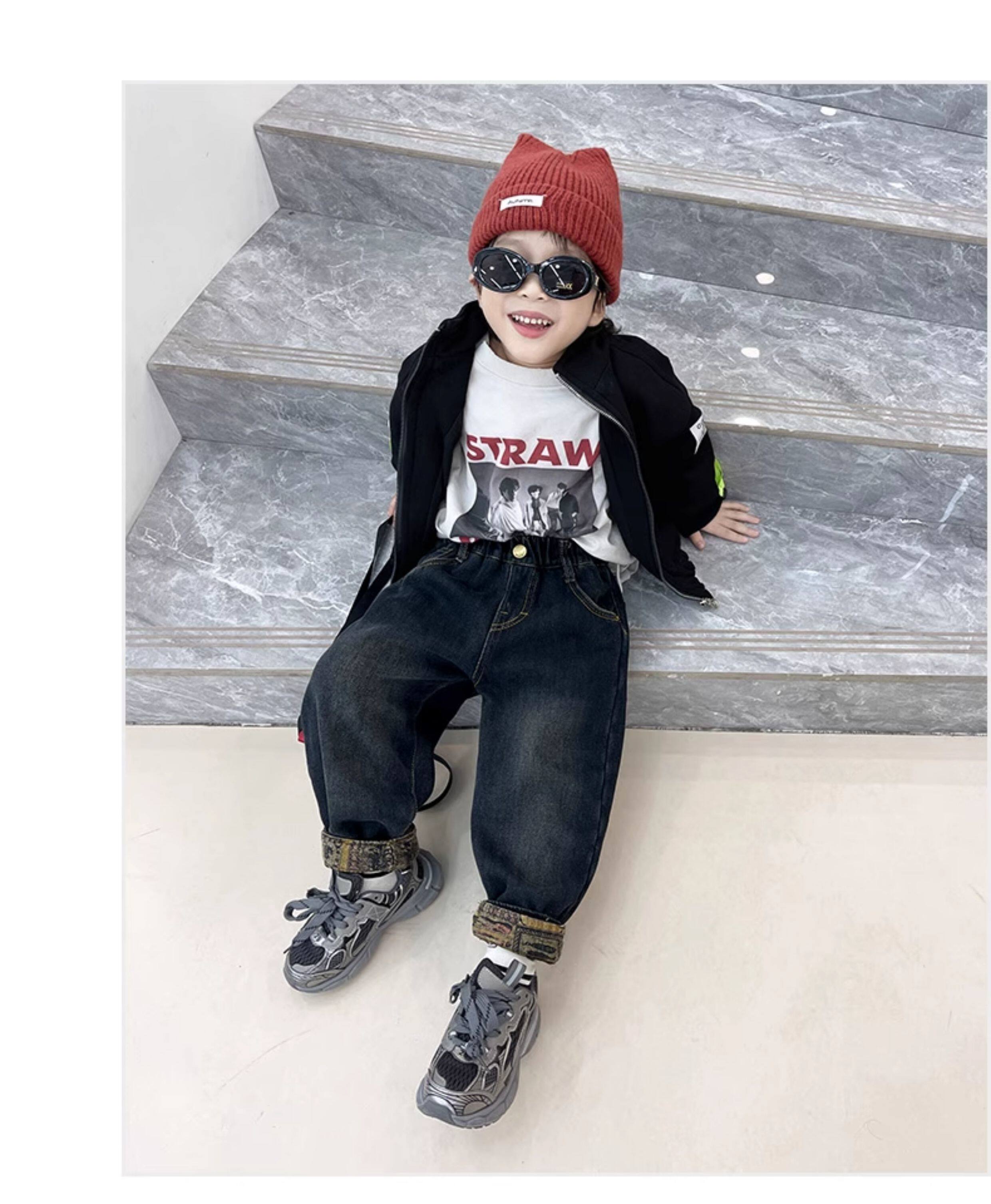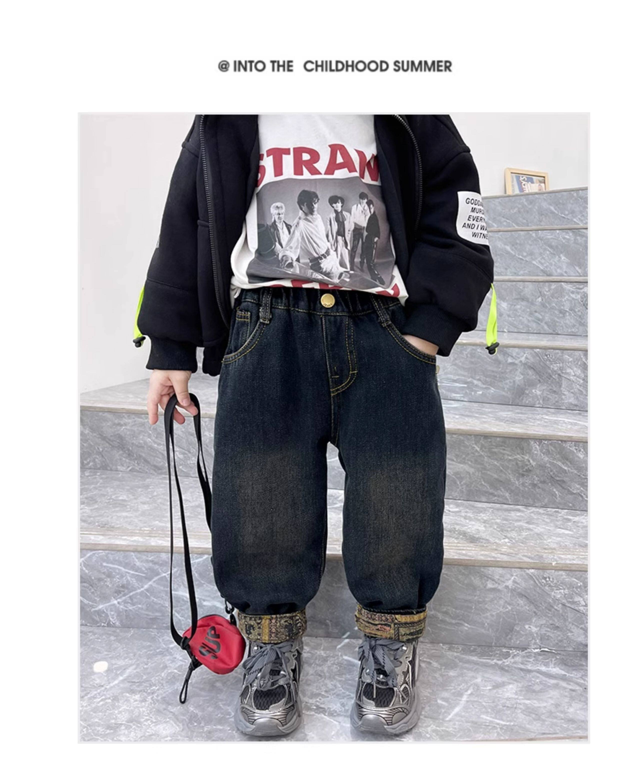 Boys' Fleece-Lined Jeans, Autumn and Winter Style, Children's Integrated Fleece Pants, 2025 New Children's Pants, Baby Winter Casual Pants