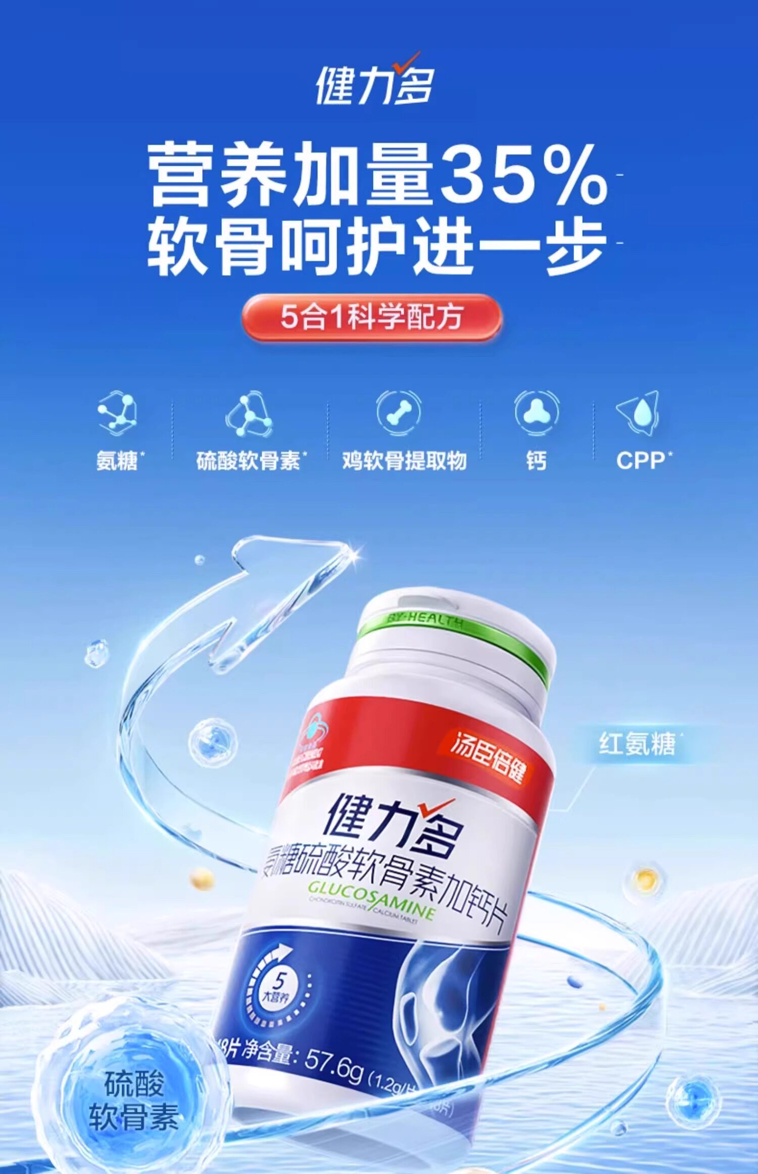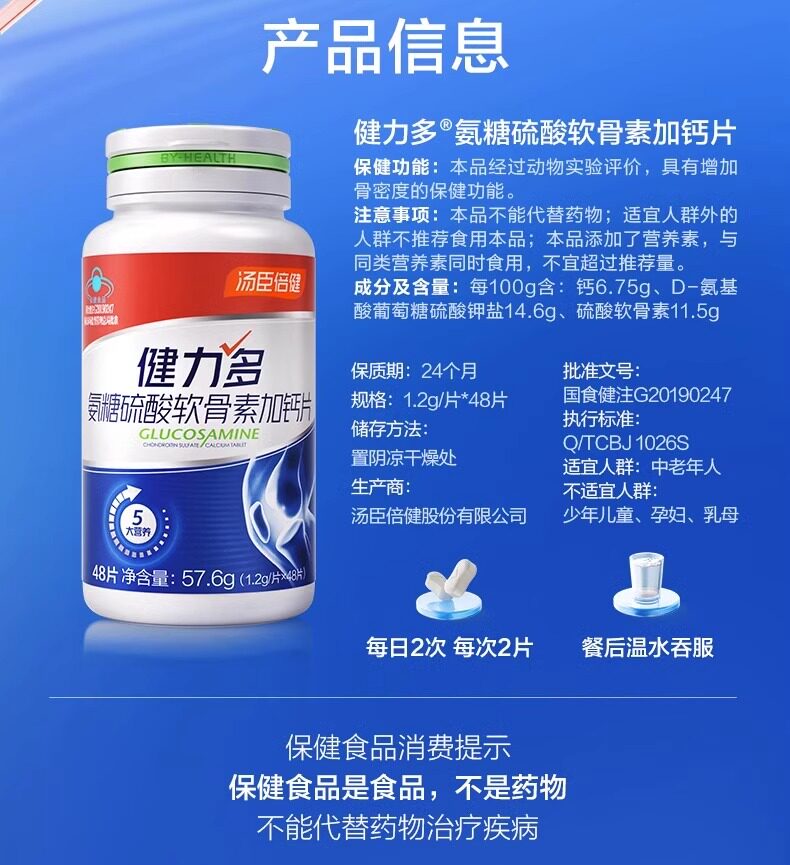 Tomson By-Health Official Glucosamine Chondroitin Calcium Tablets for Middle-Aged and Elderly Parents to Protect Joint Pain, Genuine Product