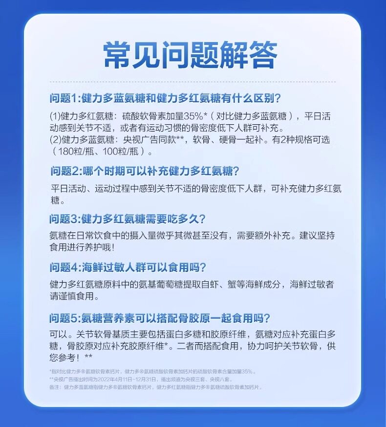 Color Classification [Recommended Cycle Pack] Blue Glucosamine 25 Tablets*3 Bottles - Expires on 25.11,[Trial Pack] Blue Glucosamine 25 Tablets*2 Bottles-Expired on 25.11,[Try It Out] Blue Glucosamine 25 Tablets*1 Bottle - Expired on 25.11,[Try It Out] Blue Glucosamine 40 Tablets*1 Bottle,[Recommended Basic Package] Red Ammonia Sugar 48 Tablets * 3 Bottles,[Nutritional Pack] Red Ammonia Sugar 48 Tablets*2 Bottles,[Try It Out] Red Ammonia Sugar 48 Tablets*1 Bottle,[Promotional Pack] Ammonia Sugar 15 Tablets*1 Bottle,[Store Manager Recommendation] Ammonia Sugar 25 Tablets*3+Sweet Orange Vc60 Tablets*2,[Try It Out] 40 Tablets of Gold Ammonia Sugar,[Gift Box] Ammonia Sugar Gift Box 180 Tablets,[Gift Box Set] Ammonia Sugar Gift Box 280 Tablets